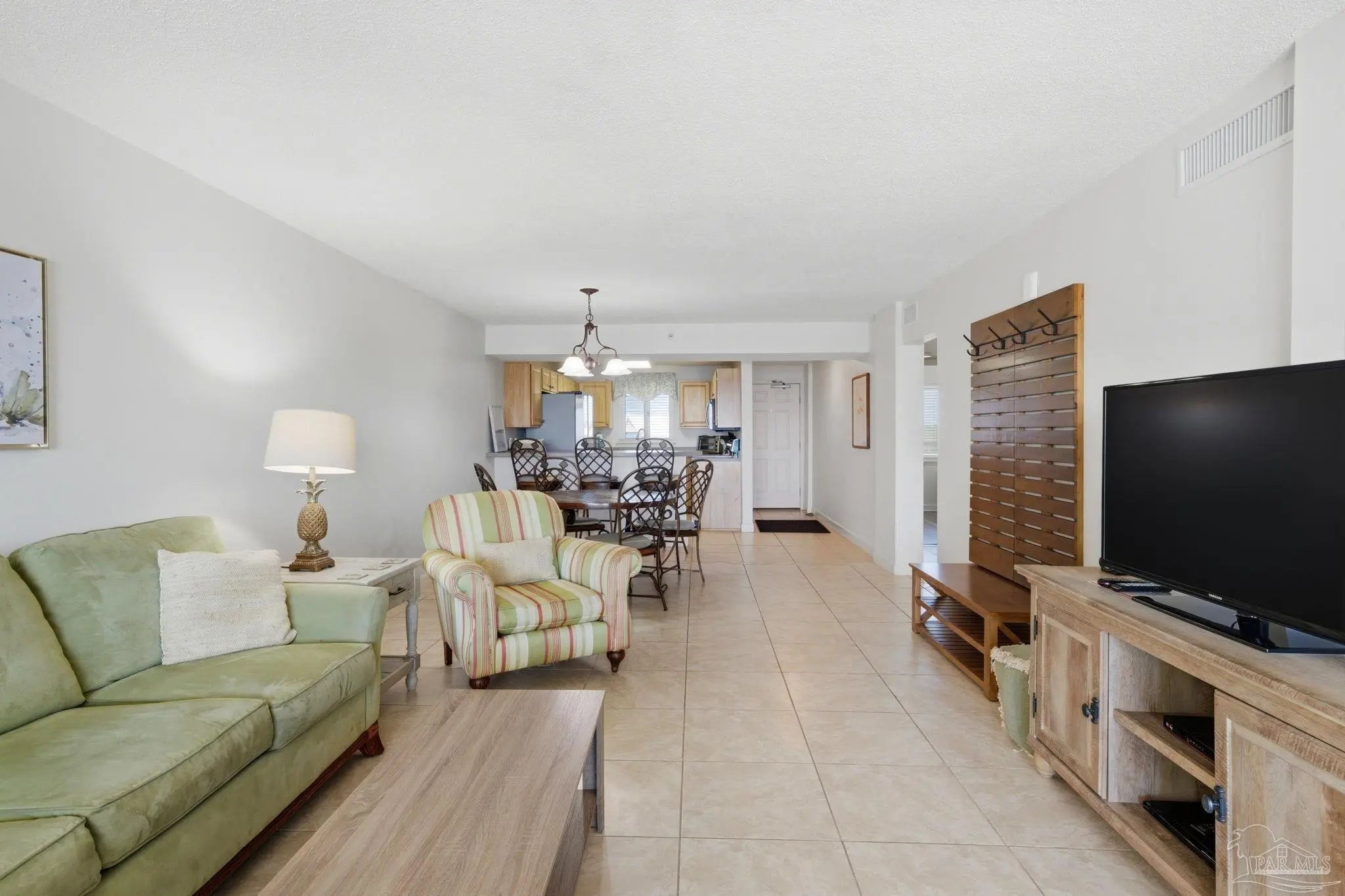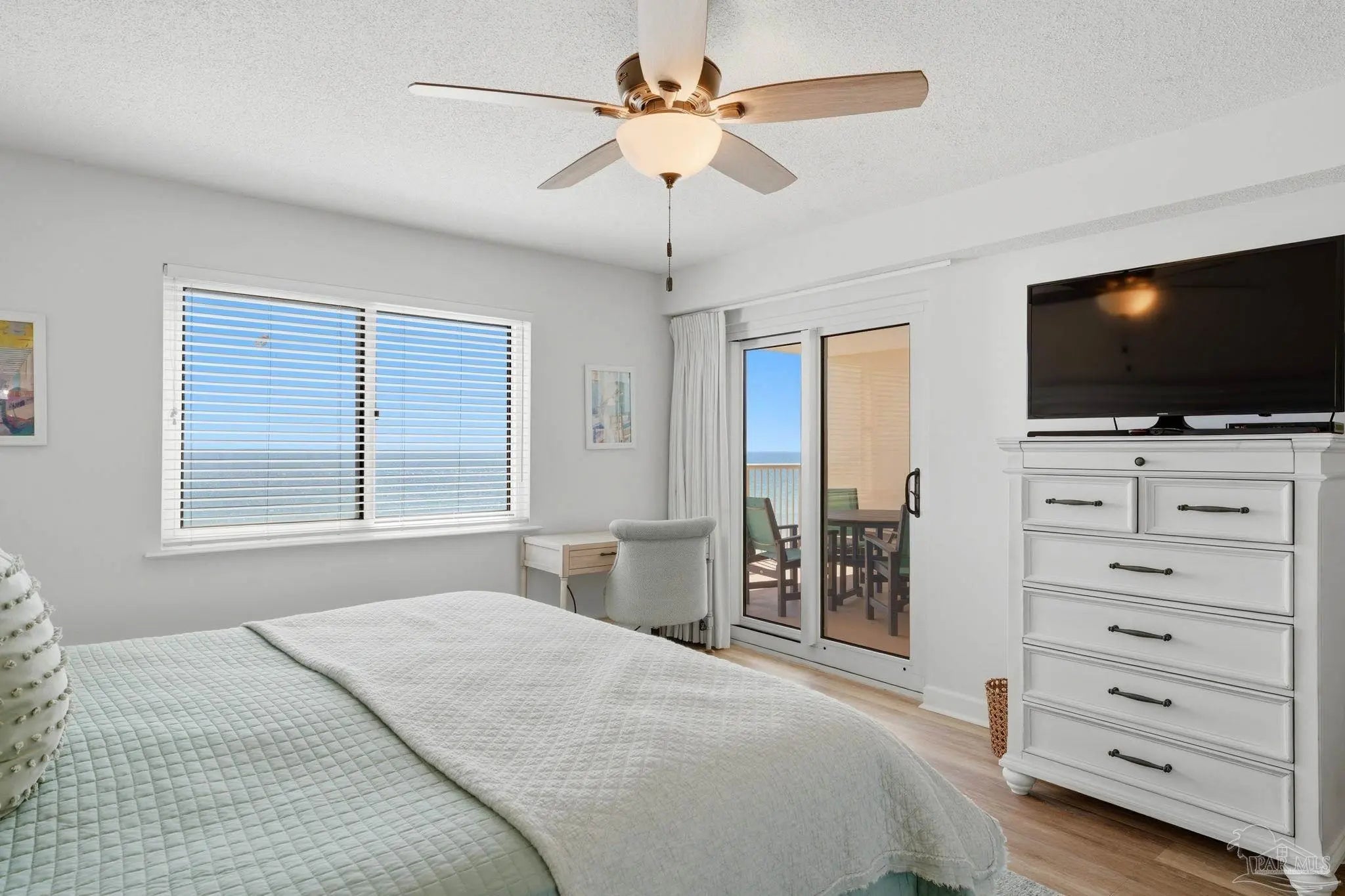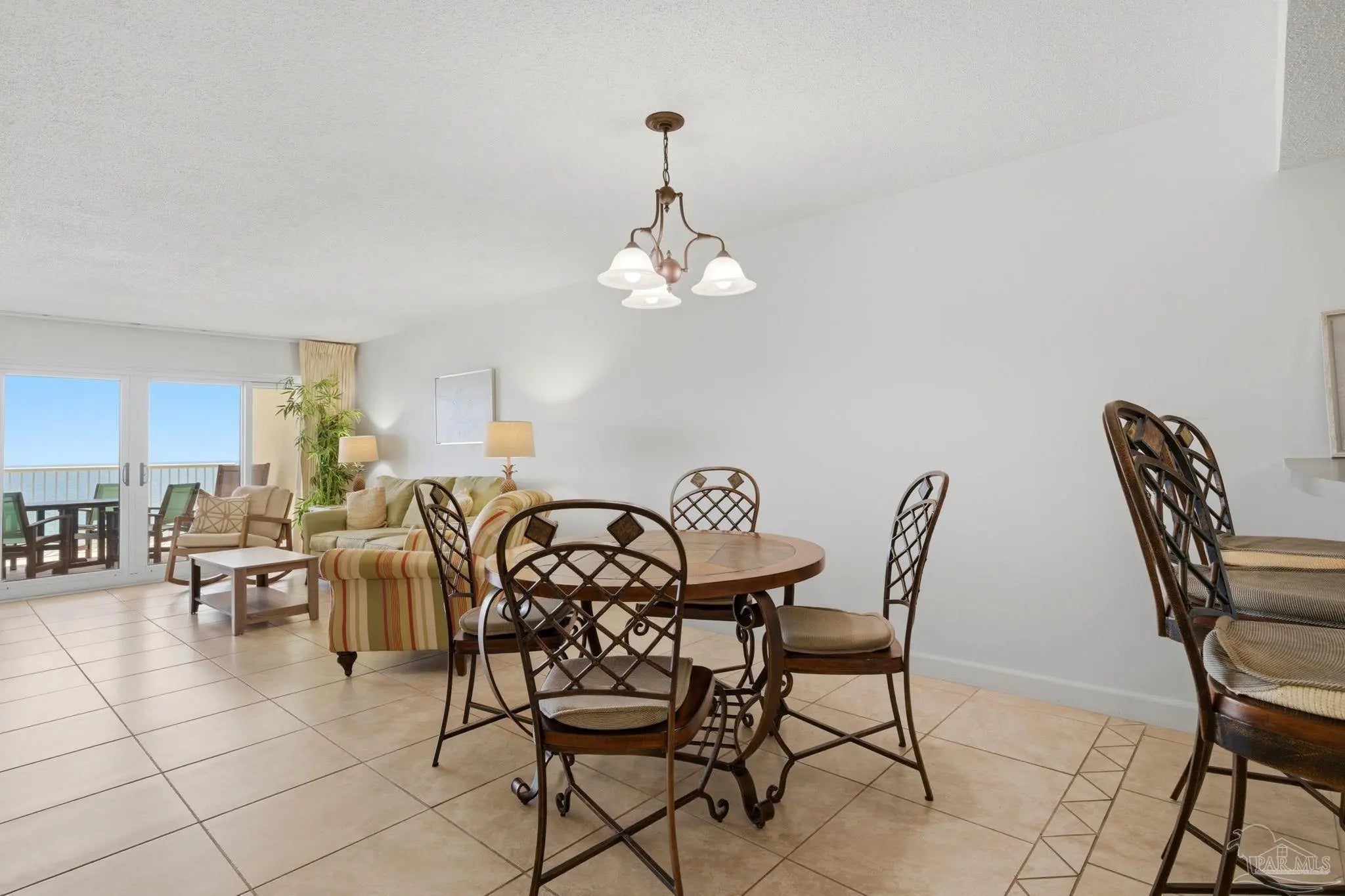 Experience true beachfront living from your private balcony, where you can relax while overlooking the white sandy beaches and emerald waters of the Gulf. This beautifully furnished 2-bedroom, 2-bath Gulf-front condo offers the ideal setting for coastal living or the perfect beach getaway. Inside, the open floor plan creates a bright and welcoming space designed for both comfort and functionality. As you enter, your eye is immediately drawn through the living area to the balcony and water beyond. The main living areas feature tile flooring, while both bedrooms are finished with durable wood-look luxury vinyl flooring. The kitchen is well-equipped with newer stainless steel appliances, ample cabinet and counter space, and comes stocked with move-in-ready essentials. A bar-height counter provides additional seating and flows seamlessly into the dining and living areas, making it easy to entertain or unwind after a day at the beach. The primary bedroom offers beautiful Gulf views through a large window and includes a private updated ensuite bathroom. The second bedroom features two twin beds and convenient access to the updated hall bathroom, making it ideal for guests or additional family members. Custom window treatments add a polished touch throughout, and a ground-floor storage locker provides the perfect place for beach gear and personal items. Located within the gated Sandy Key community, you will enjoy a quieter stretch of beach just a short walk from the protected shoreline of the Gulf Islands National Seashore. Sandy Key has been loved and enjoyed for generations and is known for its laid-back coastal feel and strong sense of ownership. Community amenities include two swimming pools with one heated seasonally, a hot tub, fitness center, lighted tennis courts, an on-site rental office, and a full-time maintenance team, all designed to make ownership easy and enjoyable.