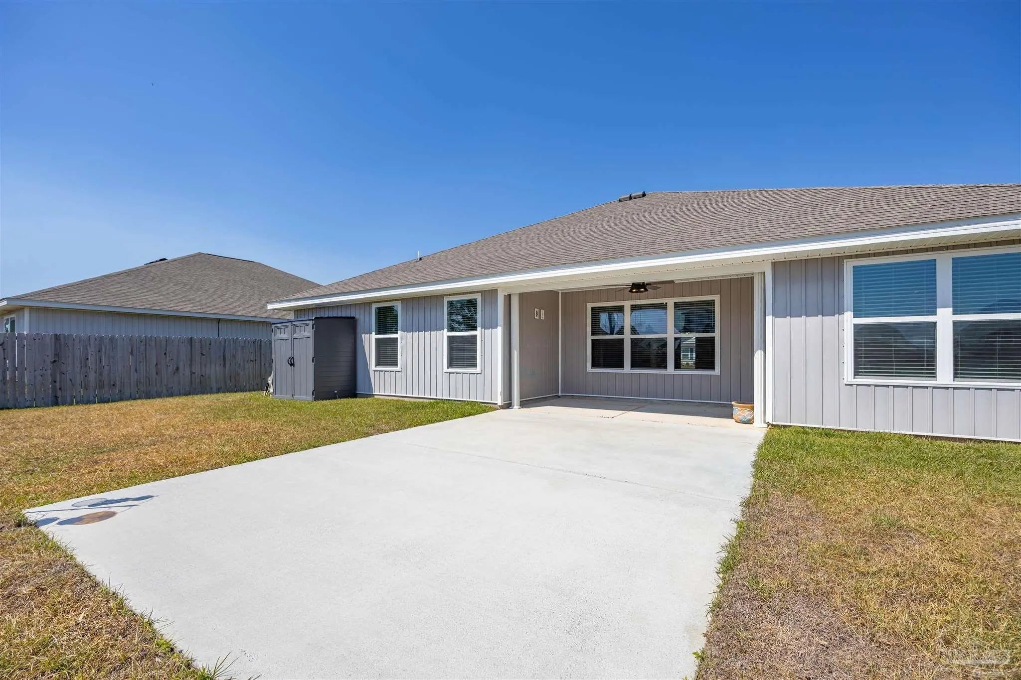 Welcome to your chance to own a like-new coastal retreat in the highly sought-after Spanish Cove community, where homes of this quality and caliber rarely become available. Built just 3 years ago, this 4-bedroom, 2-bath home offers 1,962 square feet of thoughtfully designed living space, combining modern comfort with laid-back coastal living. This home is GOLD FORTIFIED. Offering not only peace of mind but also savings on your home owners insurance, an increasingly valuable advantage along the coast. Inside you’ll find a true move-in ready home with brand new appliances, including washer, dryer, refrigerator, dishwasher, microwave, and stove. Step outside to a fully fenced backyard, perfect for pets, featuring a unique and eye-catching upgrade—built-in plexiglass viewing bubbles, allowing your dogs to safely see beyond the fence. It’s a small detail that makes a big difference for pet lovers. What truly sets this community apart is the lifestyle. Spanish Cove offers a relaxed, welcoming environment ideal for those looking to escape the congestion of city living. Enjoy access to a community pool, tennis courts (with pickleball capability), clubhouse, and a private fishing pier extending into the beautiful Perdido Bay, perfect for morning coffee, sunrise views, or casting a line. Whether you're relocating to the coast, retiring into a slower pace of life, or seeking a peaceful home base near the water, this beautiful turn key property, only a 15 minute drive to the beach, checks all the boxes. Don’t miss your opportunity to secure your place on the coast—schedule your showing before it’s gone.