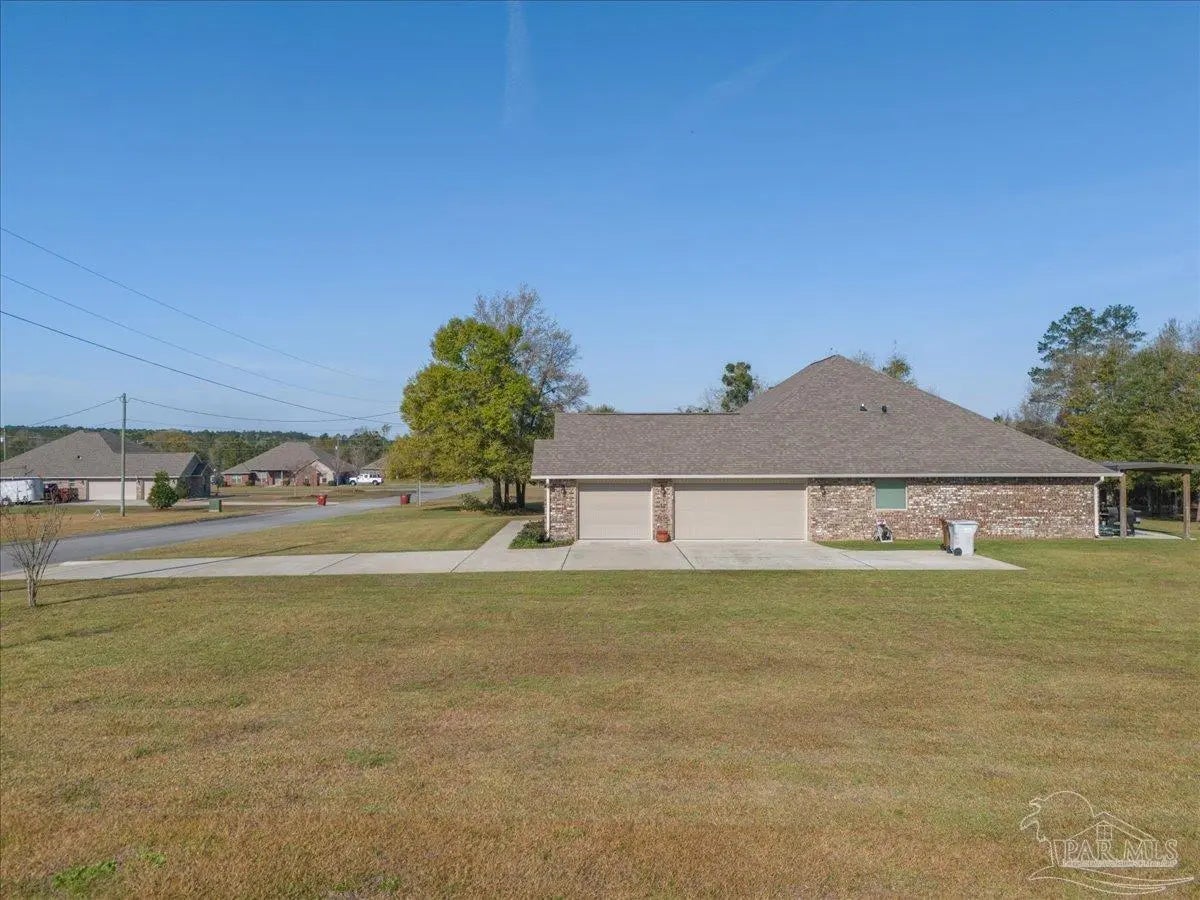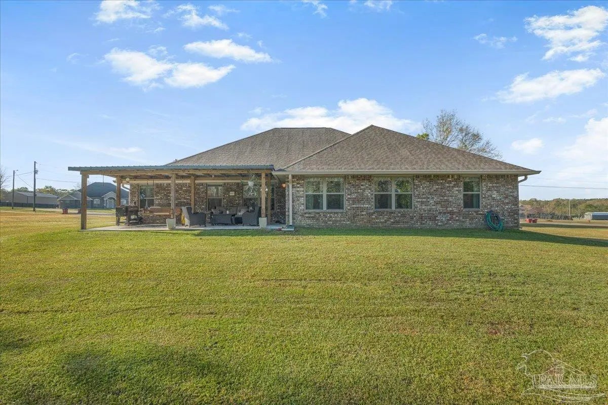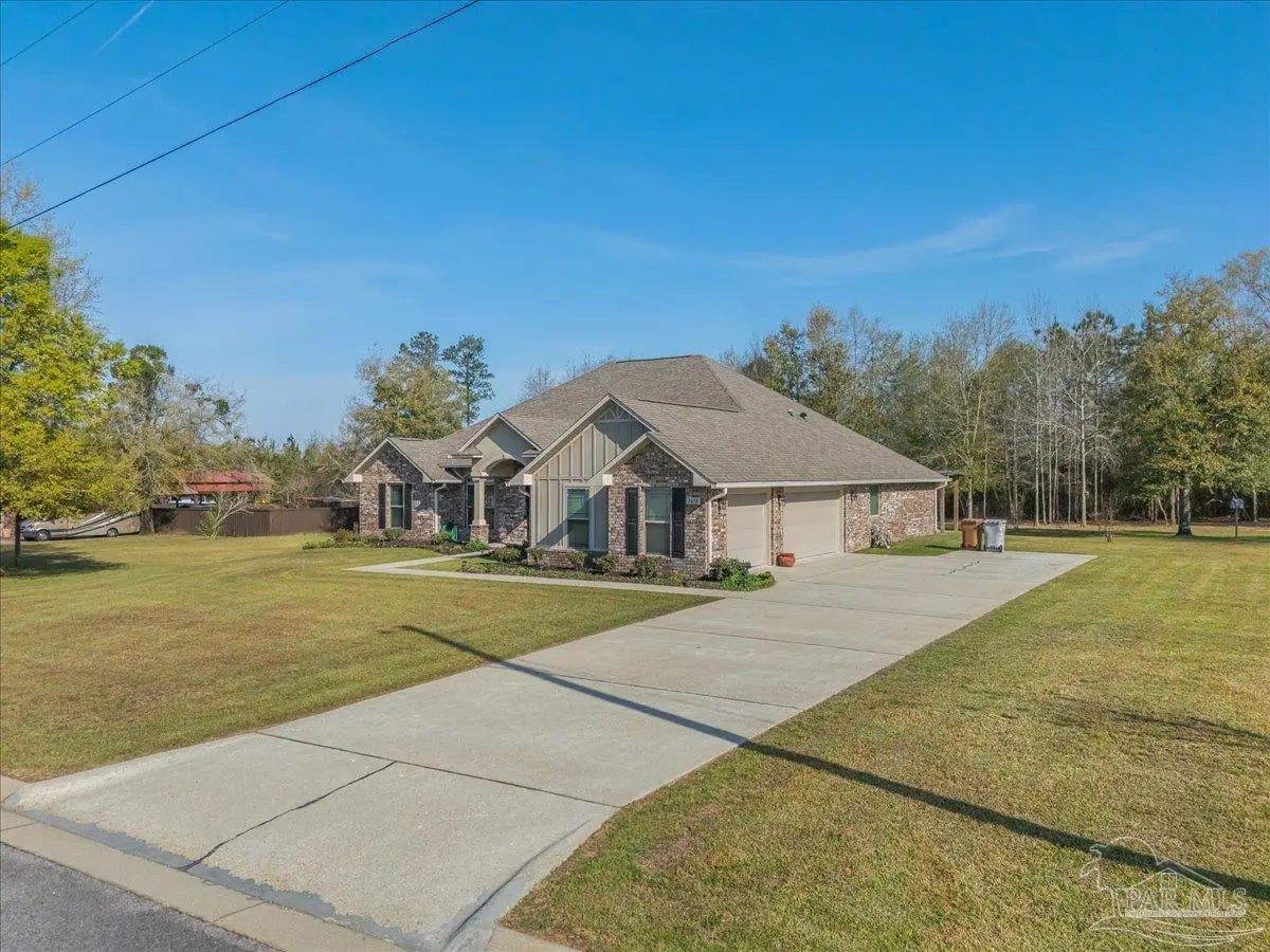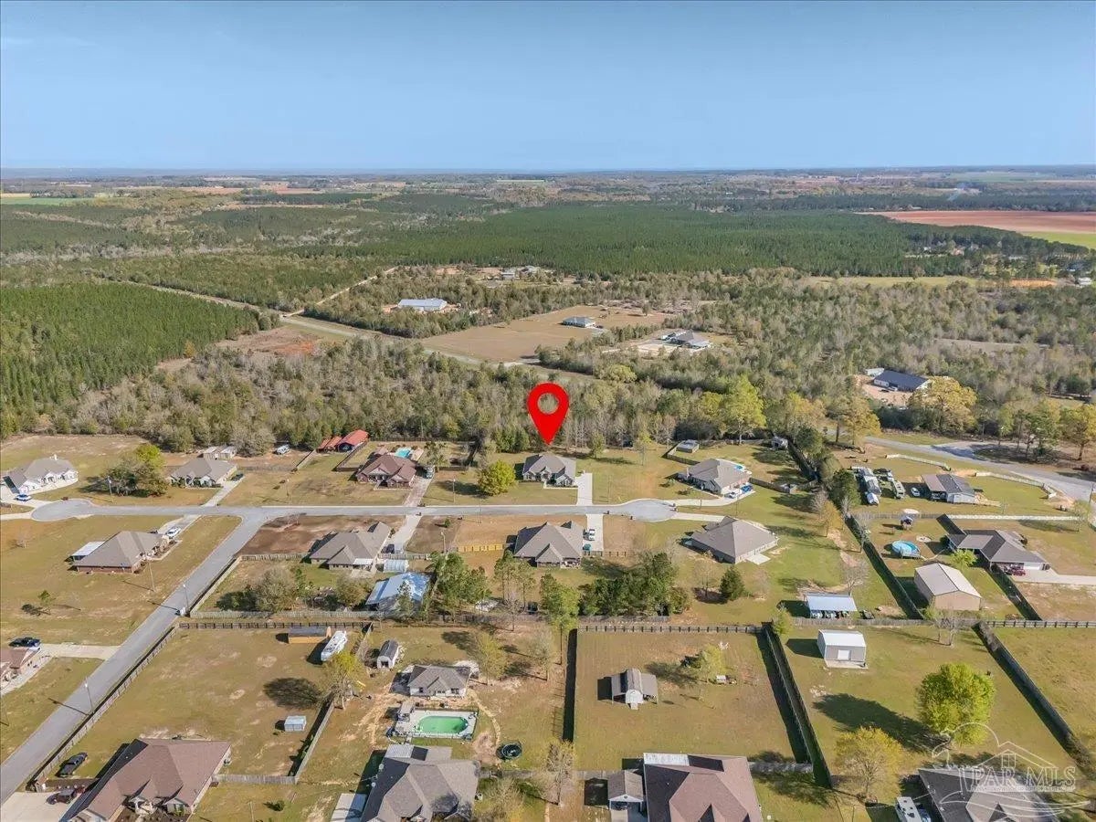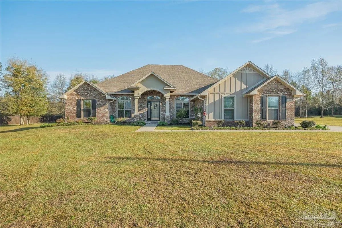 Experience the serenity of rural living with this spacious 4-bedroom, 3-bath home nestled in the quiet farm community of Stafford Farms in Jay. You will love this almost ONE ACRE lot and the way this home sits on a CUL DE SAC with no flow of traffic. Step inside to soaring 10-FOOT CEILINGS and an OPEN FLOOR PLAN that creates a welcoming flow throughout the home. As you walk in, to the right is a formal DINING ROOM and to the left is an OFFICE/STUDY. The den showcases DOUBLE TREY CEILINGS and an ELECTRIC FIREPLACE, offering both charm and comfort. It flows smoothly to the kitchen and breakfast area. SHIPLAP walls tie the den to the dining room adding that designer touch. The expansive eat-in kitchen features GRANITE countertops, a WRAP-AROUND BREAKFAST BAR, pendant lighting, CUSTOM MADE MAPLE RAISED PANEL-SOLID WOOD CABINETS, all STAINLESS-STEEL APPLIANCES and a WALK-IN PANTRY. A 19 x 19 FLORIDA/BONUS ROOM or Media Room extends the living space and overlooks the beautiful backyard, perfect for relaxing or entertaining. The master suite boasts TREY CEILING, while the luxurious 16 x 11 MASTER BATH offers TWO WALK-IN CLOSETS, a DOUBLE VANITY, and a WALK IN SHOWER with Glass Enclosure and Stone Pebble tiled floor. Each additional bedroom is generously sized with ample storage, and each ADDITIONAL BATHROOMS includes a LINEN CLOSET for added convenience. Sitting on almost ONE ACRE of land, this property provides endless possibilities—whether you envision a swimming pool, a garden, or future expansion. This property backs up to a wood line so you will never have construction behind you. With everything being installed in 2018, you will have peace of mind for years to come. A perfect blend of country charm and modern comfort, this home offers room to grow both inside and out. Additional features: 3 CAR GARAGE, Accent Walls, Arch openings, Transom on windows, SPRINKLER SYSTEM ON WELL and more. Call us today for your private showing!