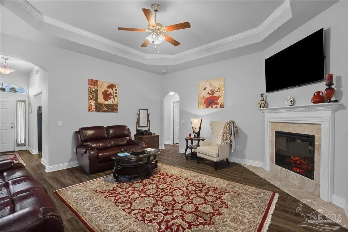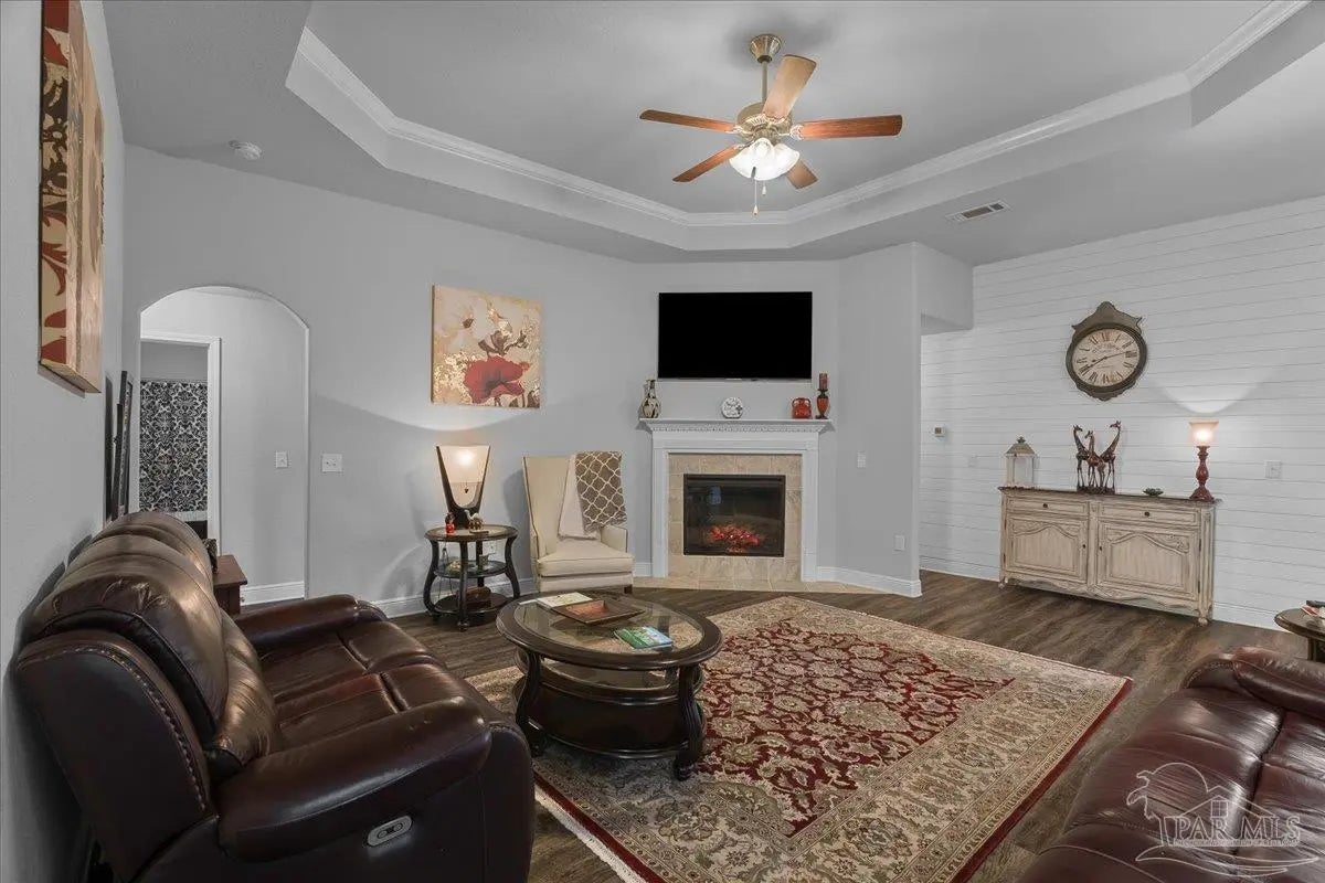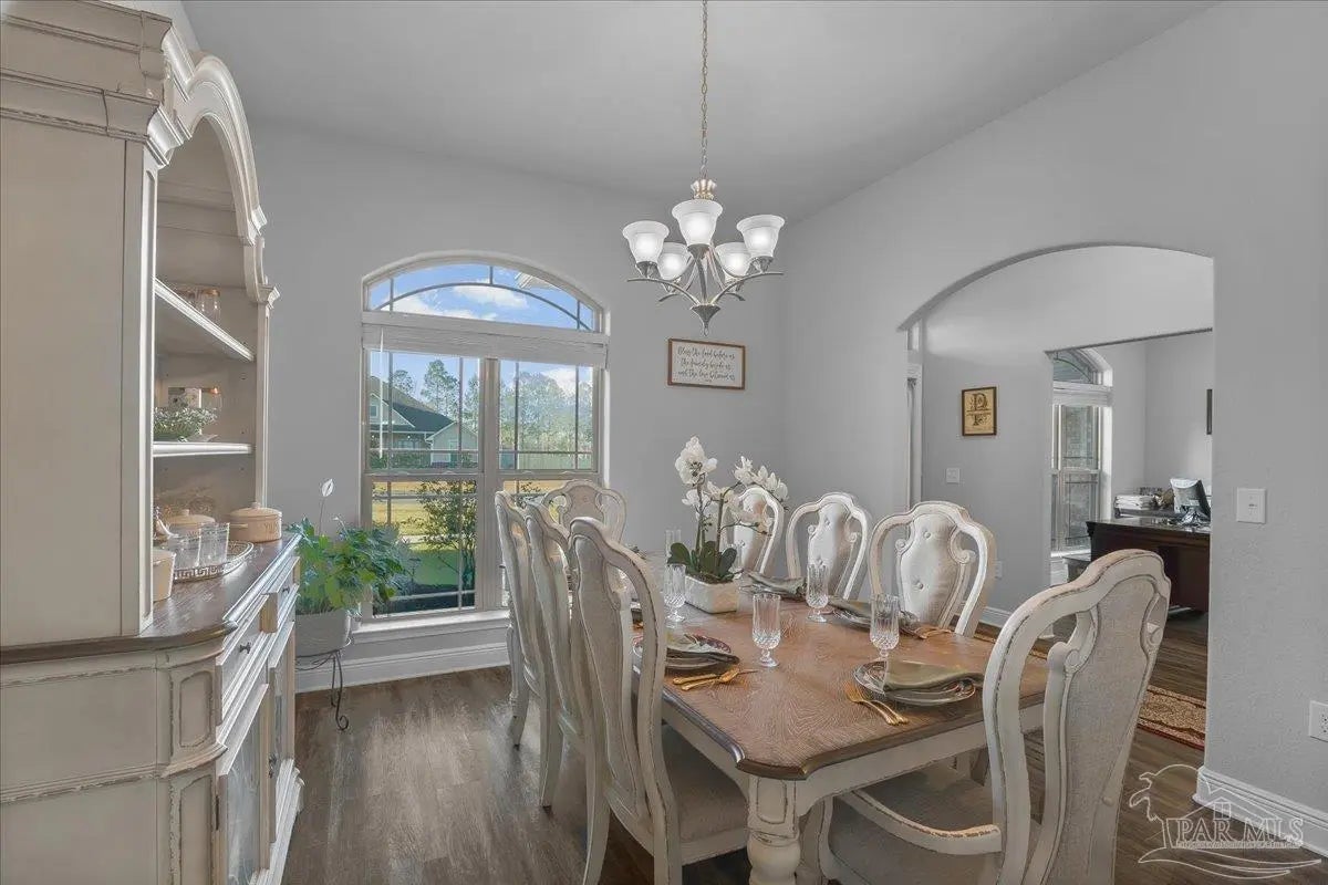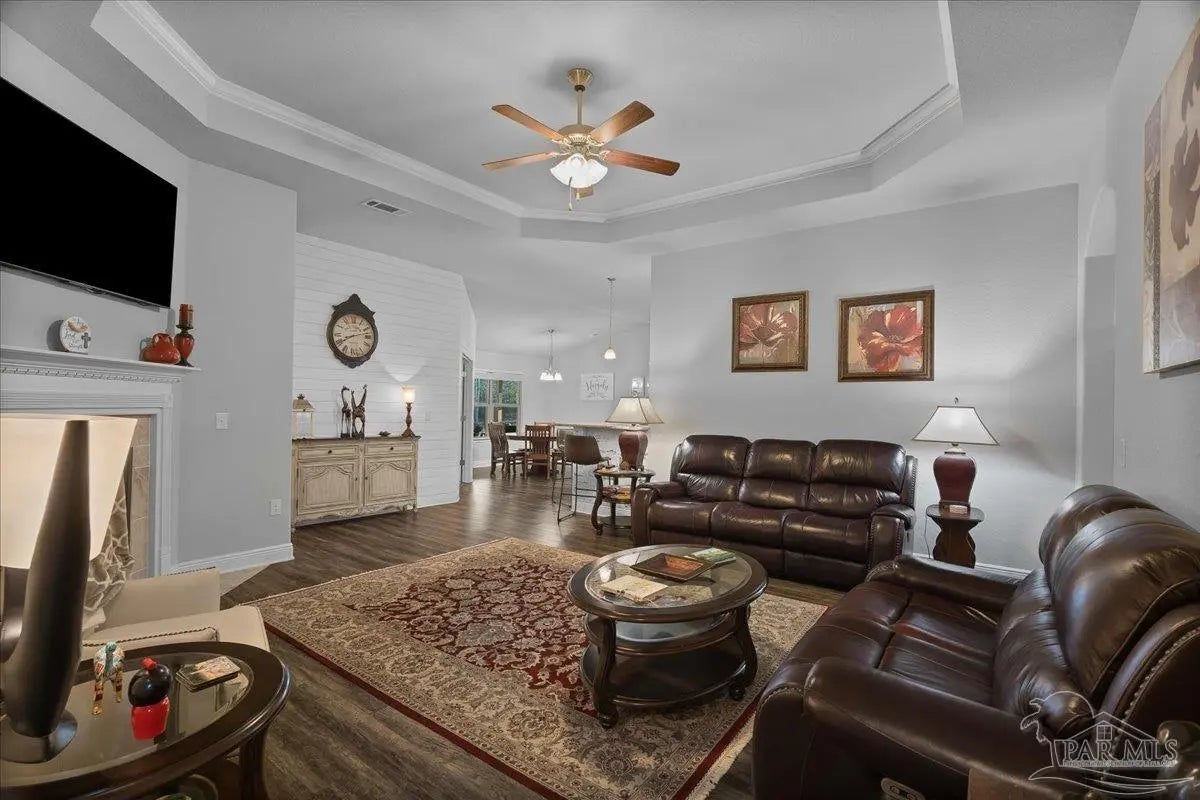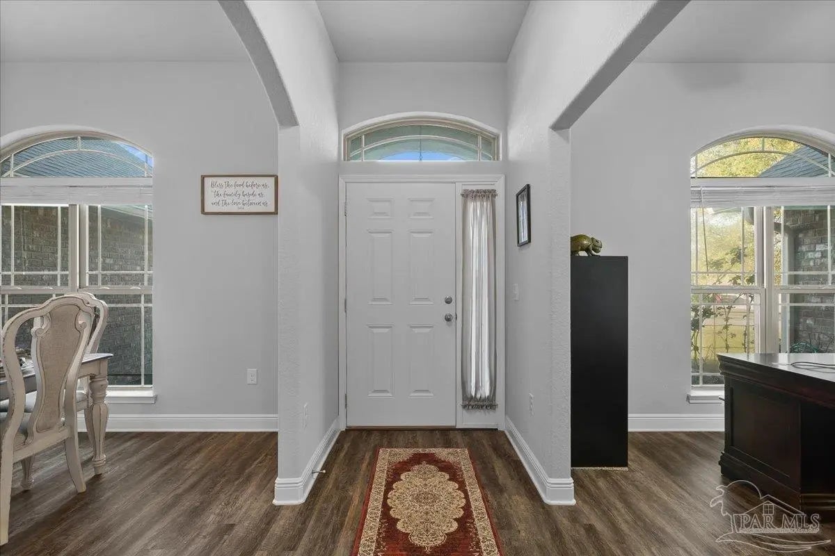 Experience the serenity of rural living with this spacious 4-bedroom, 3-bath home nestled in the quiet farm community of Stafford Farms in Jay. You will love this almost ONE ACRE lot and the way this home sits on a CUL DE SAC with no flow of traffic. Step inside to soaring 10-FOOT CEILINGS and an OPEN FLOOR PLAN that creates a welcoming flow throughout the home. As you walk in, to the right is a formal DINING ROOM and to the left is an OFFICE/STUDY. The den showcases DOUBLE TREY CEILINGS and an ELECTRIC FIREPLACE, offering both charm and comfort. It flows smoothly to the kitchen and breakfast area. SHIPLAP walls tie the den to the dining room adding that designer touch. The expansive eat-in kitchen features GRANITE countertops, a WRAP-AROUND BREAKFAST BAR, pendant lighting, CUSTOM MADE MAPLE RAISED PANEL-SOLID WOOD CABINETS, all STAINLESS-STEEL APPLIANCES and a WALK-IN PANTRY. A 19 x 19 FLORIDA/BONUS ROOM or Media Room extends the living space and overlooks the beautiful backyard, perfect for relaxing or entertaining. The master suite boasts TREY CEILING, while the luxurious 16 x 11 MASTER BATH offers TWO WALK-IN CLOSETS, a DOUBLE VANITY, and a WALK IN SHOWER with Glass Enclosure and Stone Pebble tiled floor. Each additional bedroom is generously sized with ample storage, and each ADDITIONAL BATHROOMS includes a LINEN CLOSET for added convenience. Sitting on almost ONE ACRE of land, this property provides endless possibilities—whether you envision a swimming pool, a garden, or future expansion. This property backs up to a wood line so you will never have construction behind you. With everything being installed in 2018, you will have peace of mind for years to come. A perfect blend of country charm and modern comfort, this home offers room to grow both inside and out. Additional features: 3 CAR GARAGE, Accent Walls, Arch openings, Transom on windows, SPRINKLER SYSTEM ON WELL and more. Call us today for your private showing!