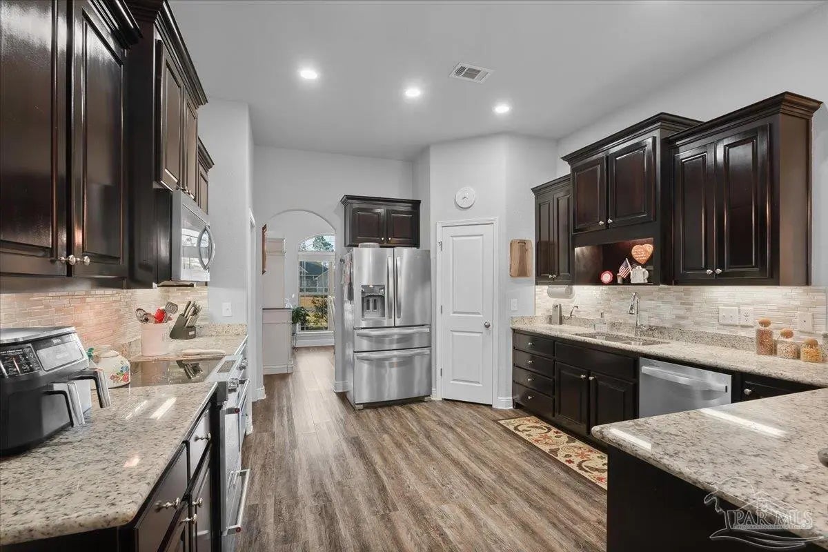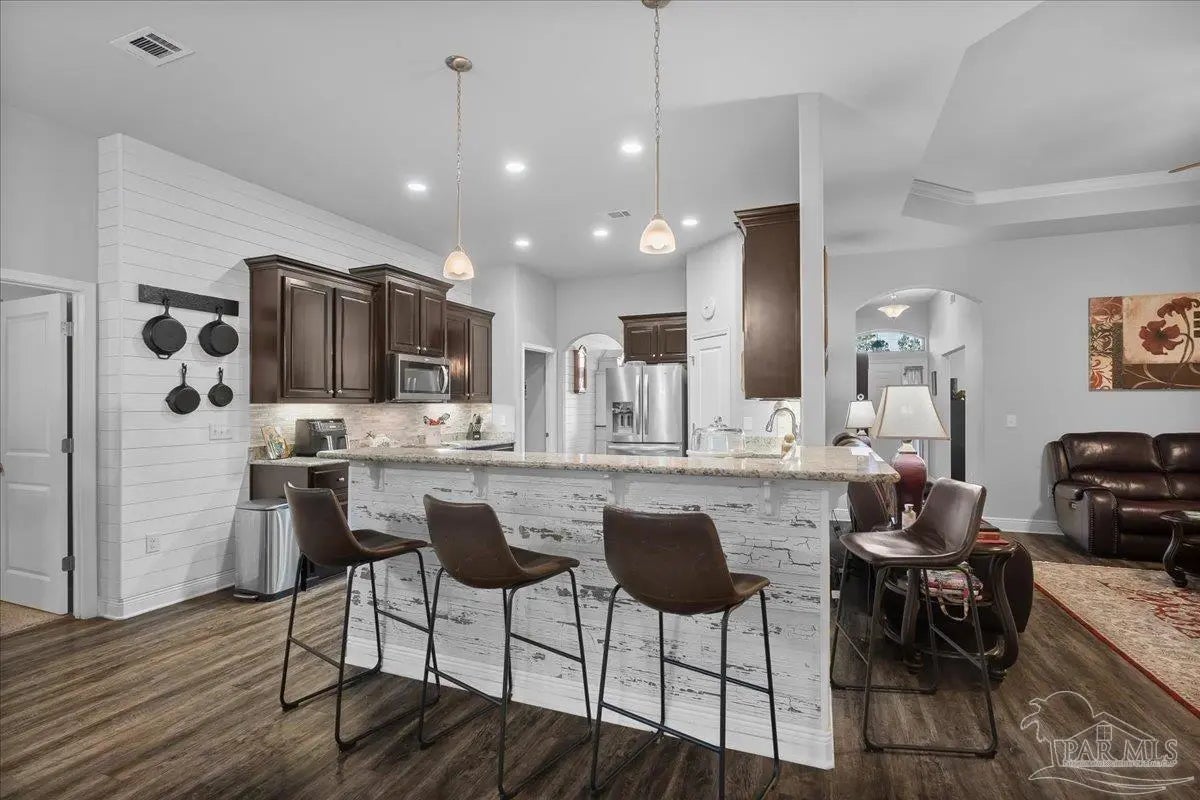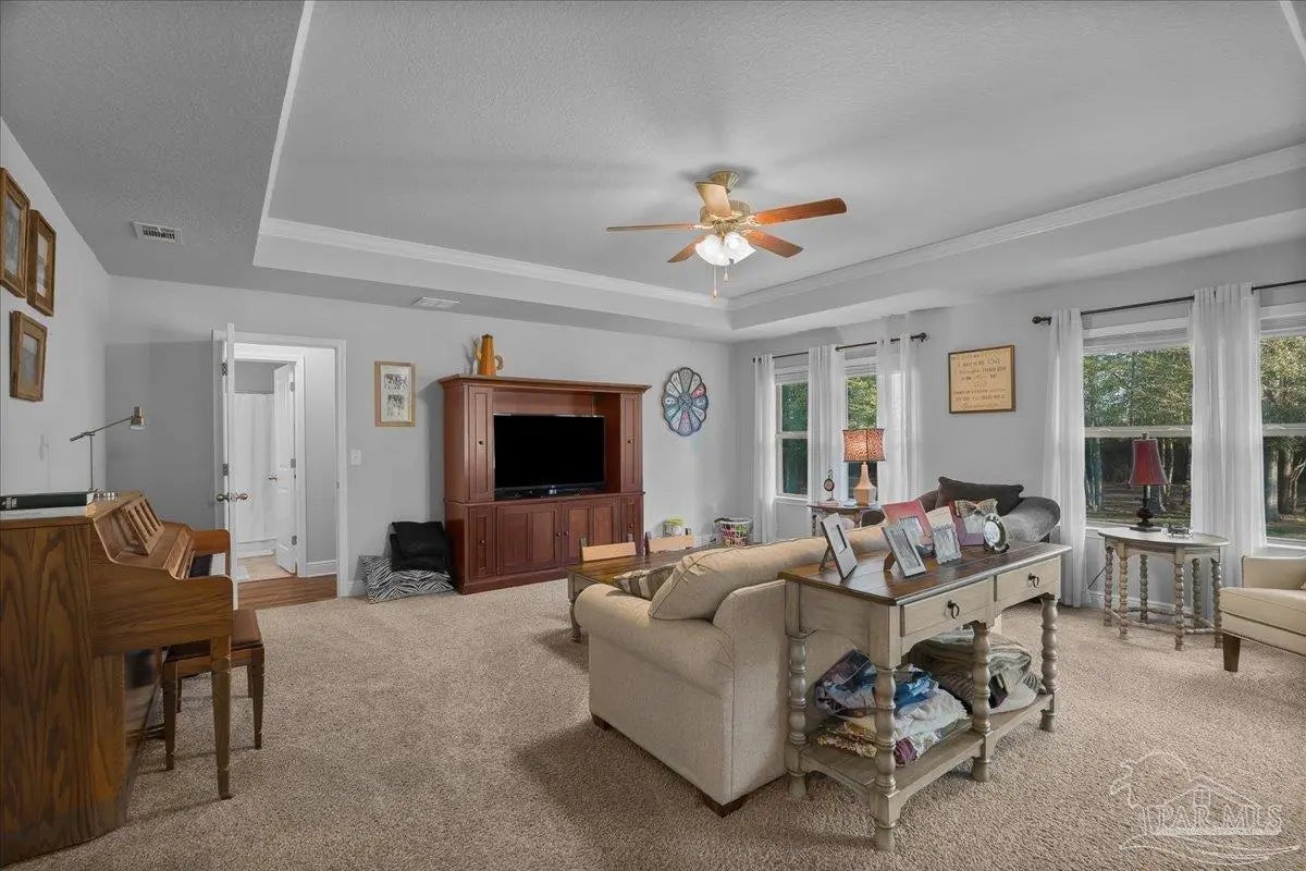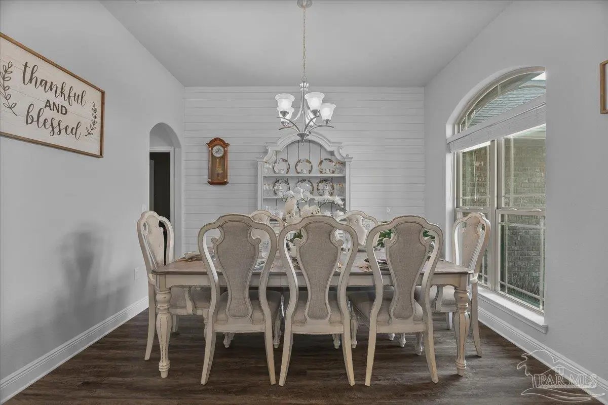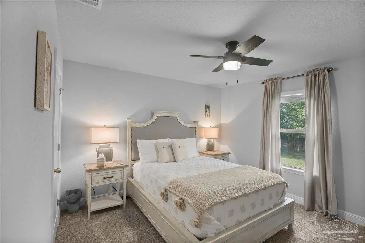 Experience the serenity of rural living with this spacious 4-bedroom, 3-bath home nestled in the quiet farm community of Stafford Farms in Jay. You will love this almost ONE ACRE lot and the way this home sits on a CUL DE SAC with no flow of traffic. Step inside to soaring 10-FOOT CEILINGS and an OPEN FLOOR PLAN that creates a welcoming flow throughout the home. As you walk in, to the right is a formal DINING ROOM and to the left is an OFFICE/STUDY. The den showcases DOUBLE TREY CEILINGS and an ELECTRIC FIREPLACE, offering both charm and comfort. It flows smoothly to the kitchen and breakfast area. SHIPLAP walls tie the den to the dining room adding that designer touch. The expansive eat-in kitchen features GRANITE countertops, a WRAP-AROUND BREAKFAST BAR, pendant lighting, CUSTOM MADE MAPLE RAISED PANEL-SOLID WOOD CABINETS, all STAINLESS-STEEL APPLIANCES and a WALK-IN PANTRY. A 19 x 19 FLORIDA/BONUS ROOM or Media Room extends the living space and overlooks the beautiful backyard, perfect for relaxing or entertaining. The master suite boasts TREY CEILING, while the luxurious 16 x 11 MASTER BATH offers TWO WALK-IN CLOSETS, a DOUBLE VANITY, and a WALK IN SHOWER with Glass Enclosure and Stone Pebble tiled floor. Each additional bedroom is generously sized with ample storage, and each ADDITIONAL BATHROOMS includes a LINEN CLOSET for added convenience. Sitting on almost ONE ACRE of land, this property provides endless possibilities—whether you envision a swimming pool, a garden, or future expansion. This property backs up to a wood line so you will never have construction behind you. With everything being installed in 2018, you will have peace of mind for years to come. A perfect blend of country charm and modern comfort, this home offers room to grow both inside and out. Additional features: 3 CAR GARAGE, Accent Walls, Arch openings, Transom on windows, SPRINKLER SYSTEM ON WELL and more. Call us today for your private showing!