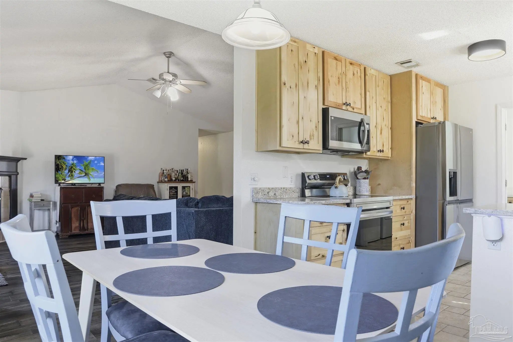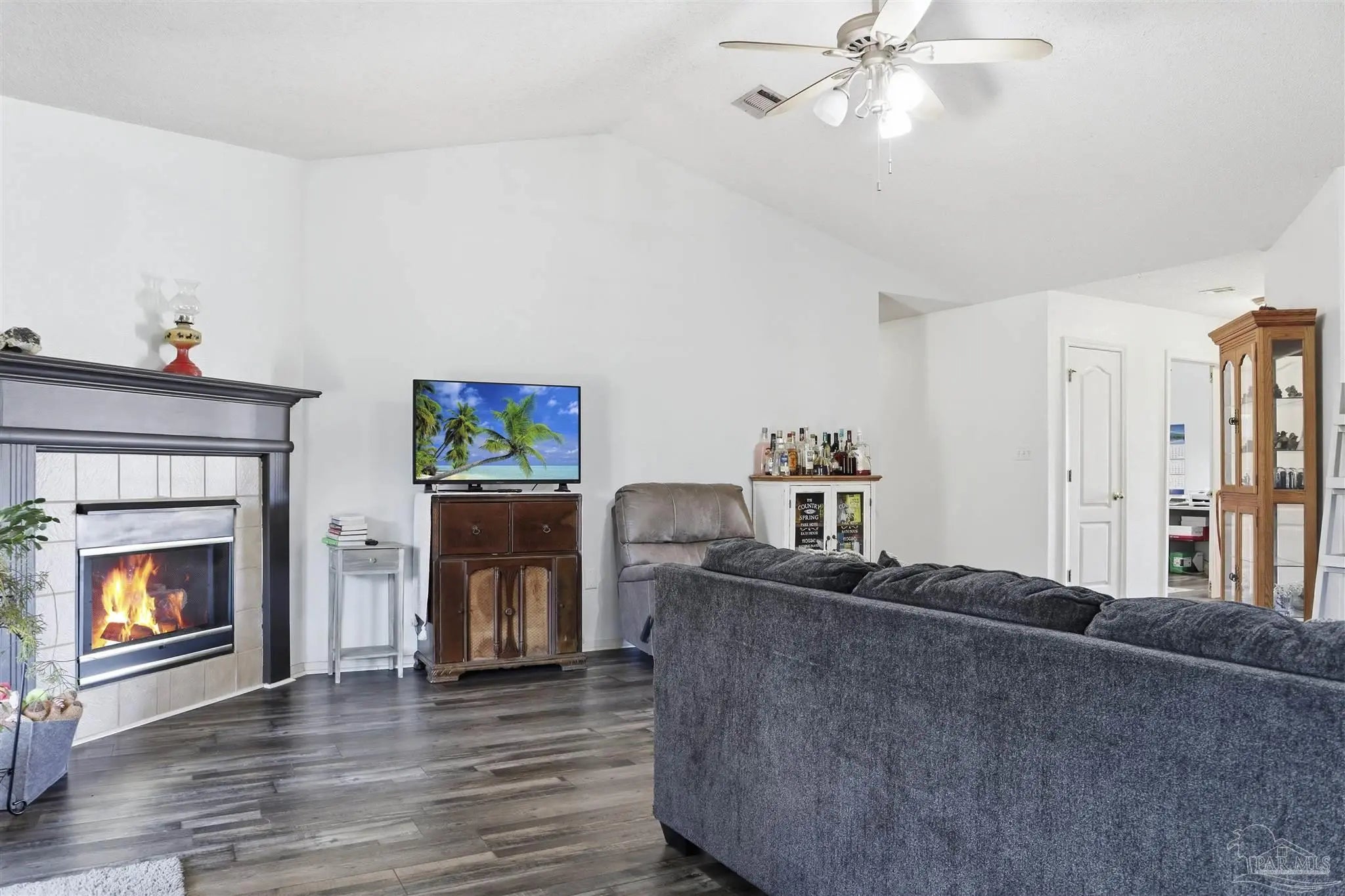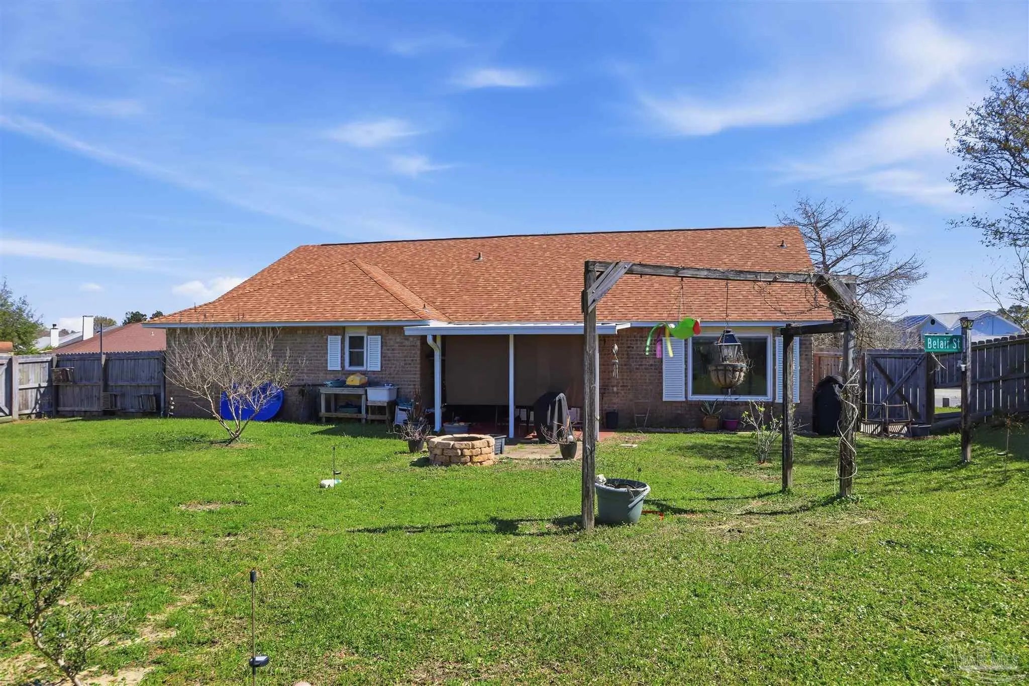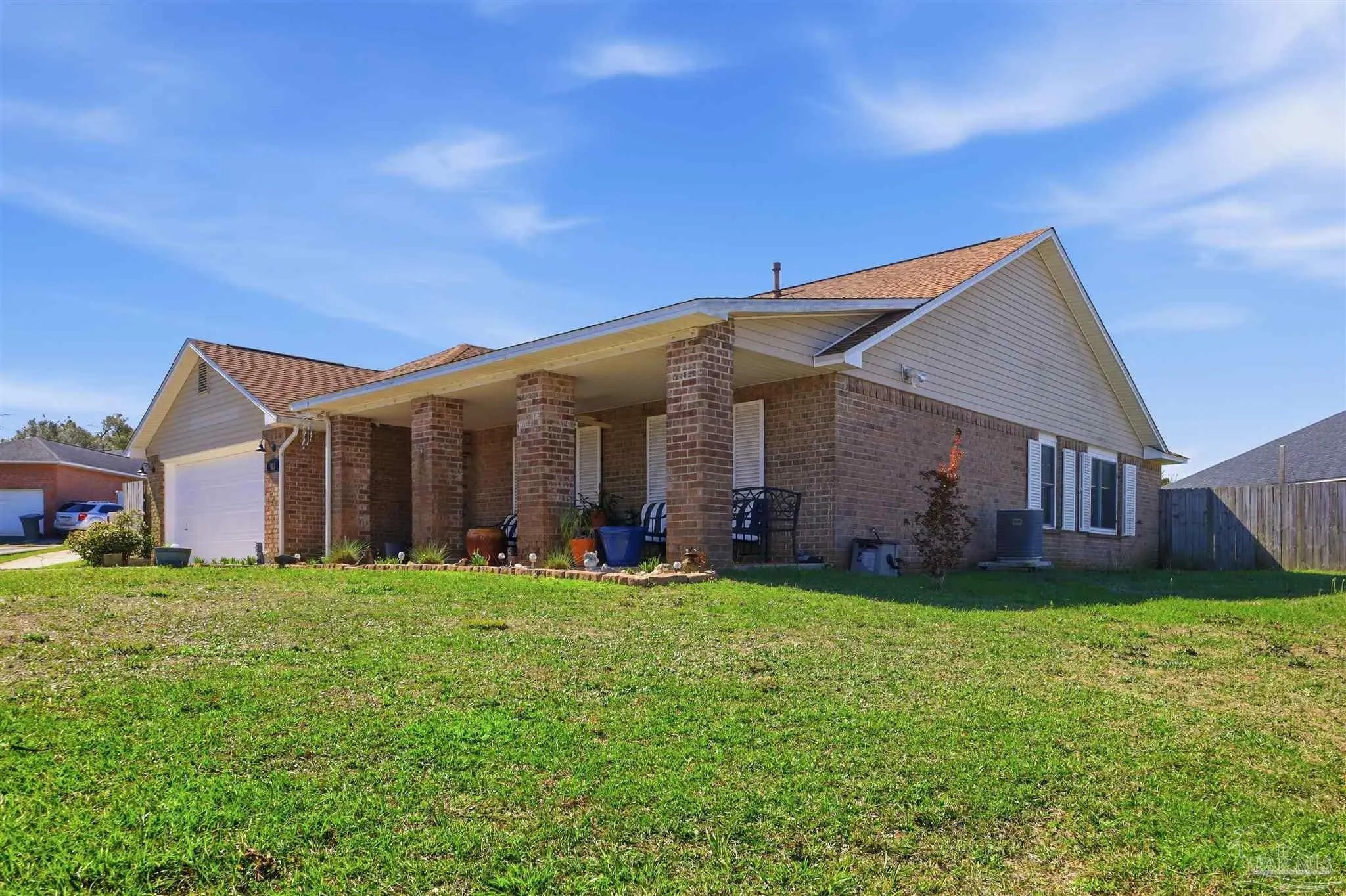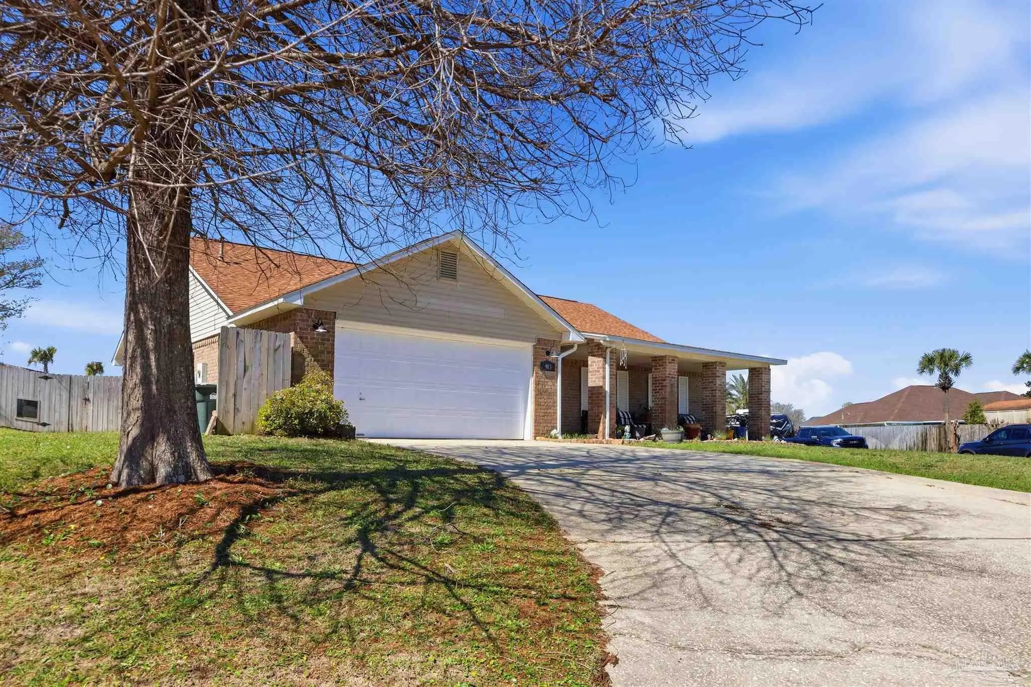 Welcome to Catskills Lane, where comfort, simplicity, and everyday living come together in a home that feels instantly inviting. Set beneath mature trees with a wide front porch made for slow mornings and evening conversations, this home offers a warm welcome from the moment you arrive. Inside, the layout opens into a spacious living area with vaulted ceilings and a cozy fireplace that naturally becomes the heart of the home. The kitchen has been thoughtfully updated with beautiful wood cabinetry, modern appliances, and ample counter space, creating a space that feels both functional and inviting. It flows easily into the main living areas, making it ideal for both quiet nights in and gathering with friends and family. Natural light flows throughout the home through the new impact windows, highlighting comfortable living spaces and well-sized bedrooms designed for flexibility—whether you need space for guests, a home office, or simply room to unwind. The primary suite offers a peaceful retreat, while additional bedrooms provide versatility for any stage of life. Out back, you’ll find a fully fenced yard with space to relax, play, or entertain, along with a covered patio that extends your living outdoors year-round. Located in a convenient Pensacola setting close to shopping, dining, and everyday essentials, this home offers the perfect balance of comfort and accessibility. A place that feels easy, welcoming, and ready for its next chapter. Call today to schedule a showing and watch the Blues practice from your home!