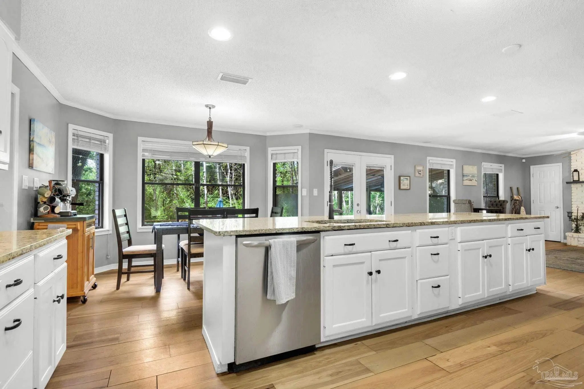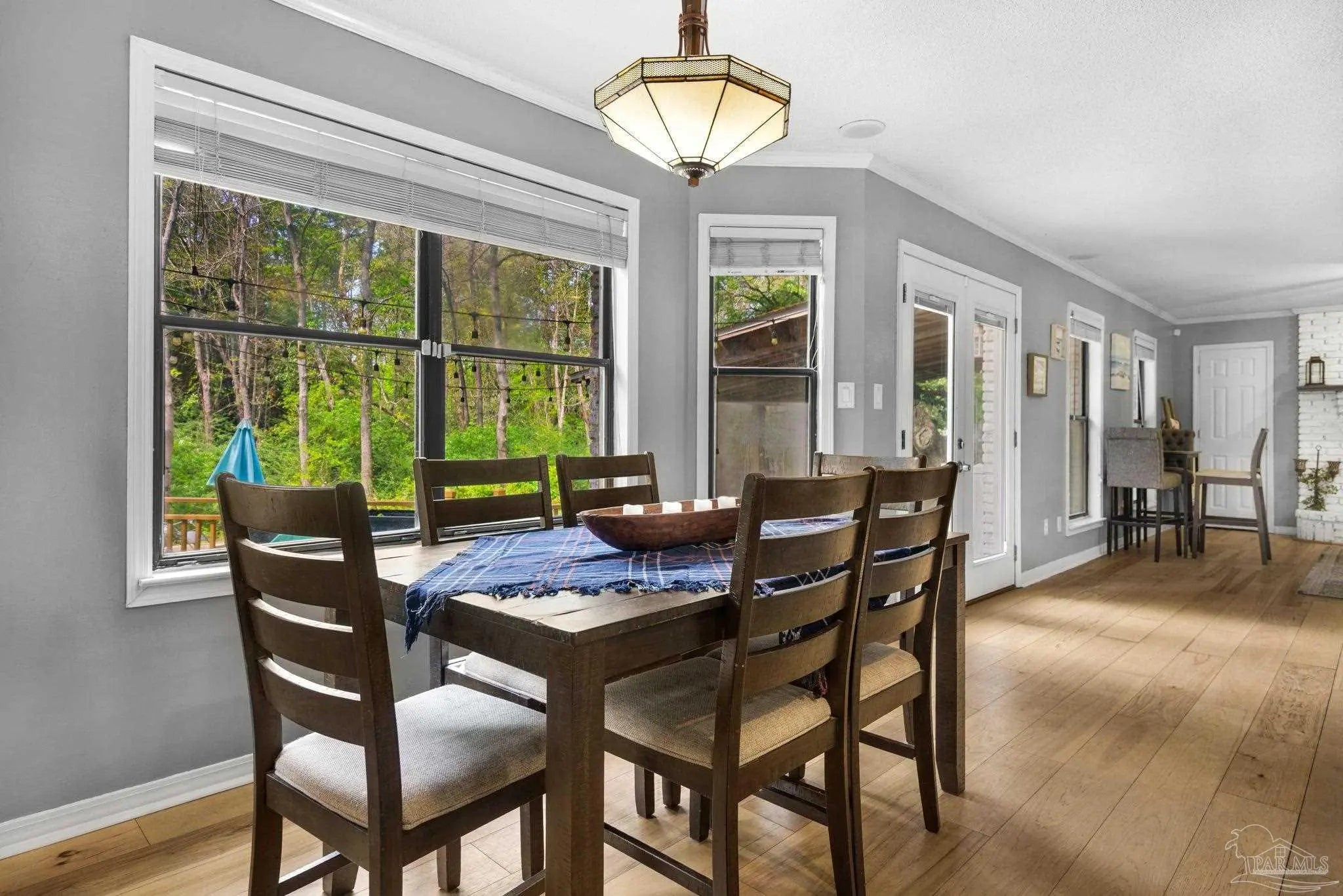 Beautifully updated 5BR/3BA creekside home on nearly half an acre in one of Pensacola’s most desirable neighborhoods, offering a rare combination of privacy, space, and modern upgrades. Tucked away among mature trees and set back off the main road, this home provides a quiet, secluded setting while still being close to everything. Major improvements include a roof (2022), new upstairs HVAC, new water heater , and a saltwater pool system—giving buyers peace of mind and true move-in-ready confidence. The home also features an oversized 2-car garage (extra deep and wide) with additional storage. Inside, you’ll find a bright, open layout with abundant natural light and new engineered hardwood flooring throughout the main level. The spacious kitchen with a large island is perfect for entertaining and everyday living, opening seamlessly to the living area with a wood-burning fireplace. A formal dining room adds flexibility for hosting. Upstairs offers 5 bedrooms plus a large bonus room, ideal for those that NEED it, home office, or media space. The primary suite features a private balcony overlooking the creek, creating a peaceful retreat. The backyard is where this home truly stands out—designed for both relaxation and entertaining with a large deck + covered area, saltwater pool, treehouse/playground, and plenty of green space. The property backs to a natural stream, enhancing both privacy and setting. This is a rare opportunity to own a spacious, updated pool home with a private, nature-filled backdrop. Just minutes away from the interstate for easy access to NAS, Whiting Field, Pensacola Beach, and downtown Pensacola. Possible assumable loan approval.