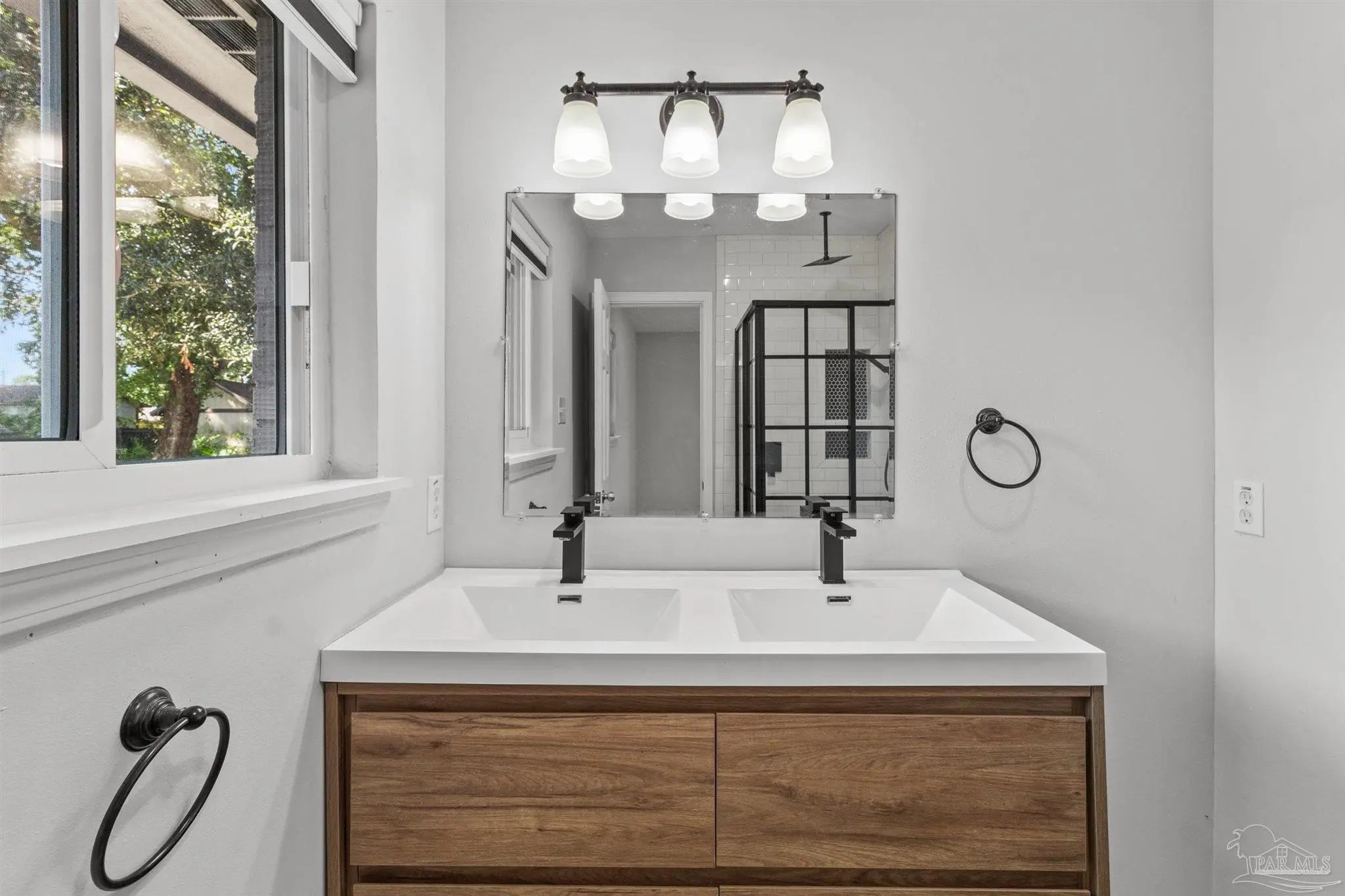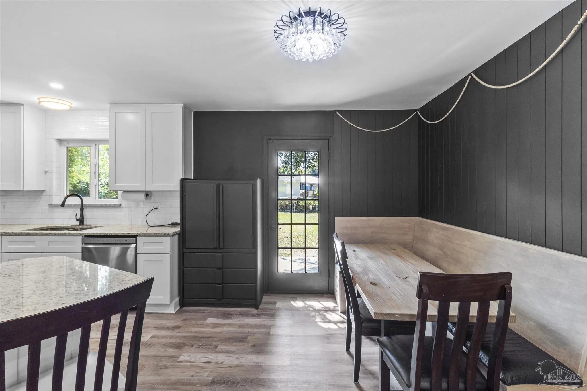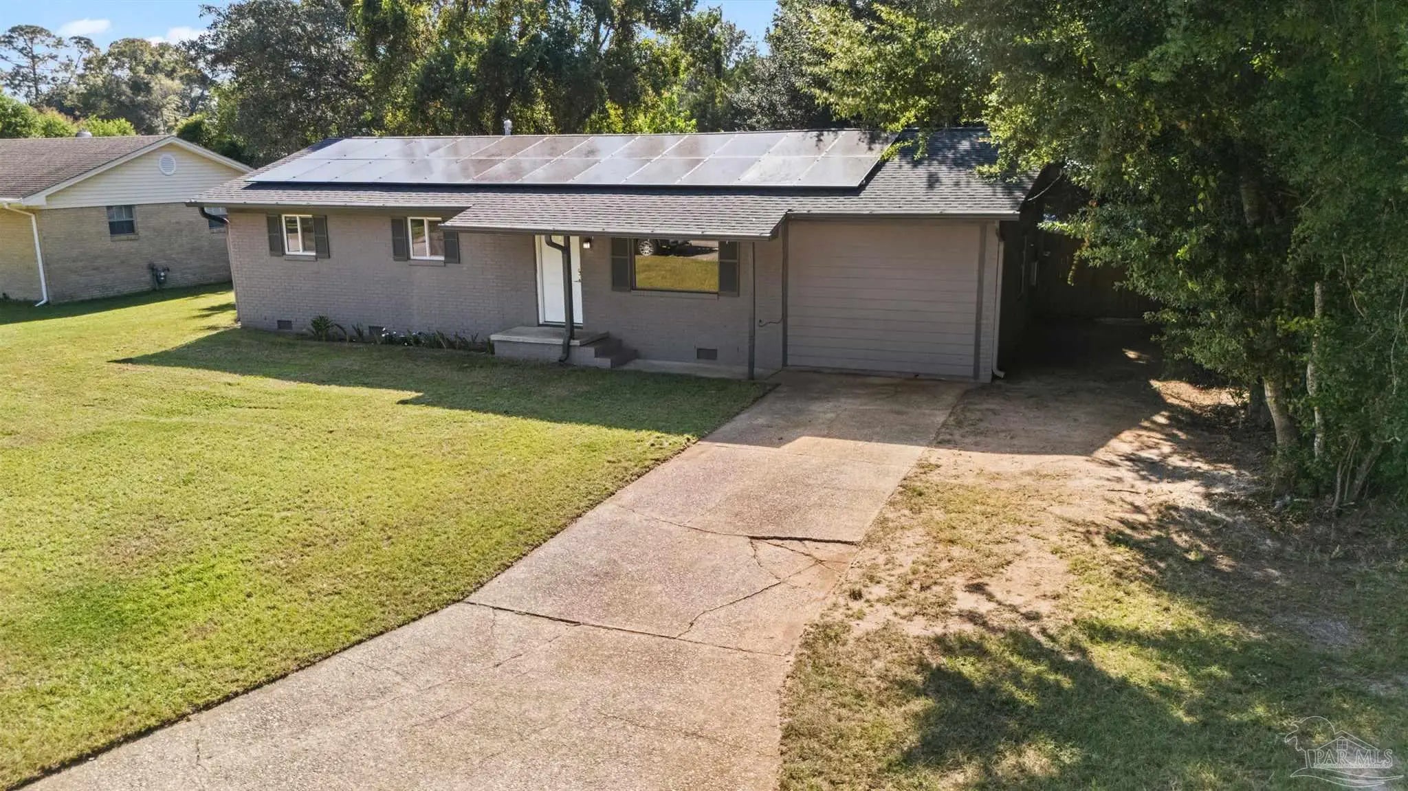 NOW FEATURING FULLY PAID OFF SOLAR PANELS This fully renovated 4 bedroom, 2 bathroom Pensacola home offers modern design, quality upgrades, and energy efficiency throughout. The open-concept layout centers around a stylish kitchen with granite countertops, stainless steel appliances, a large island, and a custom dining nook with built-in storage. The primary suite features a sleek double floating vanity and a custom shower with sliding glass doors and rain head for a spa-like experience. Behind the scenes, the home has been enhanced with a fully encapsulated crawl space including a dehumidifier, sump pump, and drainage system for long-term durability and moisture control. Roof replaced in 2021. The fully paid-off solar panels installed in 2024 provide immediate savings on electricity with no additional cost. Outside, enjoy a shaded patio and private backyard space framed by mature trees. Ideally located with convenient access to shopping, dining, schools, and the Gulf Coast beaches, this home is ready for its next owner.