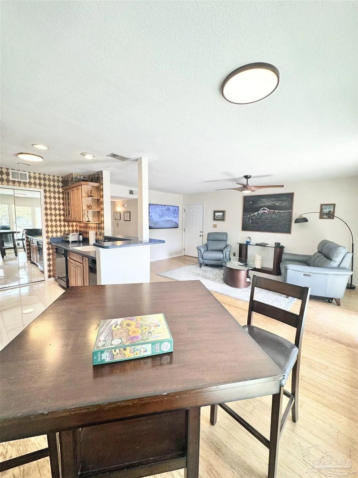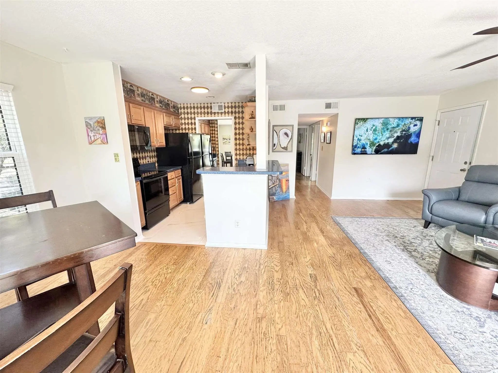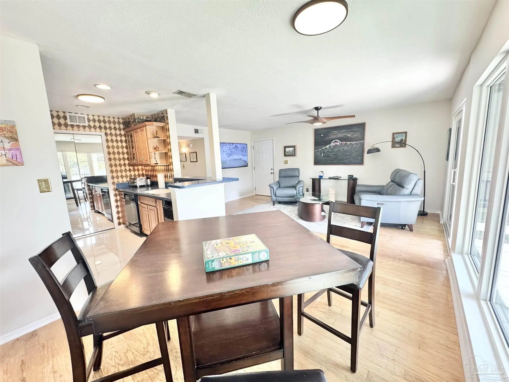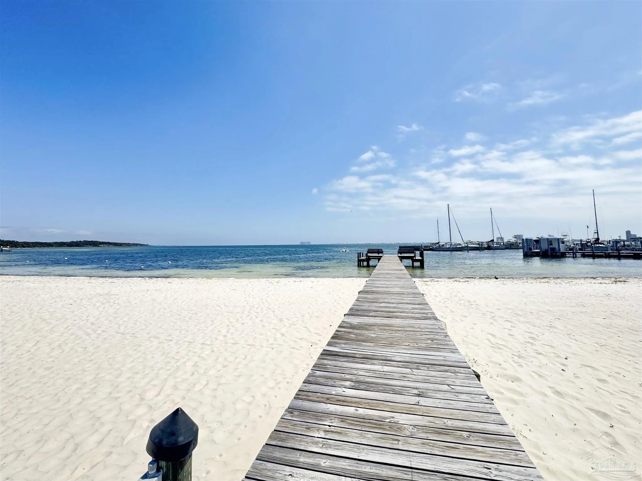 This bright, spacious, and move-in ready Pensacola Beach condo offers spacious bedrooms, a comfortable living and dining area, and a wonderful balcony perfect for entertaining friends and family. The unit features real hardwood floors throughout, a kitchen with 32” x 32” tile, and bathrooms with 24” x 48” tile, all filled with abundant natural light. Designed for both vacation living and full-time residence, this condo combines comfort and functionality in a beautiful coastal setting. Part of a resort-style community with direct beach access, residents can enjoy launching kayaks, paddleboards directly from the shoreline, relax at the community pool, gather around the beachside fire pit, or spend time at the peaceful waterfront docks perfect for fishing, reading, or enjoying outdoor time. The complex also offers covered parking, oversized storage, and a small lake with a fountain by the pool, adding charm and convenience to everyday living. Just three minutes from Gulf Breeze Vista Park, residents have access to fishing, walking trails, and outdoor recreation. The beach is a 15-minute walk, offering easy access to the Gulf while still maintaining a relaxed, community atmosphere. Unit J2 also provides spectacular year-end fireworks, making holidays and celebrations extra special. This beach-access condo near Pensacola Beach has a minimum rental period of six months, making it ideal for seasonal rentals or investment opportunities. Whether you are searching for a vacation condo, rental property, or full-time home near the beach, Unit J2 at Sunchase delivers spacious, comfortable living with resort-style amenities, entertainment-friendly spaces, and a lifestyle designed for relaxation, recreation, and fun. With beach access, water activity opportunities, and proximity to Gulf Breeze Vista Park, this condo perfectly blends Florida coastal living with convenience, charm, and the ultimate beachfront lifestyle.