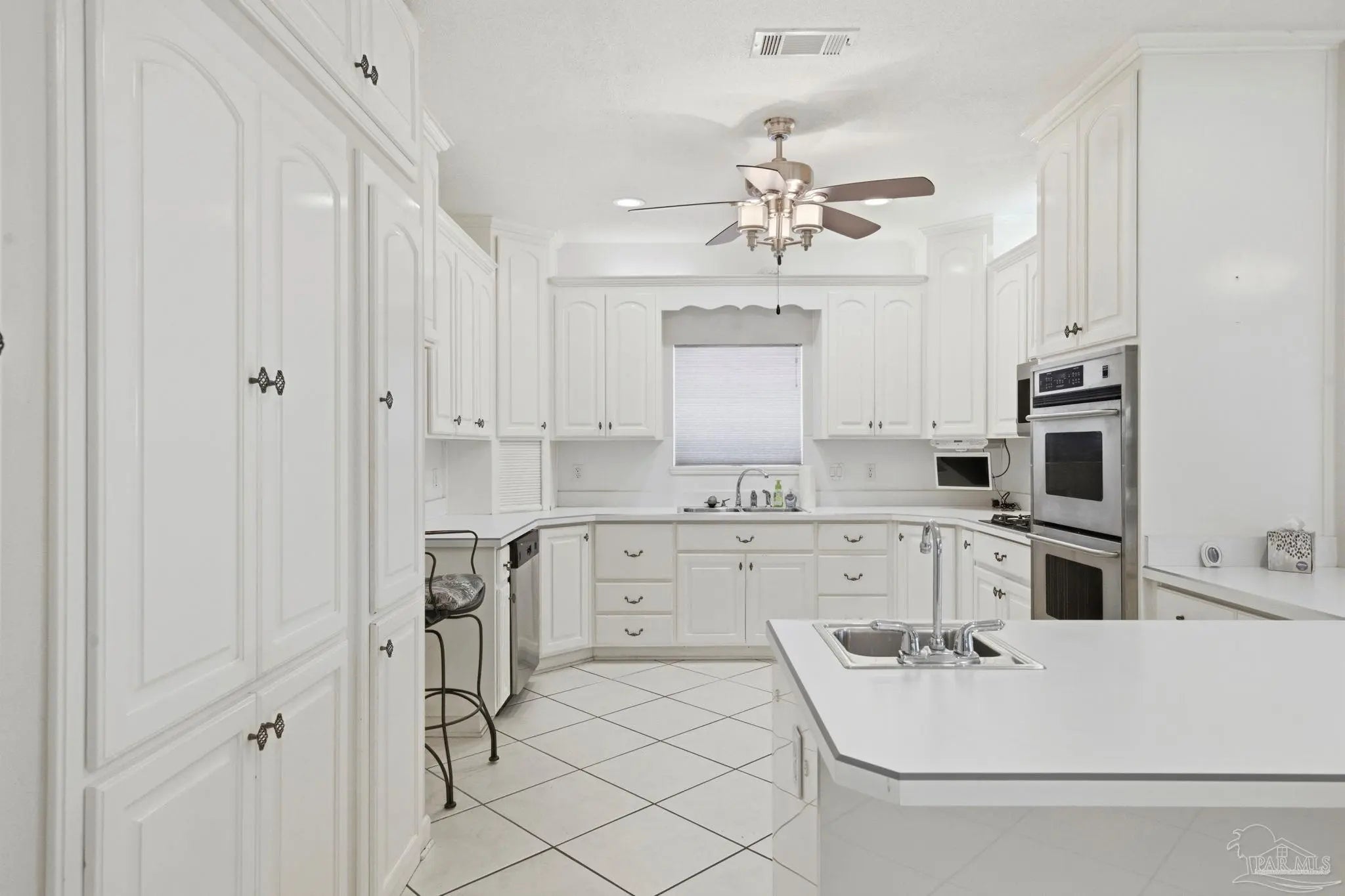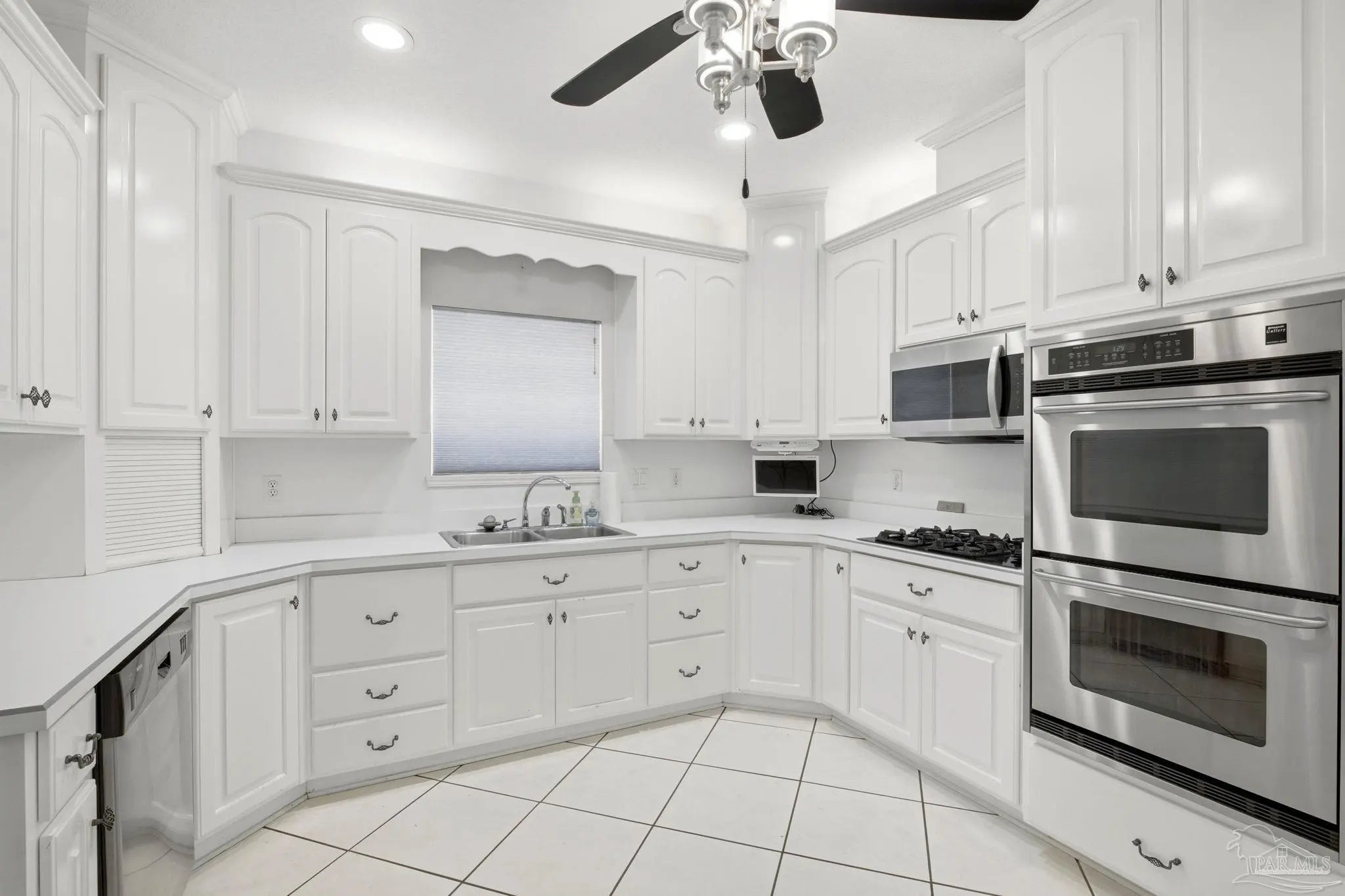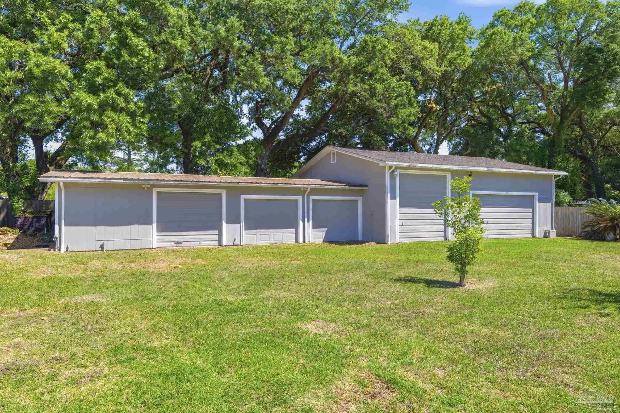 WOW!! Rare find in Pace close to shopping, dining and minutes from Pensacola State College in Milton. This beautiful home has a two car garage ++ detached three car garage w/ work benches & attached RV + 1 garage w/ 1/2 bath! The main home features a large living room with fireplace and cathedral ceiling. Formal dining room w/ built in cabinets. Parlor/reading room. Huge florida room with a 1/2 bath, full wet bar, display cabinets. Kitchen loaded w/ cabinets, gas range, double oven, microwave, prep sink and more. Spacious main bedroom. Main bath with tub, separate shower, double vanity + 2 closets. Large covered patio is plumbed for gas & ready for summer cookouts. Irrigation system with well. Water treatment system.