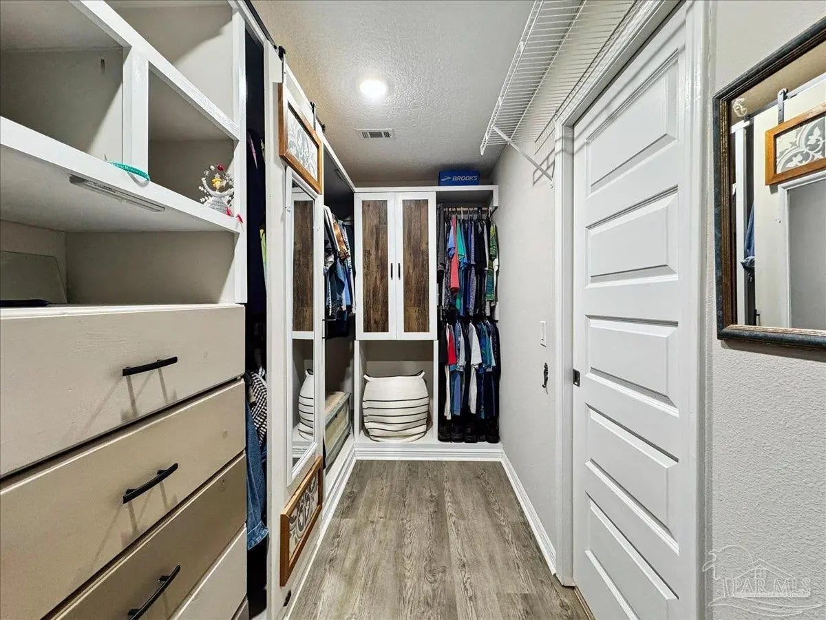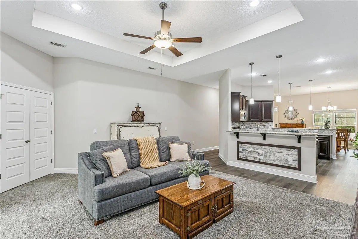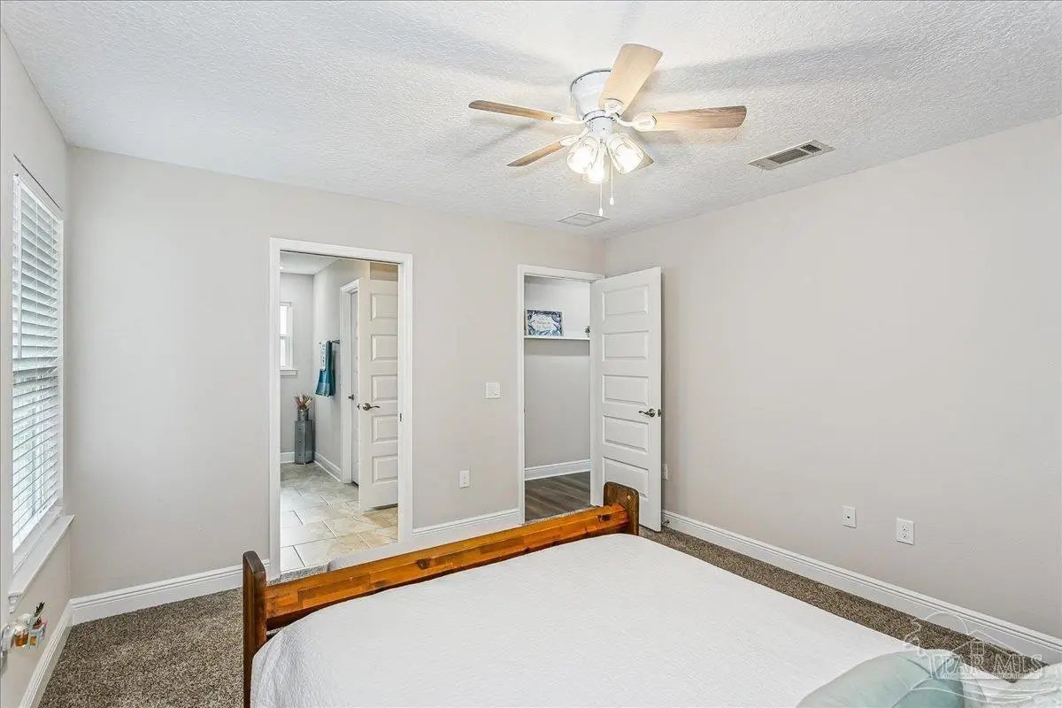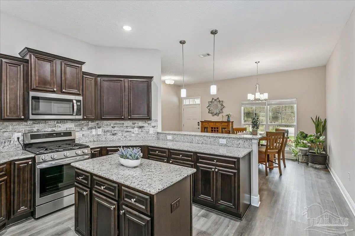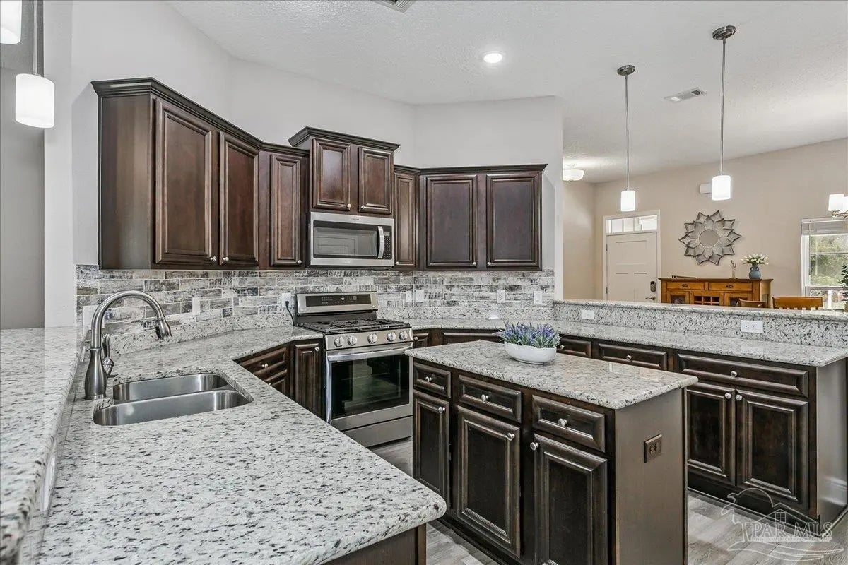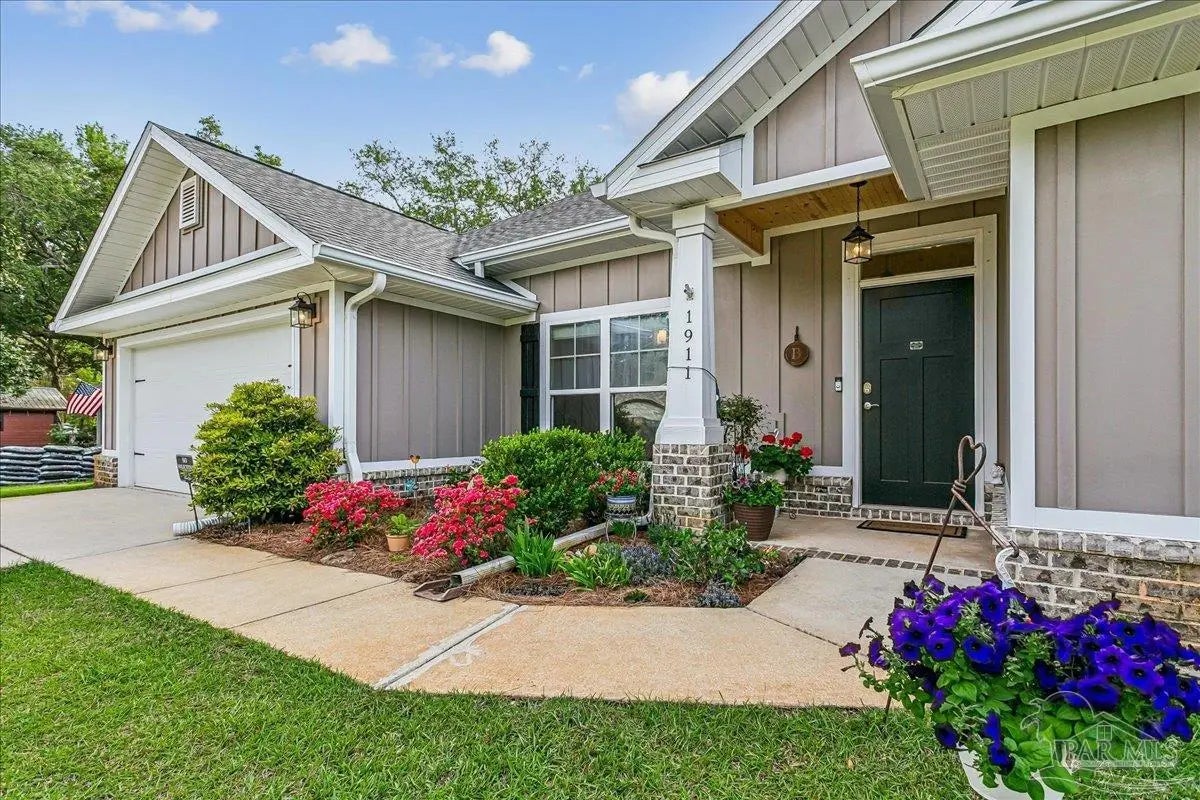 If you’ve been searching for a peaceful, near-the-water home with no HOA, this is the one most buyers don’t even know exists. Tucked away beneath mature live oaks in a quiet neighborhood on East Bay, adjacent to Hickory Shores, this meticulously maintained 2019 Flynn-built home offers both privacy and convenience. Enjoy water views from the driveway and take a short 1–2 minute walk to the bay—perfect for sunset photos, kayaking, paddleboarding, or relaxing at the neighborhood park. Built in 2019, this meticulously maintained Flynn-built home offers 4 bedrooms, 3 baths, and two primary suites, ideal for guests or multi-generational living. The main suite features a custom walk-in closet, garden tub, and tiled glass shower, while the second suite offers private porch access. Thoughtful upgrades throughout include granite countertops, stainless appliances, a gas range, tankless water heater, and a whole-home natural gas generator. Set on a beautifully landscaped lot surrounded by mature live oaks, the backyard offers plenty of space for a future pool and outdoor entertaining. Two back porches, a retractable awning, and added storage enhance everyday living. Conveniently located in Midway between Navarre Beach and Pensacola Beach, this home is also within 2 miles of the new Soundside High School, Gulf Breeze Zoo, and just minutes to boat launches, shopping, and dining. This is coastal living at its best—private, peaceful, and move-in ready.