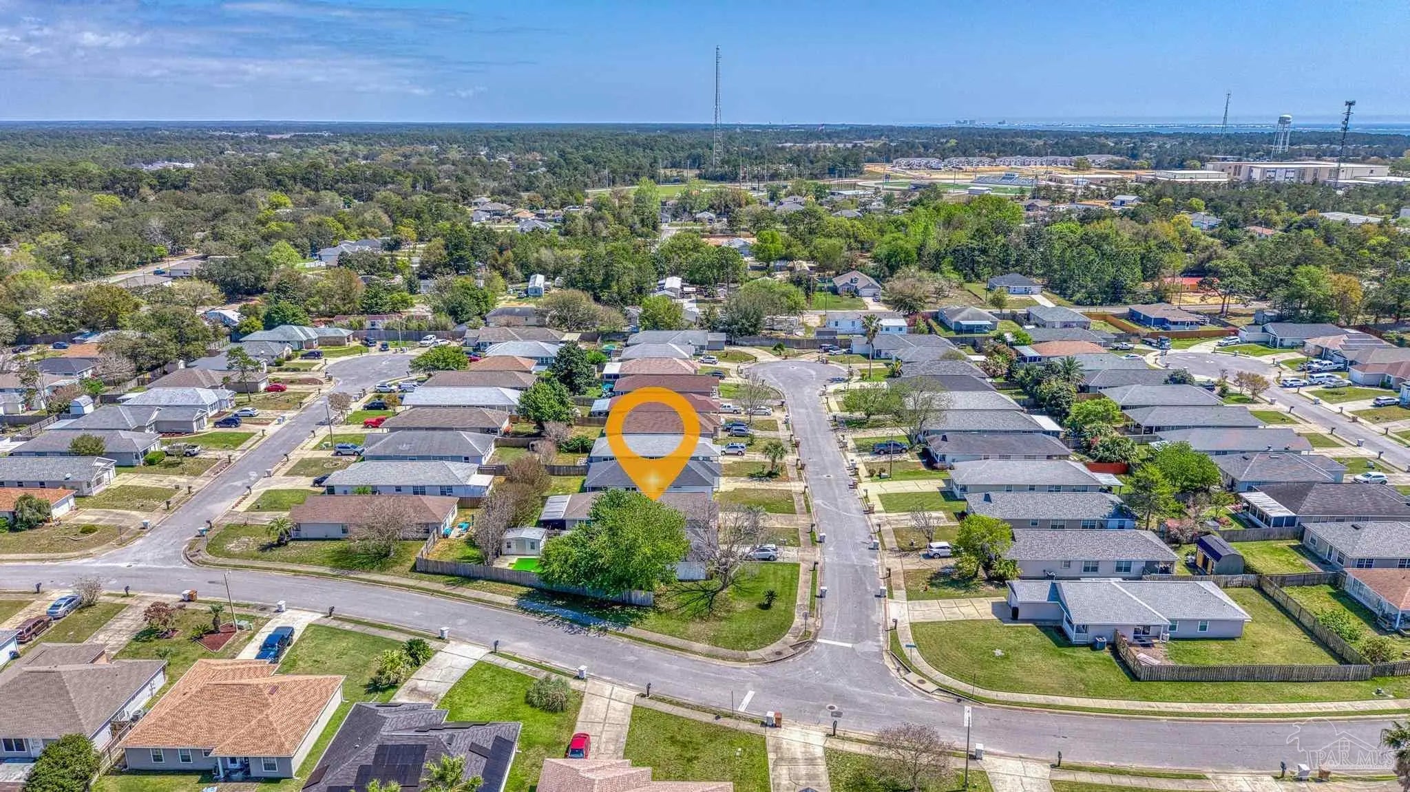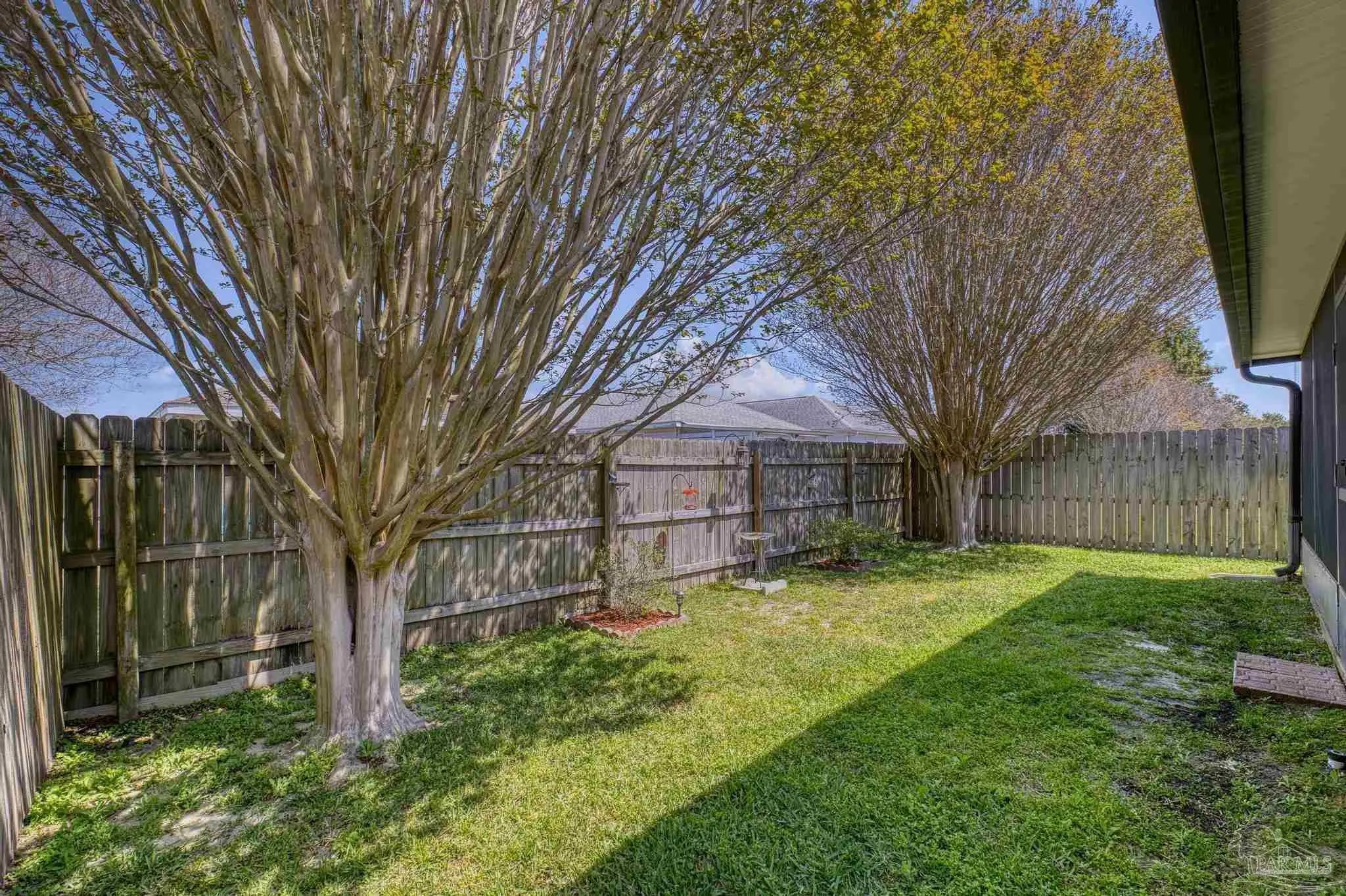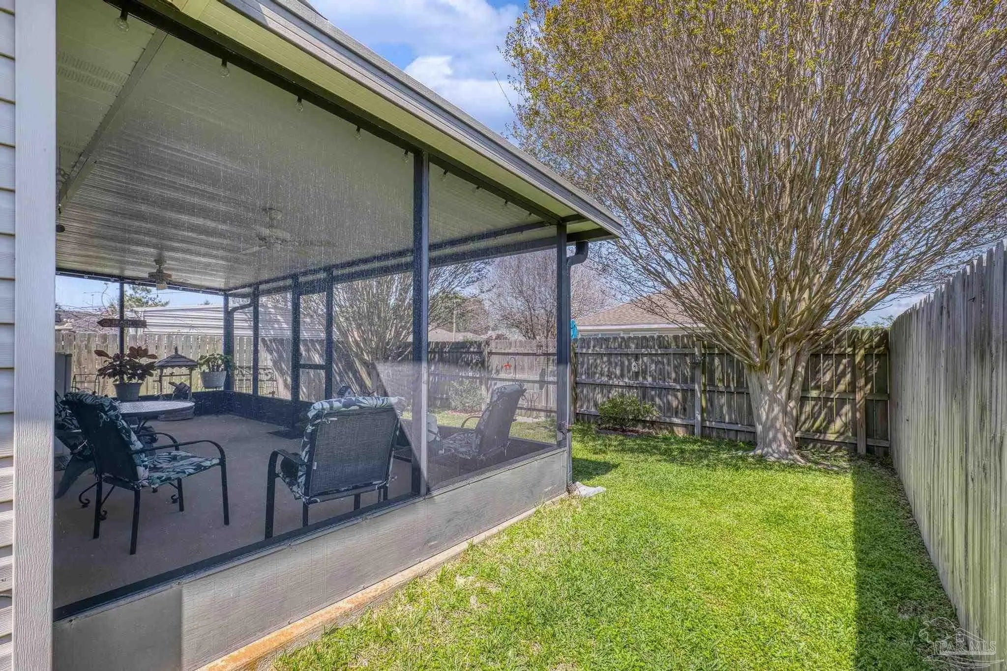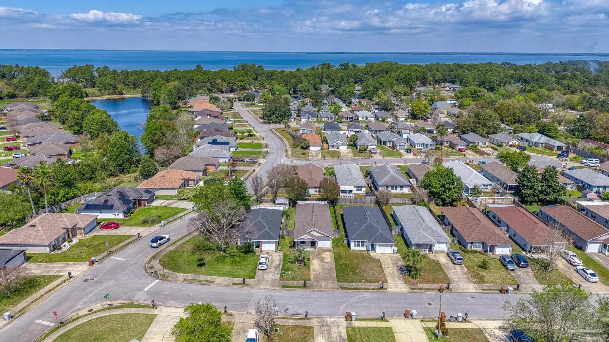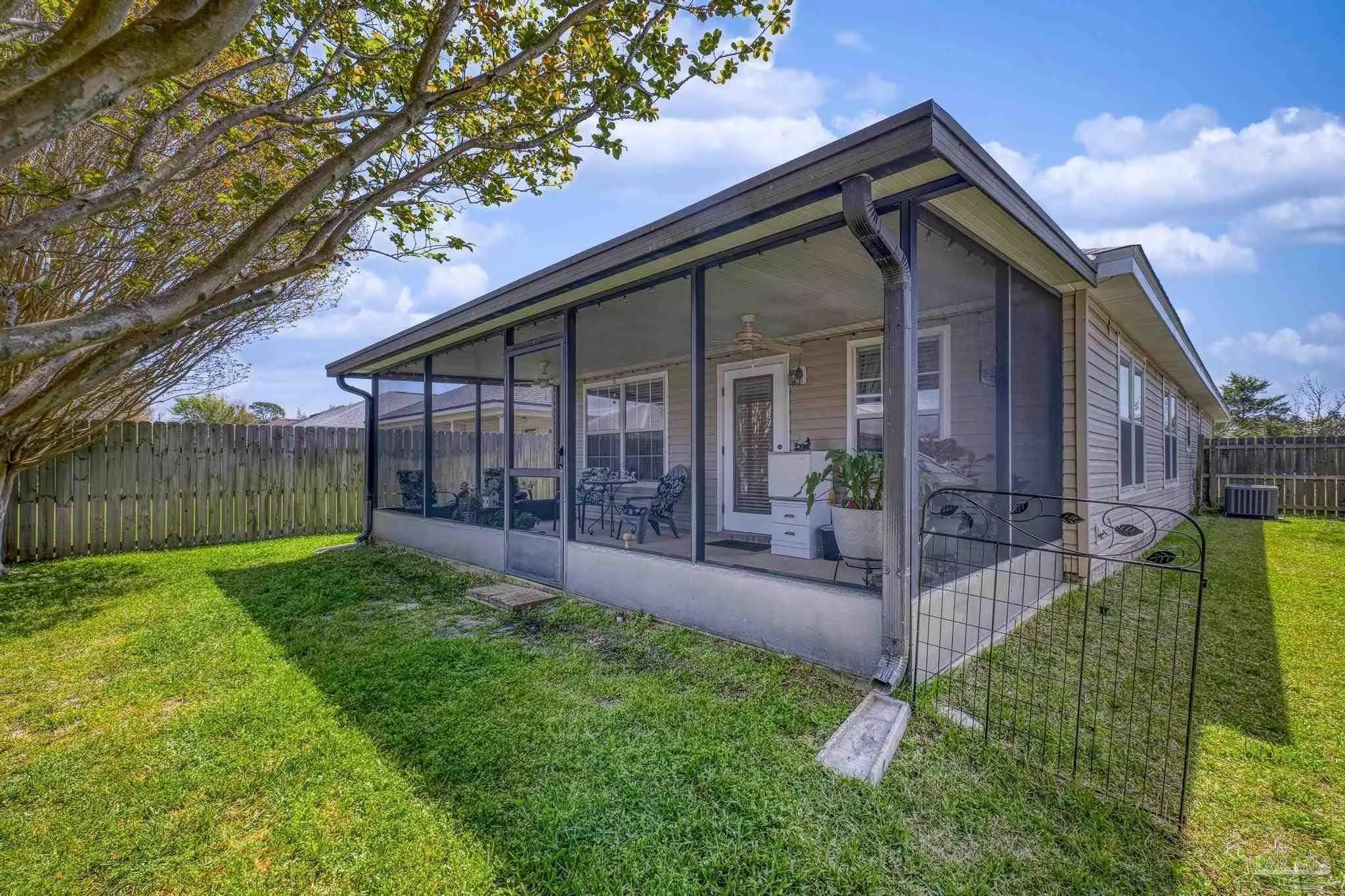 This meticulously maintained residence captures the essence of relaxed Florida living, offering a perfect balance of modern updates and cozy charm. From the moment you pull into the quiet cul-de-sac, you are greeted by an inviting exterior that leads into a thoughtfully designed 1,257-square-foot interior. The home boasts a bright and cheery floorplan that seamlessly connects the living, dining, and kitchen areas, making it an ideal space for both daily life and hosting. No popcorn ceilings here! Neutral colors provide a clean canvas for any decor style. The main suite overlooks the backyard and is complete with a spacious walk-in closet in the private ensuite bathroom. Two additional bedrooms in the front of the home offer versatility for dedicated home office, or a guest wing. The transition from indoor to outdoor living is effortless through the screened-in porch, where dual ceiling fans allow you to enjoy the coastal breeze in total comfort. This outdoor space features a manageable, low-maintenance backyard with sprinkler system on reclaimed water, providing just enough space for gardening or pets without the burden of extensive weekend yard work. Location is everything, and this property delivers by being situated in a neighborhood with sidewalks and underground utilities while remaining just a short drive from both Pensacola Beach and Navarre Beach. Residents of Shadow Lakes enjoy access to neighborhood amenities including a serene community lake and well-lit sidewalks for evening walks. Positioned within the top-tier Santa Rosa County School District and located near the new Soundside High School, local favorites like the Gulf Breeze Zoo, Tiger Point & Hidden Creek Golf Courses and various shopping hubs, this home represents a rare opportunity to own a piece of paradise in one of the Panhandle's most convenient locations. This home has gutters on the screen porch and impact windows on the west side of the home. Roof & fence 2021, Ac 2019, water heater 2016.