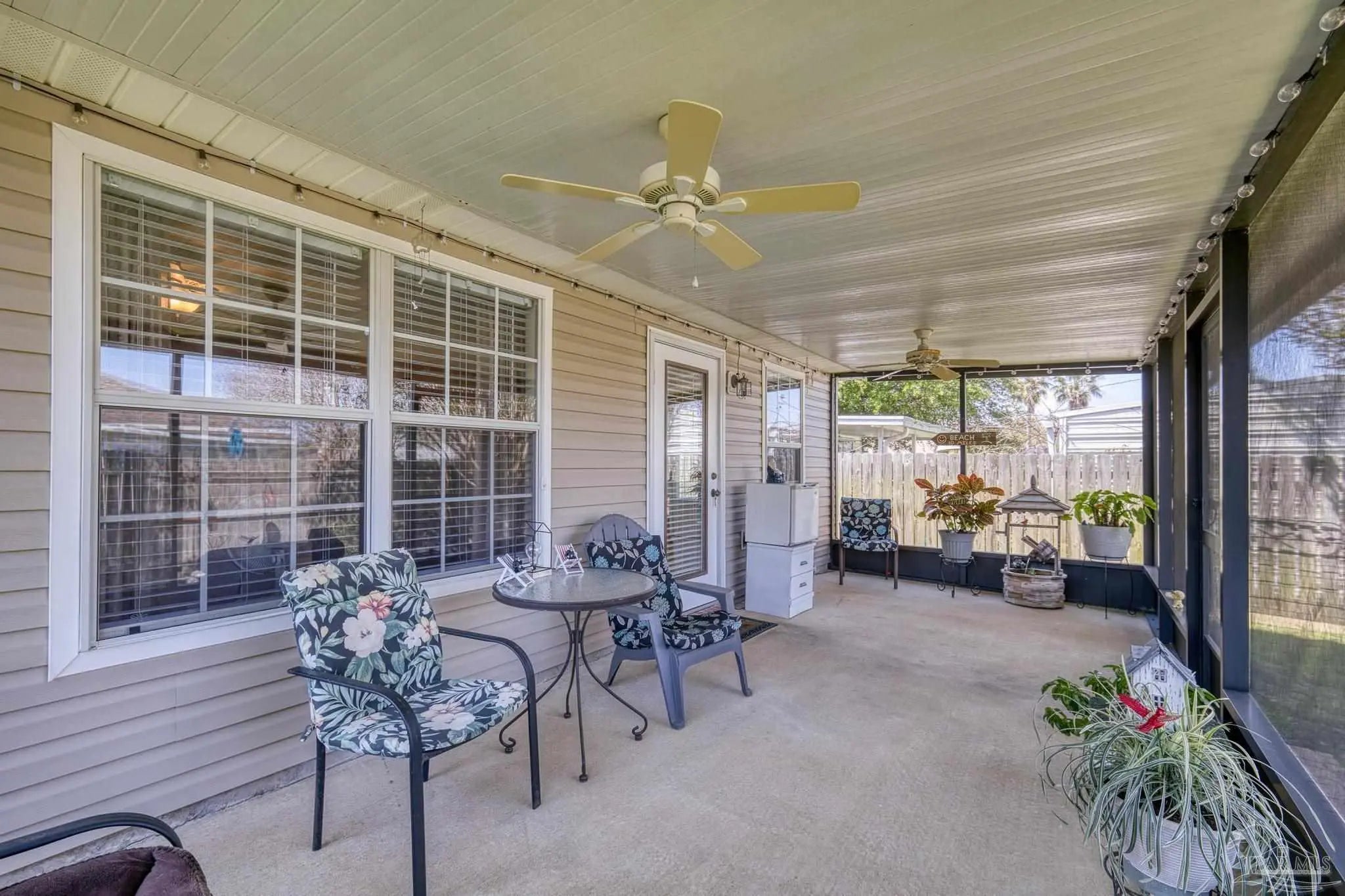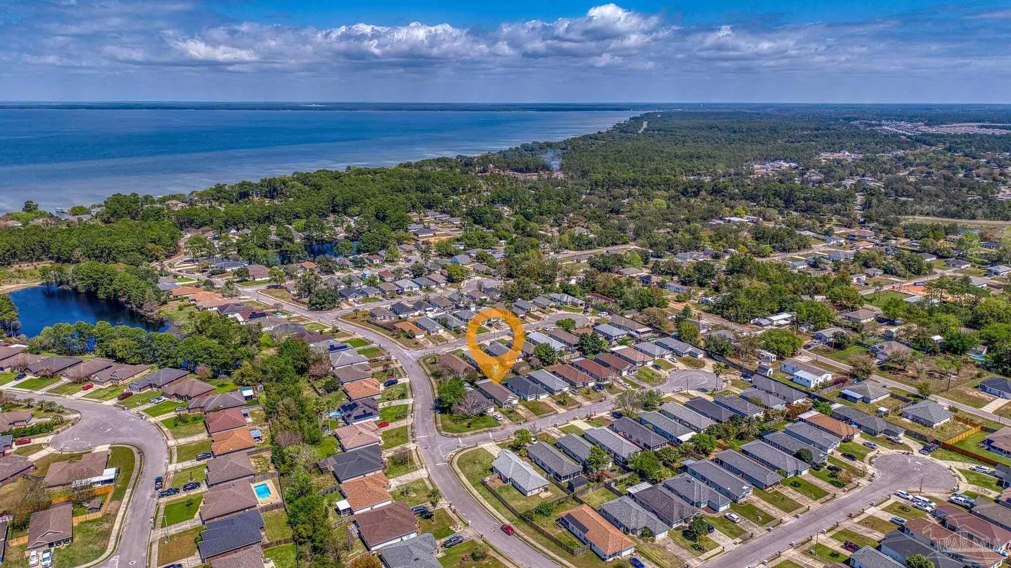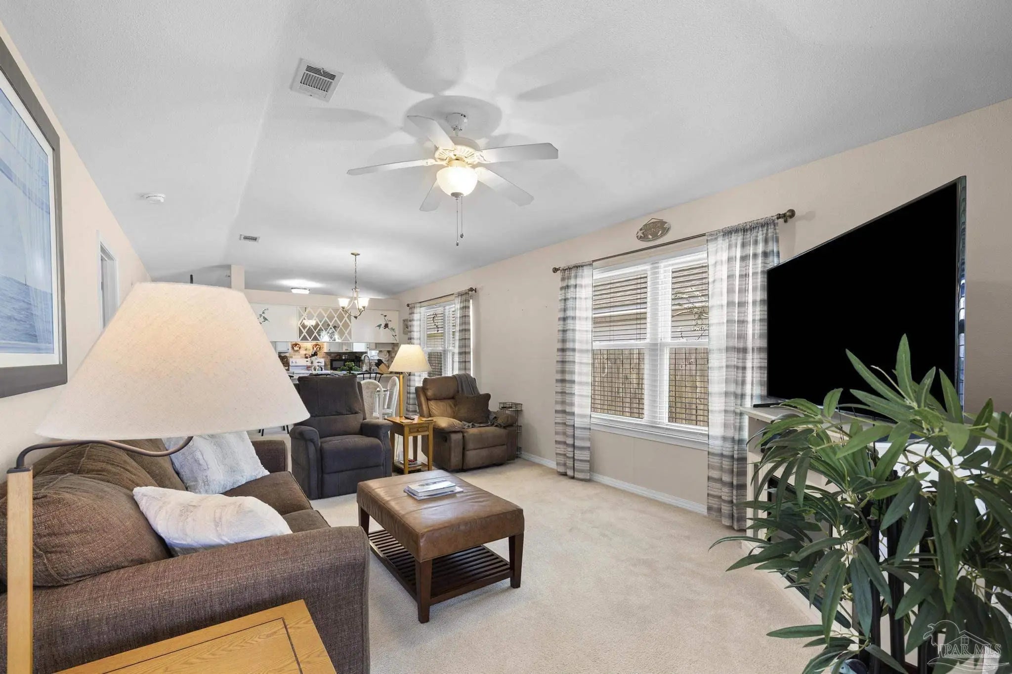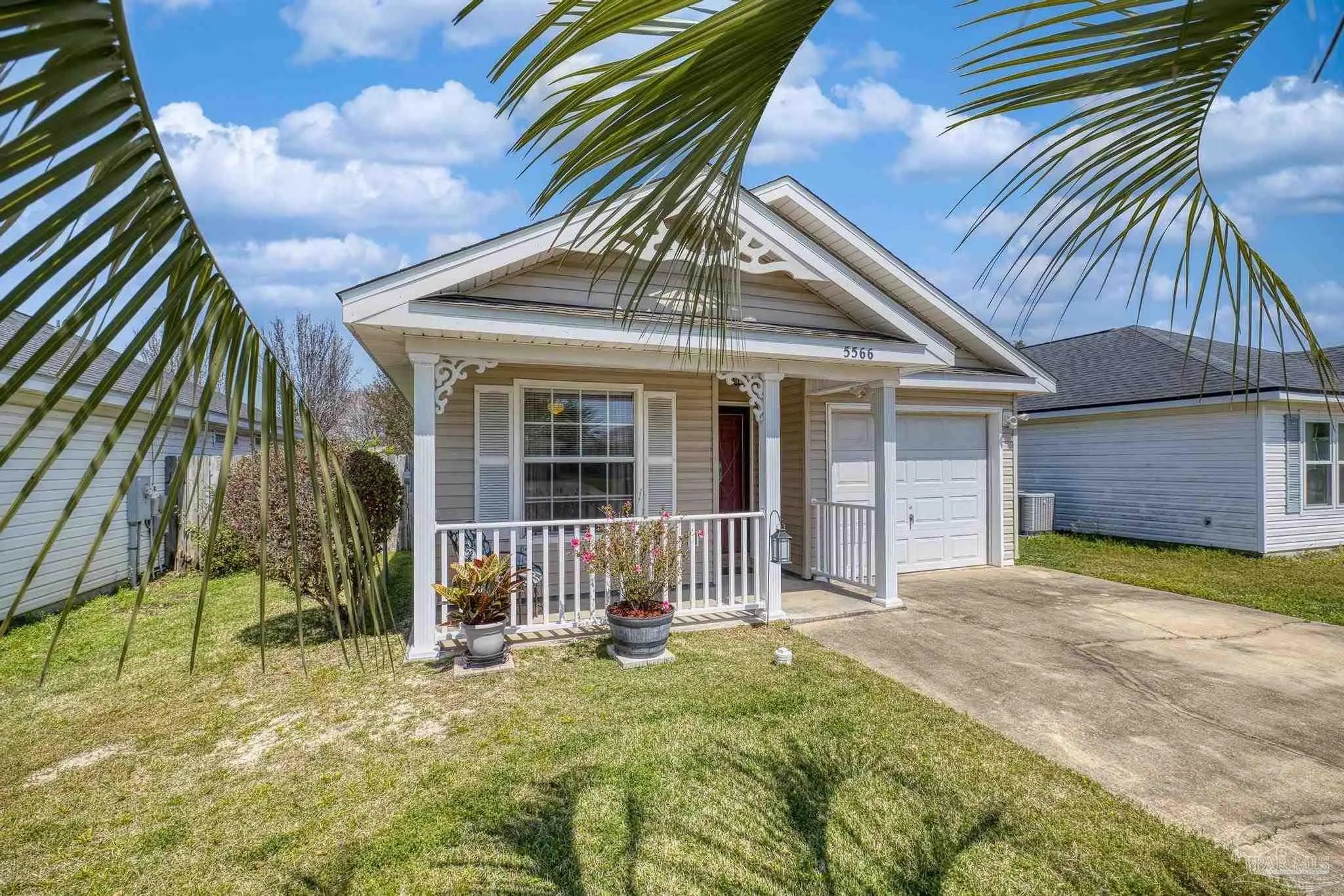 This meticulously maintained residence captures the essence of relaxed Florida living, offering a perfect balance of modern updates and cozy charm. From the moment you pull into the quiet cul-de-sac, you are greeted by an inviting exterior that leads into a thoughtfully designed 1,257-square-foot interior. The home boasts a bright and cheery floorplan that seamlessly connects the living, dining, and kitchen areas, making it an ideal space for both daily life and hosting. No popcorn ceilings here! Neutral colors provide a clean canvas for any decor style. The main suite overlooks the backyard and is complete with a spacious walk-in closet in the private ensuite bathroom. Two additional bedrooms in the front of the home offer versatility for dedicated home office, or a guest wing. The transition from indoor to outdoor living is effortless through the screened-in porch, where dual ceiling fans allow you to enjoy the coastal breeze in total comfort. This outdoor space features a manageable, low-maintenance backyard with sprinkler system on reclaimed water, providing just enough space for gardening or pets without the burden of extensive weekend yard work. Location is everything, and this property delivers by being situated in a neighborhood with sidewalks and underground utilities while remaining just a short drive from both Pensacola Beach and Navarre Beach. Residents of Shadow Lakes enjoy access to neighborhood amenities including a serene community lake and well-lit sidewalks for evening walks. Positioned within the top-tier Santa Rosa County School District and located near the new Soundside High School, local favorites like the Gulf Breeze Zoo, Tiger Point & Hidden Creek Golf Courses and various shopping hubs, this home represents a rare opportunity to own a piece of paradise in one of the Panhandle's most convenient locations. This home has gutters on the screen porch and impact windows on the west side of the home. Roof & fence 2021, Ac 2019, water heater 2016.