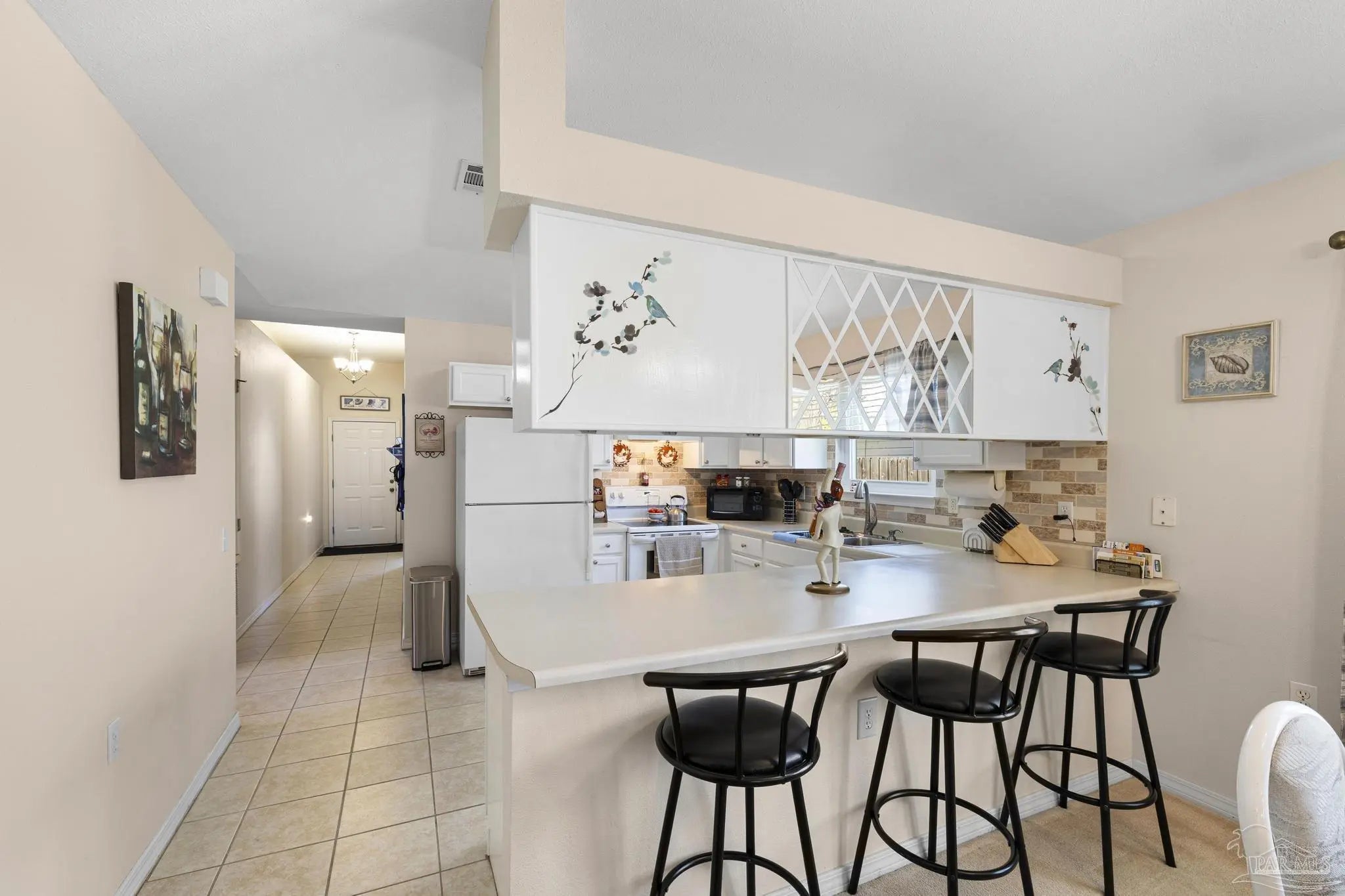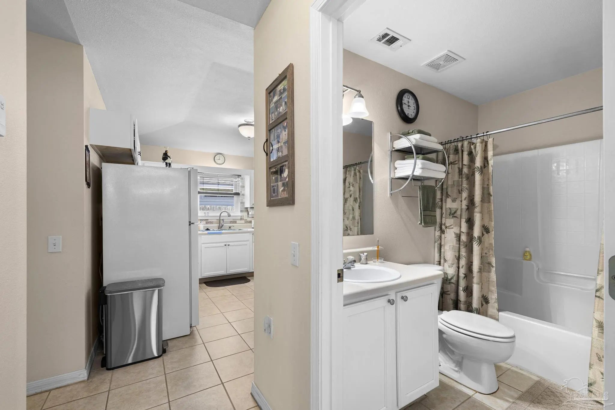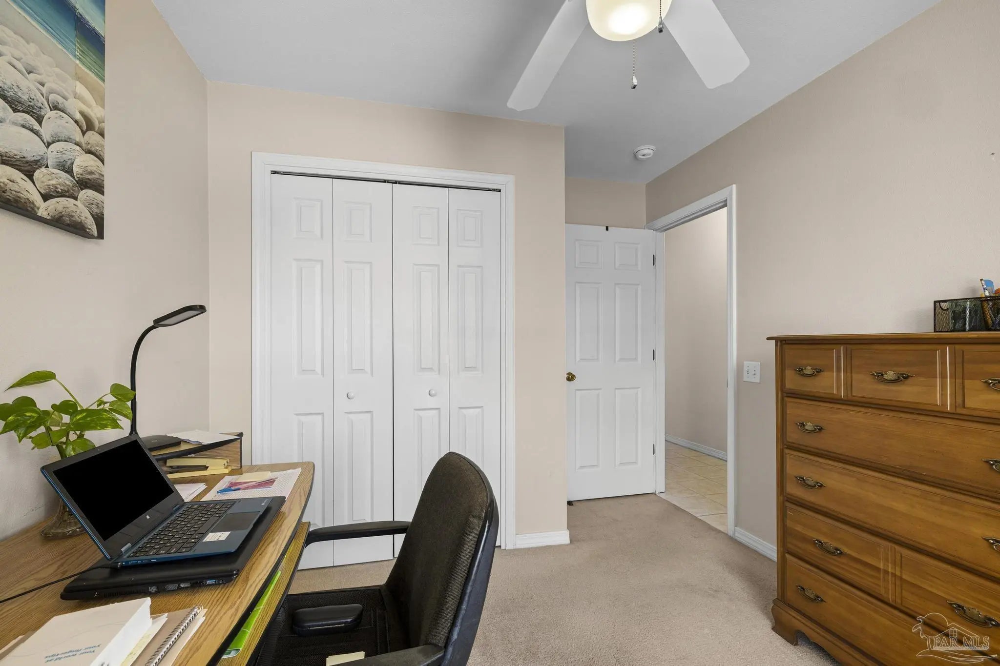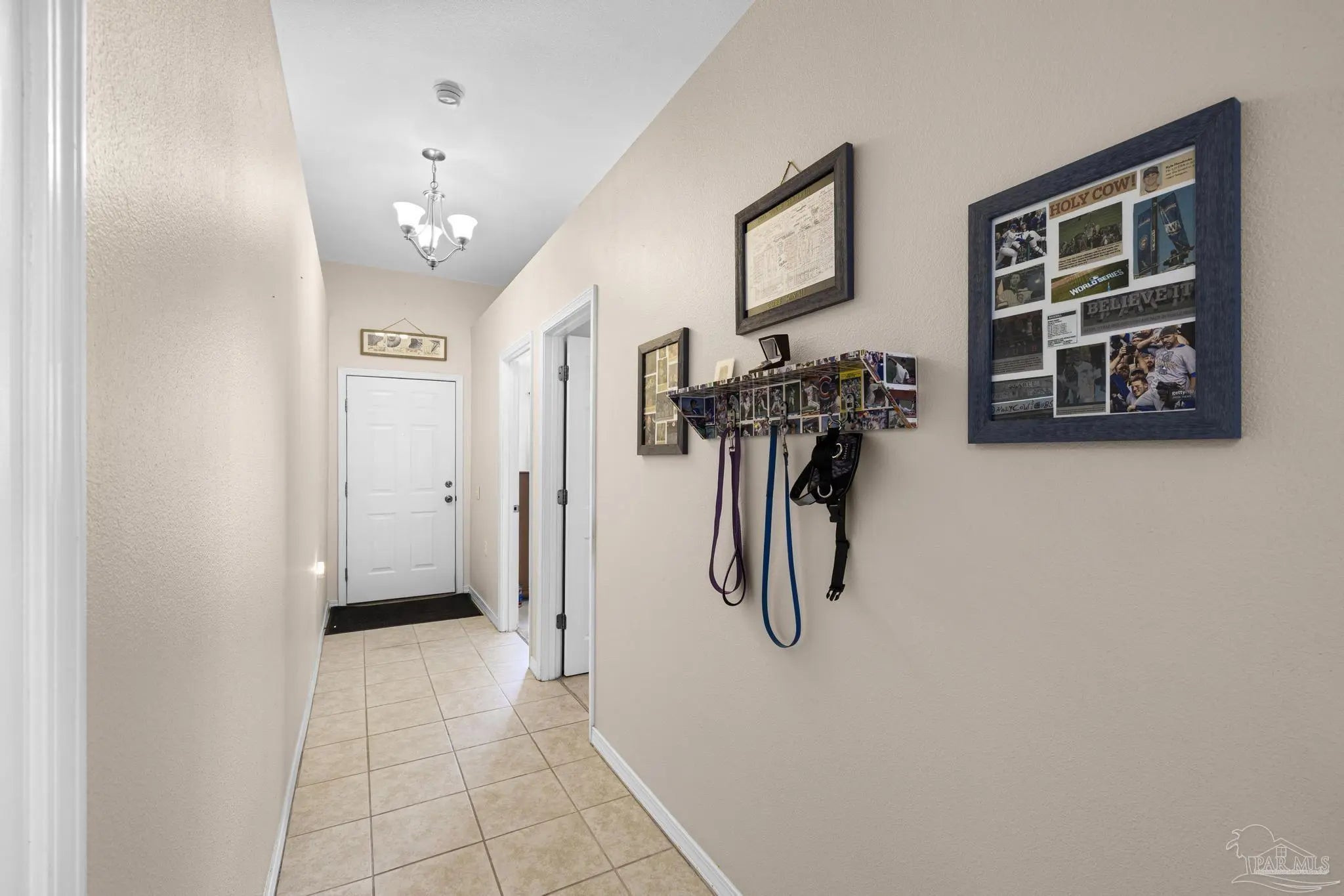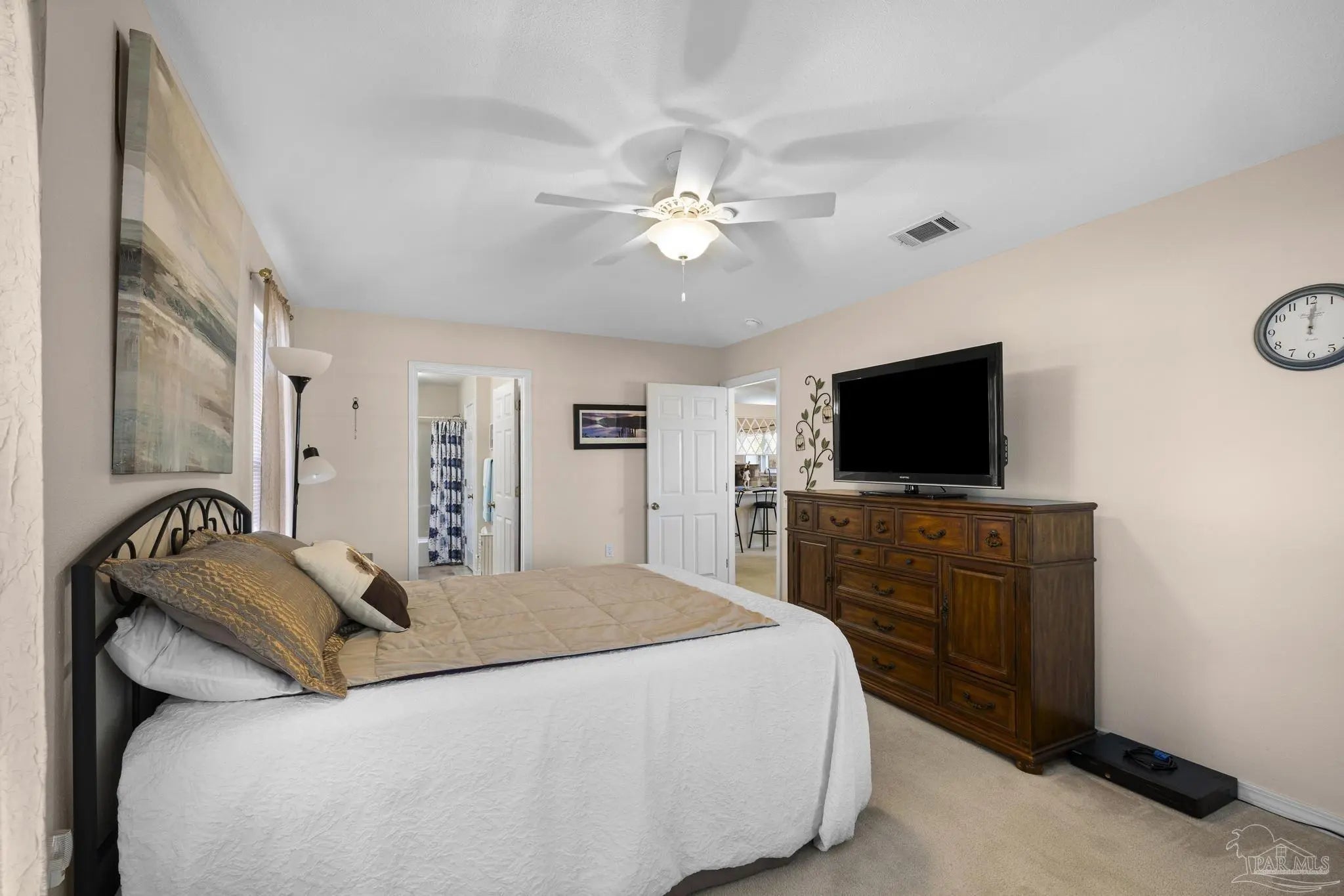 This meticulously maintained residence captures the essence of relaxed Florida living, offering a perfect balance of modern updates and cozy charm. From the moment you pull into the quiet cul-de-sac, you are greeted by an inviting exterior that leads into a thoughtfully designed 1,257-square-foot interior. The home boasts a bright and cheery floorplan that seamlessly connects the living, dining, and kitchen areas, making it an ideal space for both daily life and hosting. No popcorn ceilings here! Neutral colors provide a clean canvas for any decor style. The main suite overlooks the backyard and is complete with a spacious walk-in closet in the private ensuite bathroom. Two additional bedrooms in the front of the home offer versatility for dedicated home office, or a guest wing. The transition from indoor to outdoor living is effortless through the screened-in porch, where dual ceiling fans allow you to enjoy the coastal breeze in total comfort. This outdoor space features a manageable, low-maintenance backyard with sprinkler system on reclaimed water, providing just enough space for gardening or pets without the burden of extensive weekend yard work. Location is everything, and this property delivers by being situated in a neighborhood with sidewalks and underground utilities while remaining just a short drive from both Pensacola Beach and Navarre Beach. Residents of Shadow Lakes enjoy access to neighborhood amenities including a serene community lake and well-lit sidewalks for evening walks. Positioned within the top-tier Santa Rosa County School District and located near the new Soundside High School, local favorites like the Gulf Breeze Zoo, Tiger Point & Hidden Creek Golf Courses and various shopping hubs, this home represents a rare opportunity to own a piece of paradise in one of the Panhandle's most convenient locations. This home has gutters on the screen porch and impact windows on the west side of the home. Roof & fence 2021, Ac 2019, water heater 2016.