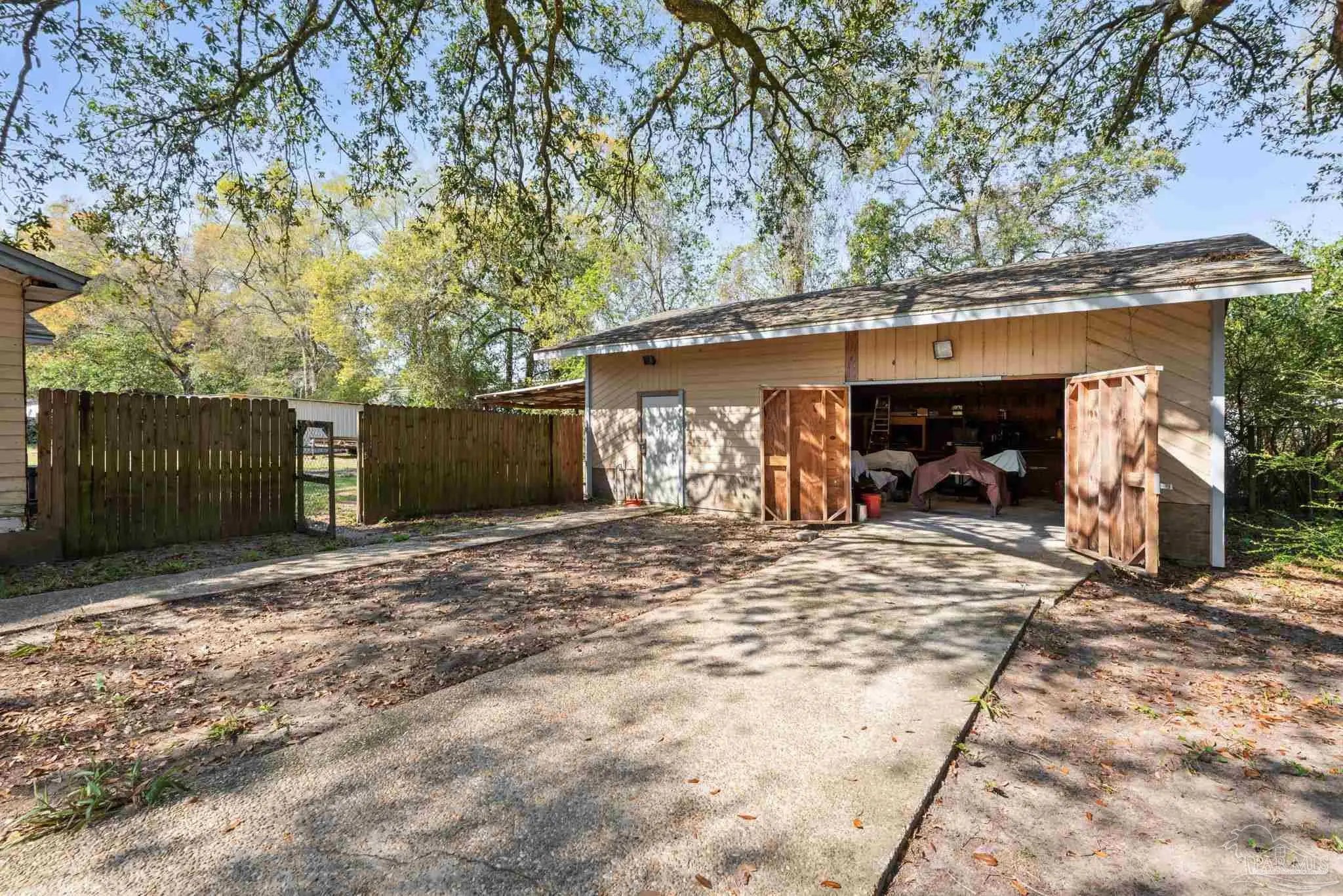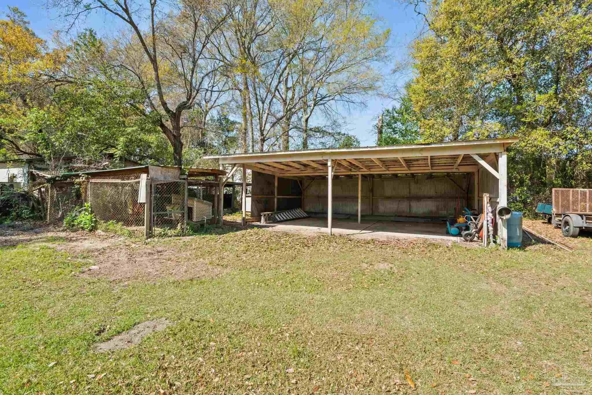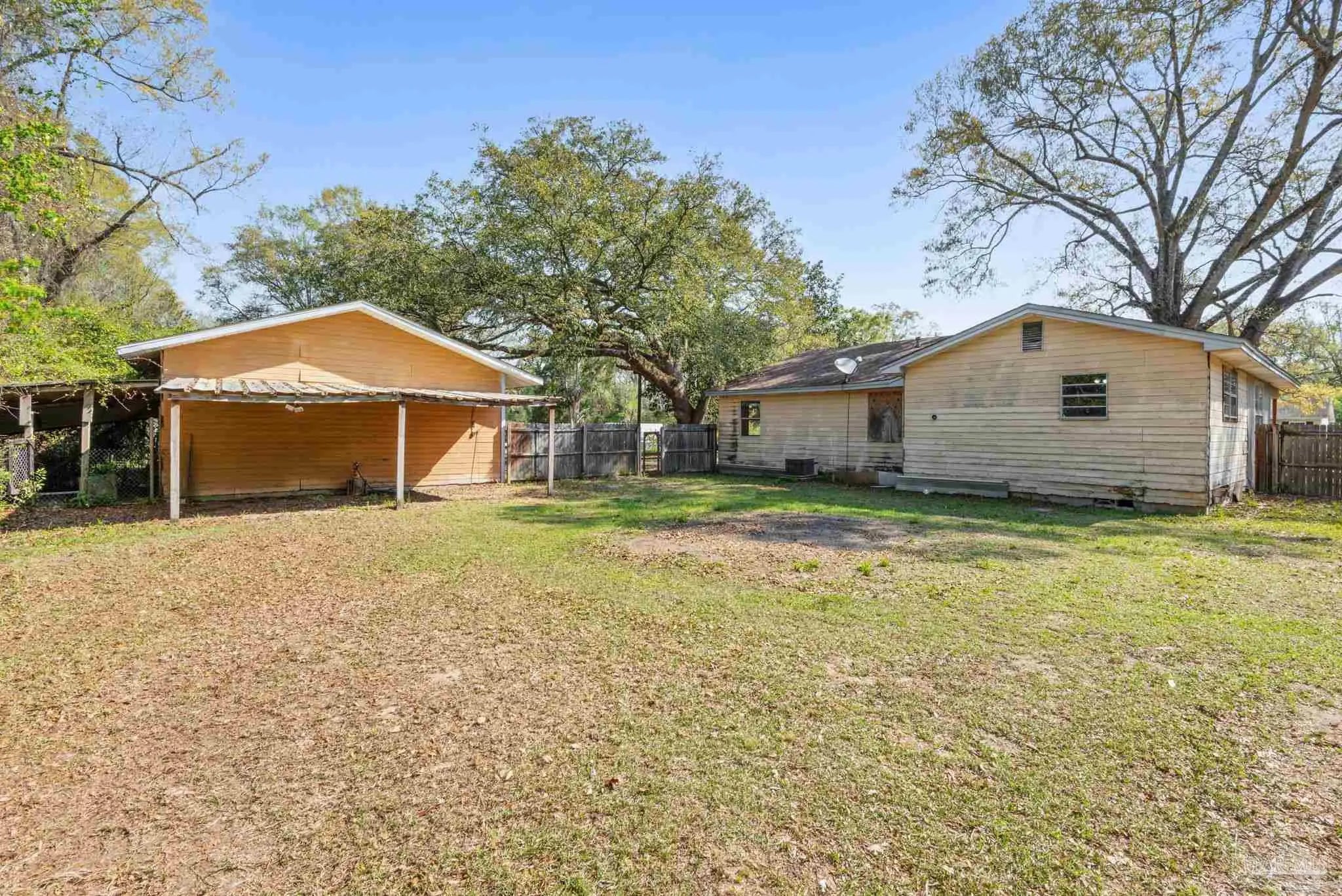 Where country charm meets urban convenience, this half acre property presents a prime opportunity for investors, renovators, or buyers looking to add value. Situated on a perfectly shaped 132' x 168' lot, the property has been cleaned and cleared-offering a true blank canvas for your next project. The existing home features a desirable split floor plan with two bedrooms and a full bath on one side, and a primary bedroom and bath on the other-providing a strong layout that can be reimagined to maximize value and functionality. The kitchen includes custom cabinetry built by the previous owner, offering a solid starting point for updates. What truly sets this property apart is its versatility. A large outbuilding provides ample storage and workspace, ideal for contractors, hobbyists, or those needing room for equipment. An additional covered area is perfect for boat, trailer, or equipment storage-making it especially attractive for buyers with recreational or trade related needs. The lot itself offers flexibility for expansion, outdoor living enhancements, or additional improvements, all while maintaining privacy and usability thanks to its clean rectangular shape. Located on a quiet street with quick access to a main road, the property offers both seclusion and convenience - approximately 15-20 minutes to key amenities, making it appealing for resale or rental potential. Whether you are looking for your next renovation project, rental investment, or a property with room to grow, this one offers strong upside in a desirable "country meets urban" setting.