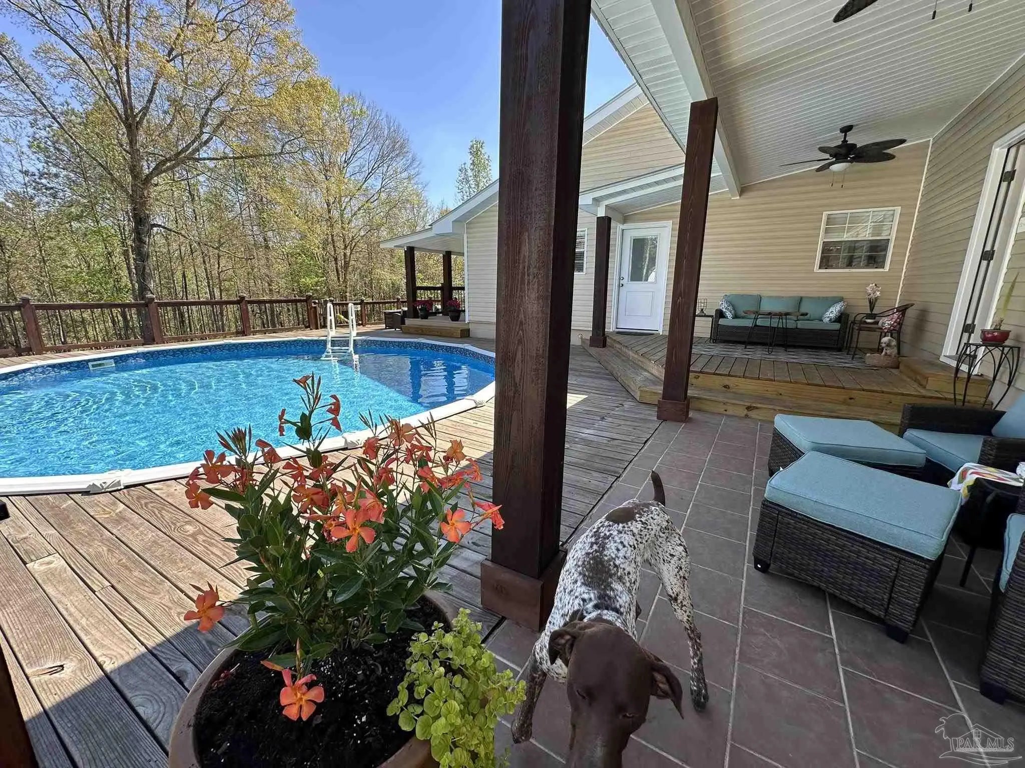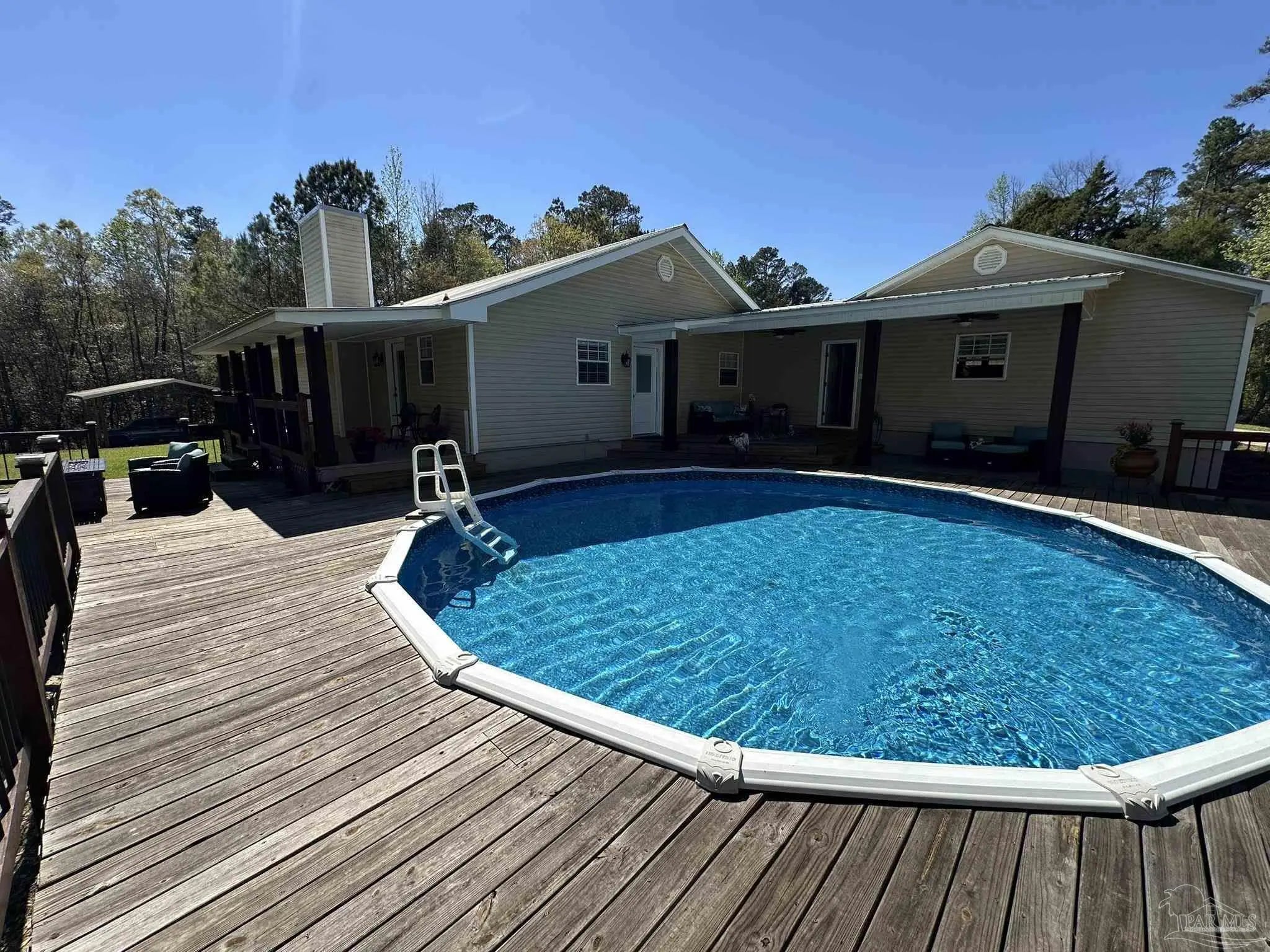 Beautifully maintained and full of character, this 3-bedroom, 2-bath home on 7.5+/- Acres and a Pond, offers a setting that immediately stands out. Eucalyptus hardwood floors bring warmth and richness throughout, while showers finished with tile and a resin tub add a clean, custom touch. The layout is both comfortable and inviting, designed for everyday living with a natural flow between spaces. Step outside and experience what truly sets this property apart—the expansive deck quickly becomes a favorite “room” of the home, offering a seamless extension of the living space. A sprawling, elevated deck surrounds the pool, creating a stunning space for relaxing, entertaining, grilling, or simply enjoying the view. Covered porches and multiple seating areas provide year-round enjoyment, whether starting your morning with coffee or winding down in the evening. The expansive lawn, mature trees, and private pond add depth and beauty to the landscape, offering space to explore and enjoy the outdoors. Additional features include a 2-car garage, a pole barn, and a shop, which provide flexibility for storage, hobbies, or equipment. The combination of open yard, wooded surroundings, and thoughtfully designed outdoor living spaces creates a property that is both functional and inviting.