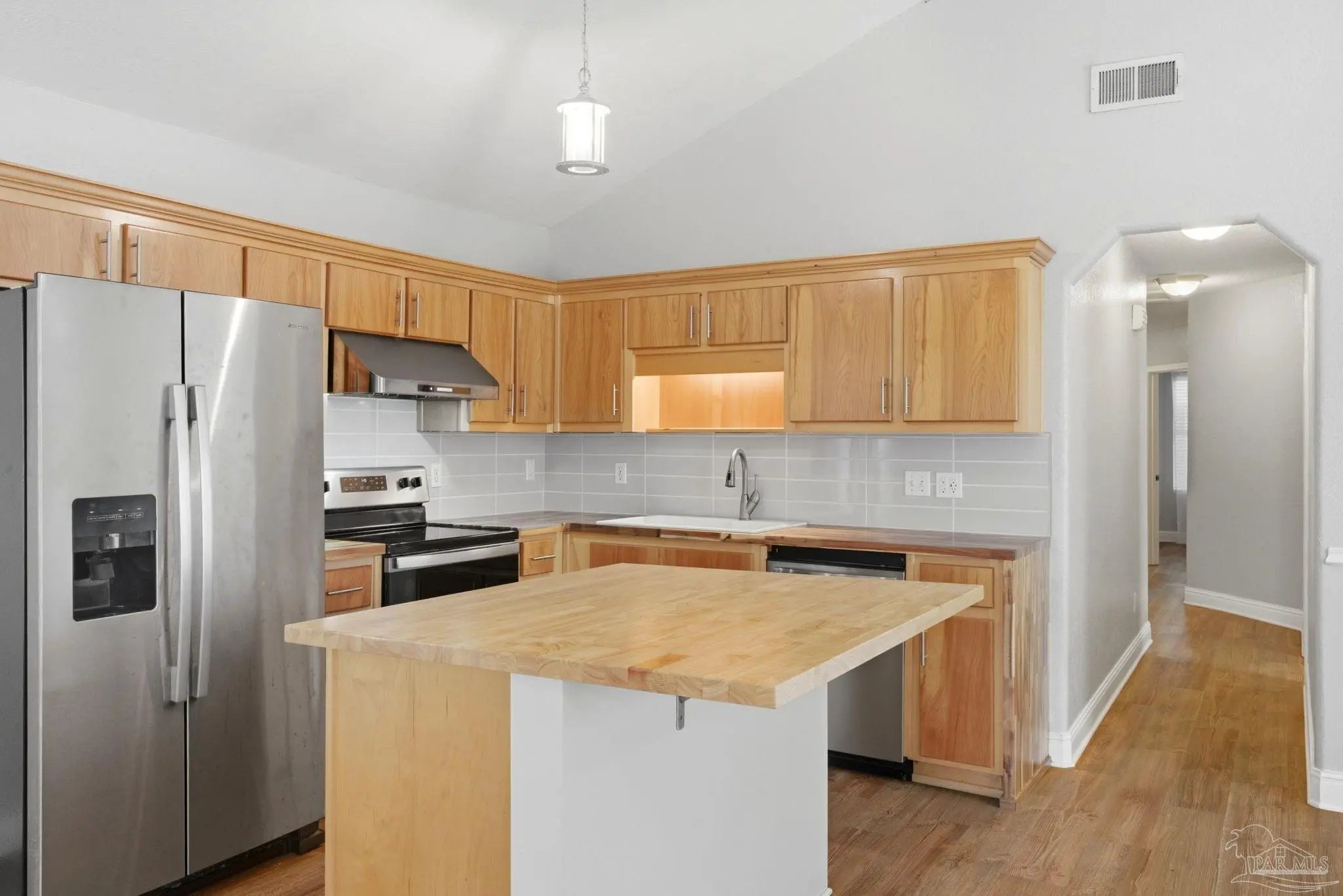 Charming downtown gem located at 514 W Strong St! This beautifully maintained 3-bedroom, 2-bath home offers 1,276 sq ft of inviting living space with a perfect blend of comfort and style. Enjoy relaxing mornings on the welcoming front porch before stepping inside to an open-concept living, kitchen, and dining area. The kitchen features warm wood cabinetry, stainless steel appliances, a spacious island with seating, and ample counter space for everyday living. The home boasts a functional layout with generously sized bedrooms and two full bathrooms, providing flexibility. Updated finishes, neutral tones, and abundant natural light create a bright and airy feel throughout. Outside, the low-maintenance yard offers a blank canvas for your personal touch, while the driveway provides convenient off-street parking. Located in the heart of downtown, just minutes from local dining, shopping, and entertainment. Whether you're a first-time buyer, downsizing, or looking for an investment opportunity, this move-in-ready home checks all the boxes!