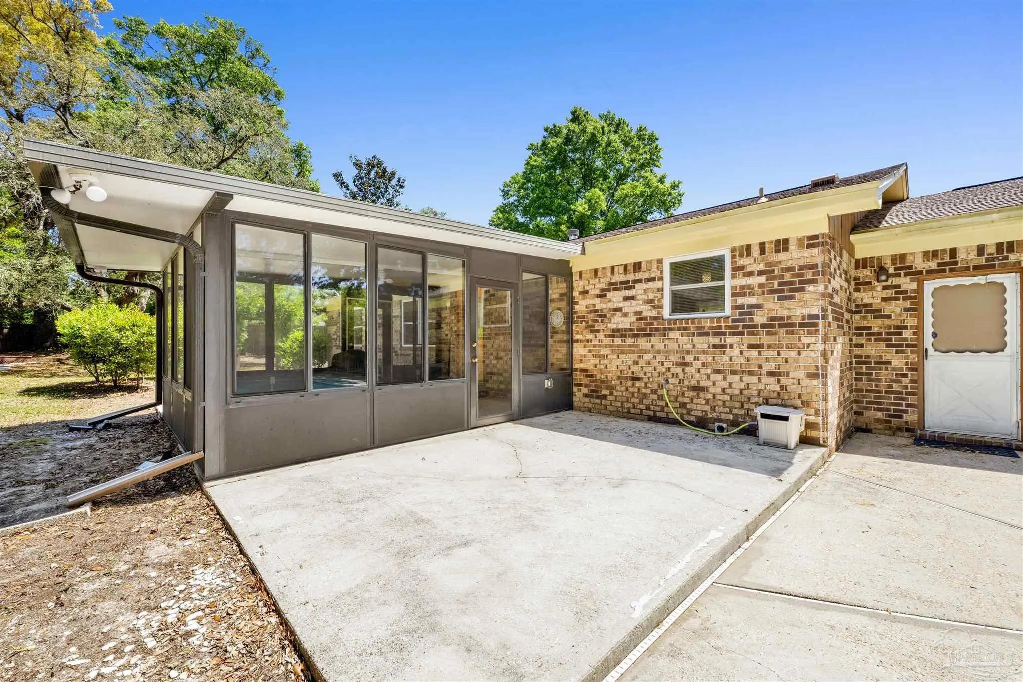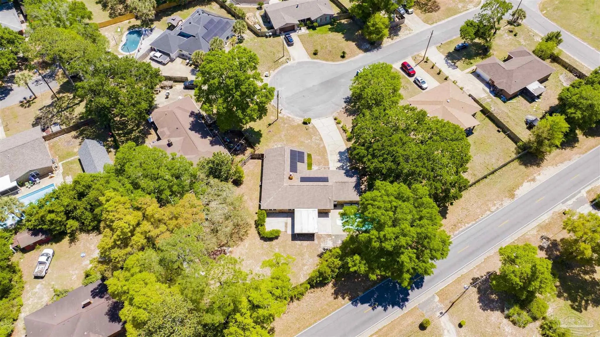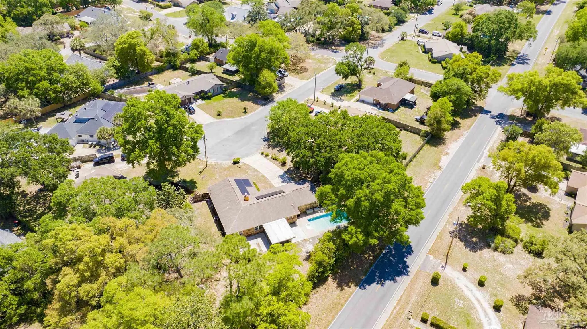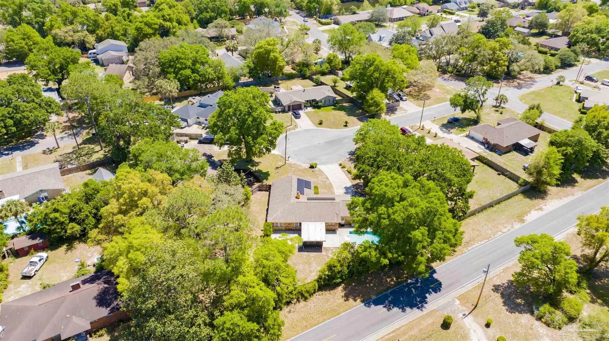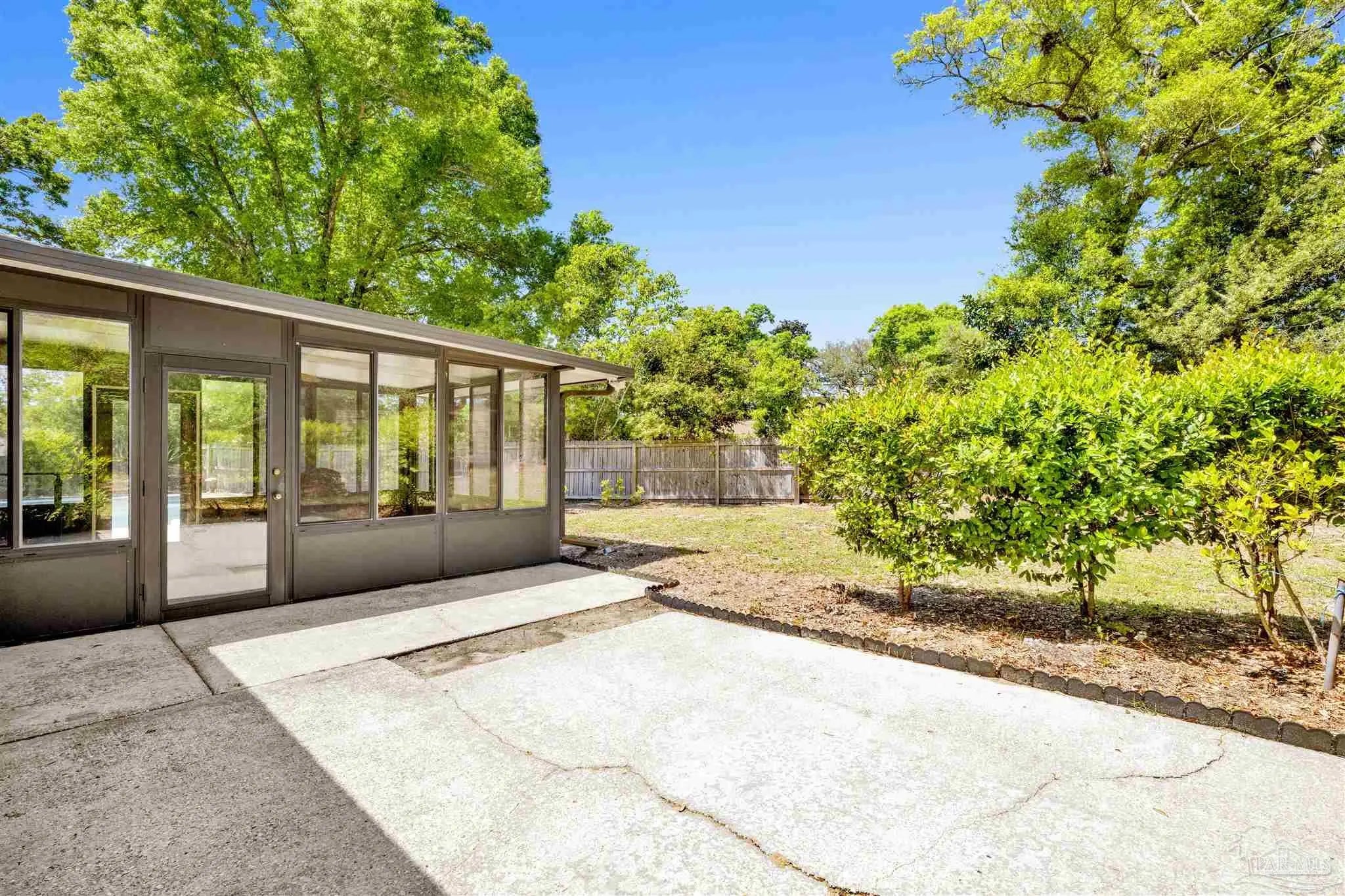 YOUR DREAM HAS ARRIVED JUST IN TIME FOR SRING! Come see this ALL BRICK home with SALT WATER POOL situated on .38 acre lot with EXTRA LARGE GARAGE tucked away on low traffic Cul De Sac! As you walk in you will be be greeted by a home featuring two living areas one with bricked fireplace, LARGE EAT-IN KITCHEN along with a separate dining room/office and a 12x16 sunroom OVERLOOKING THE POOL! Sunroom not currently heated and cooled (nor included in the property square footage) but has electric outlets and ceiling fan. The primary bedroom is complete with double closets and full bathroom with tub/shower and down the hall you will find the two additional bedrooms and guest bathroom with newer (2024) JETTED WALK IN TUB/SHOWER and toilet with BIDET. This all electric home has SOLAR PANELS and the lawn with IRRIGATION ON A WELL for your added convenience and savings. The large garage is a dream boasting of tons of overhead storage and has a 5'9"x8 extension with workbench! SEVERAL NEWER FEATURES that will save you $$$ are.... IMPACT- RESISTANT WINDOWS (2023), roof replaced (2018) SOLAR PANELS (2022), HVAC (2023) and hot water heater (2018), new salt cell (2026) & Pool pump (2022). Come see and imagine your special touches to this home is an established NO HOA community where you can just ENJOY LIFE with your own private outdoor oasis with potted lime tree, Crepe Myrtles, Japanese Maple trees, Palm trees with large storage building and a relaxing SALT WATER POOL with NO NEIGHBORS BEHIND YOU and with the back yard FULLY PRIVACY FENCED! You will love the convenient location to two beautiful beaches, NAS, Navy Hospital and both town and downtown for your shopping and entertainment. Come and make this your new place to CALL HOME!