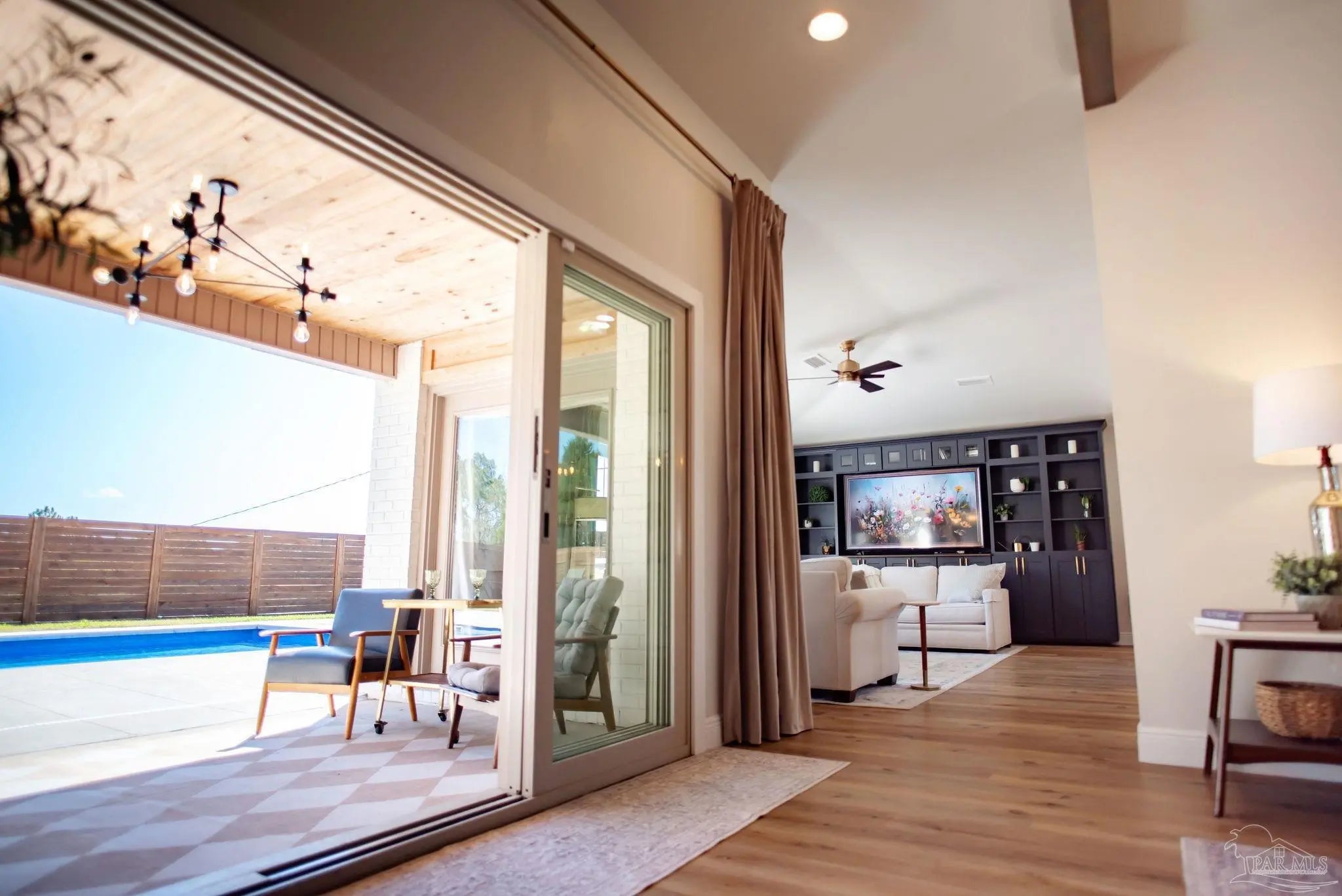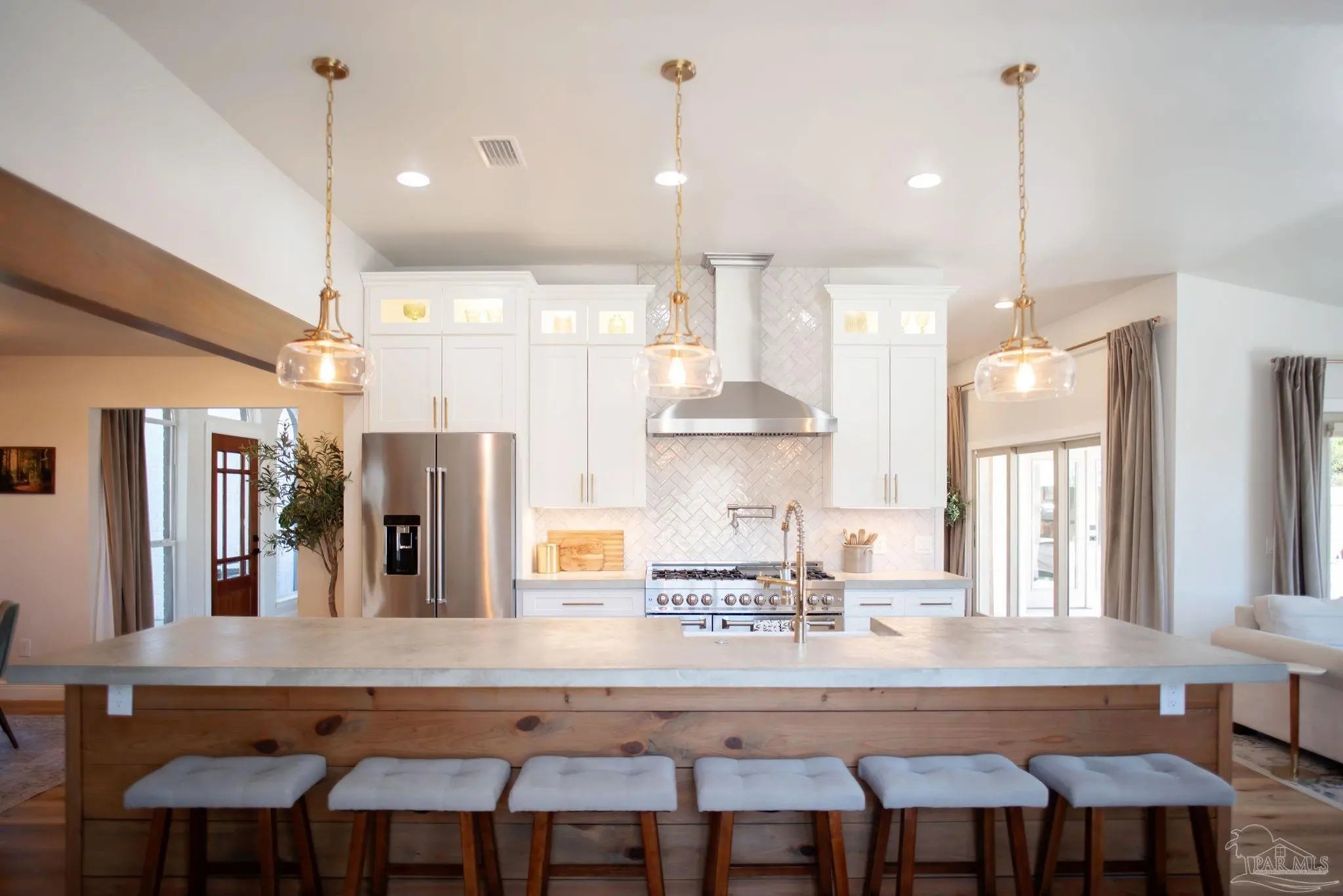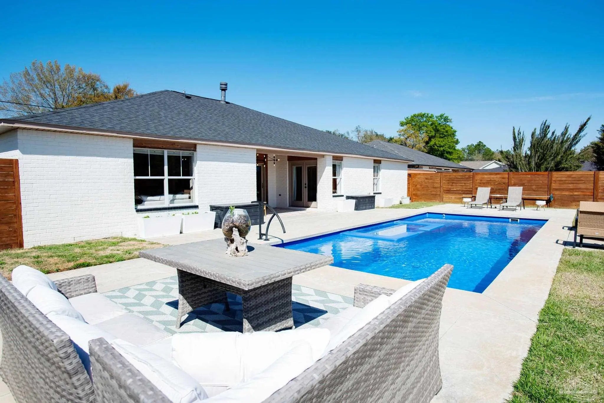 ***OPEN HOUSE Saturday, 4/4 from 2:00-4:30*** Welcome to the home you have been searching for, an extraordinary property where every detail has been carefully considered and beautifully executed. From the moment you arrive, you’ll notice the pride of ownership and thoughtful design throughout. Step inside through the custom front door and experience soaring ceilings paired with a modern open-concept layout that instantly feels both elegant and inviting. The front sitting room showcases striking wood beam ceiling accents and a custom gas fireplace, creating a warm and comfortable space to relax. The gourmet kitchen is a chef’s dream, featuring premium ZLine and KitchenAid appliances, custom cabinetry, and high-end countertops. With an adjoining dining area, eat-in kitchen space, and a custom pantry, this space is perfectly designed for both everyday living and entertaining. The spacious living room offers plenty of room to gather, making it ideal for hosting family and friends. Just beyond, a covered porch with wood ceiling details opens to your private outdoor retreat. The backyard is centered around a custom heated pool and spa, creating the perfect setting for relaxation or entertaining year-round. The master suite provides a peaceful escape, complete with private access from the backyard. The en-suite bathroom features a separate shower and soaking tub, along with a thoughtfully designed custom closet with wooden shelving. In addition to the primary suite, the home includes three more bedrooms and two full bathrooms, offering comfort and flexibility for family or guests. Conveniently located just minutes from the interstate and a short drive to beautiful beaches, this home combines luxury with accessibility. With over $265,000 in upgrades, this property is truly one of a kind. Don’t miss the chance to make it your own.