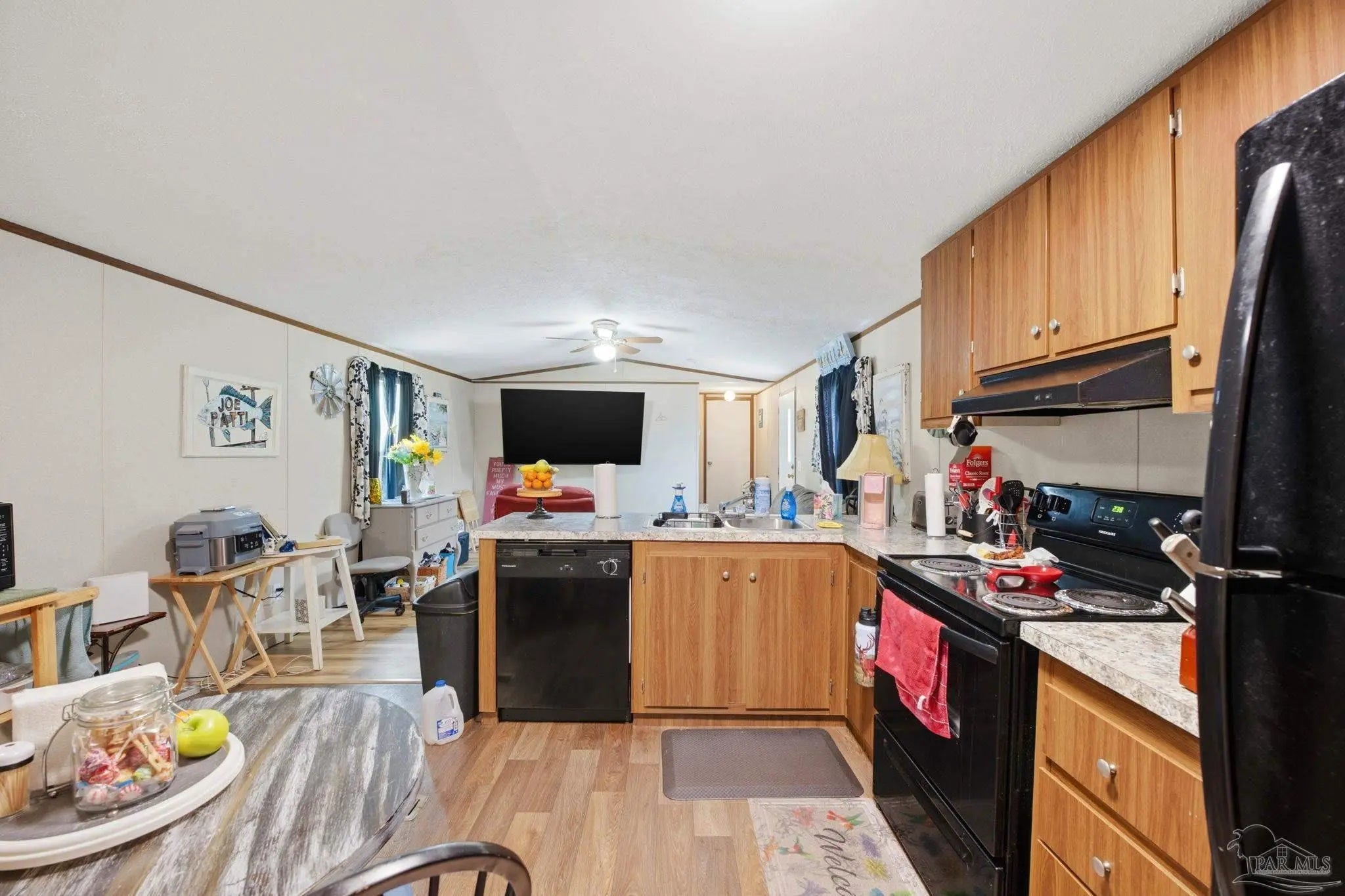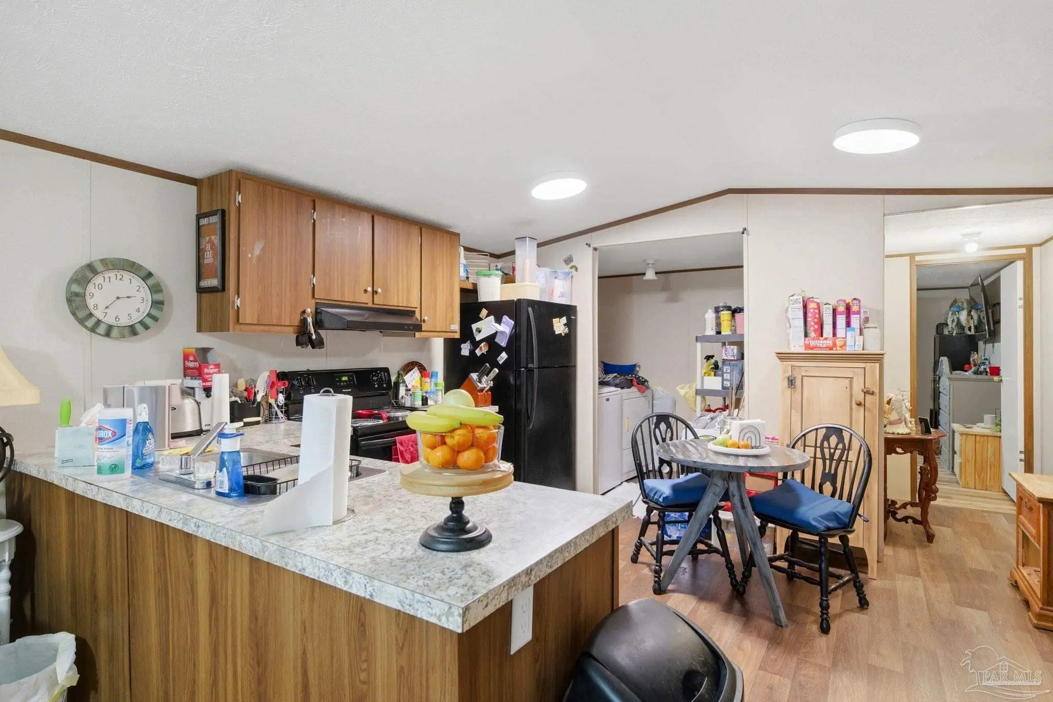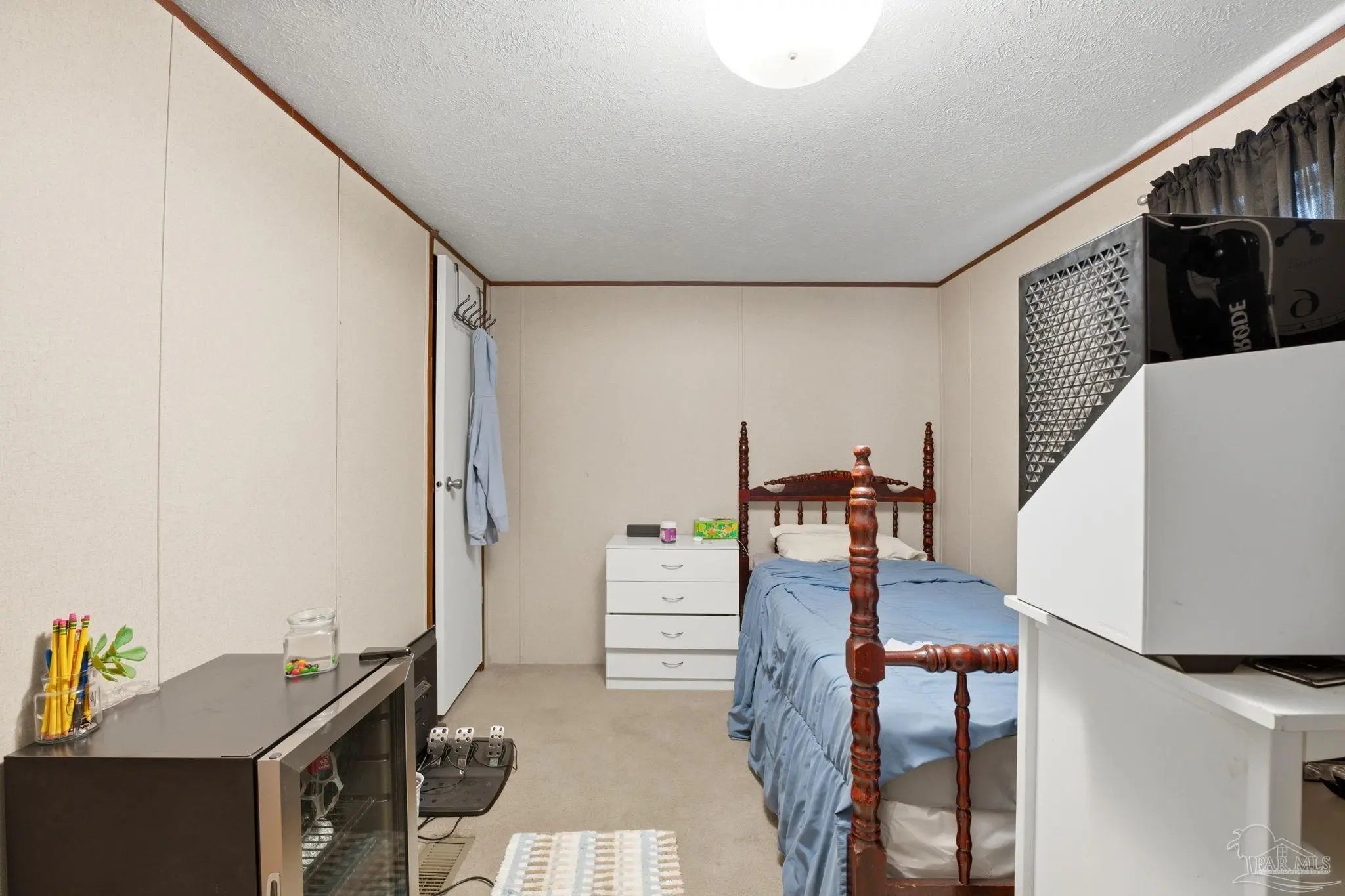 Welcome to this charming 2-bedroom, 2-bathroom home situated on a spacious 0.553-acre lot in Navarre. This residence features a thoughtfully designed split floor plan that optimizes space and functionality, making it an ideal choice for a variety of lifestyles. As you enter, you’ll immediately notice the elegant wood-look LVP flooring that flows seamlessly throughout the main living areas, offering both durability and a modern aesthetic. The open-concept layout encompasses the kitchen, dining, and living areas, creating a cohesive space perfect for entertaining or everyday living. The vaulted ceilings enhance the sense of space, allowing for abundant natural light to fill the home. The kitchen is well-appointed and features a generous layout, complemented by a large laundry area that also serves as a walk-in pantry, ensuring ample storage for all your culinary needs. The guest bedroom is comfortably carpeted, providing a warm and inviting space for family or guests. Step outside to the expansive backyard, which boasts an open deck area—ideal for outdoor gatherings or enjoying quiet moments in your private retreat. With no rear neighbors, you can relish in the tranquility and privacy this property offers. The shed in the back provides additional storage, perfect for garden tools or outdoor equipment. This home combines comfort and functionality with easy access to local amenities, parks, and the beautiful Navarre Beach. Don’t miss the opportunity to make this delightful property your own!
