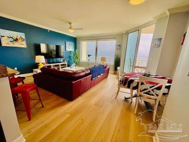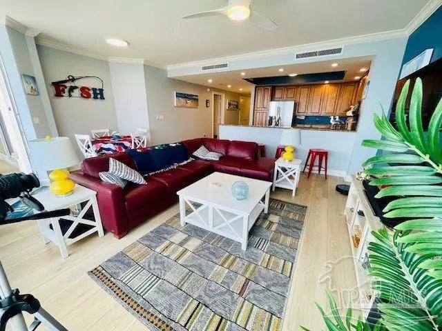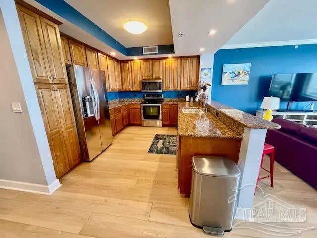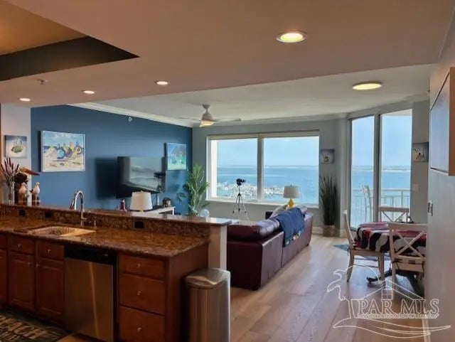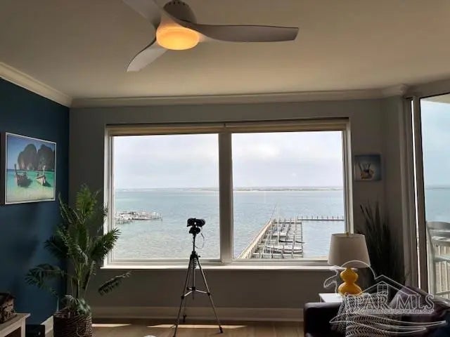 Coastal living at its best! Glance out to see panoramic views of the intercoastal waterway, Gulf Islands National Seashore & the Gulf of America! This 7th floor condo is the perfect location in Galia with breathtaking views and natural light filling the space. Enjoy waterfront living in this 2 BR/2 BA condo with 1488 square feet, the perfect size for a primary residence or second home. Featuring a large kitchen, complete with amazing views, cabinets to the ceiling, soft-close drawers, stainless steel appliances, and granite countertops with a long peninsula for cocktails or dining at the bar. The open living/dining area with picture windows leads to your private balcony–enjoy watching dolphins, pelicans, herons and the amazing Blue Angels! A second set of floor-to-ceiling glass sliders leads to the spacious primary suite with a large walk-in closet and ample room for a sitting or work area. The luxurious primary bath features dual vanities, soaking tub and oversized walk-in shower. Beautiful high-end woodgrain luxury vinyl plank throughout w/ large ceramic tile in bathrooms, complimentary in color. Sold furnished. Storage unit and reserved parking are included. New HVAC in 2021. Entire building has back-up generator that extends to units. Well-built of concrete and steel, Galia offers world class amenities like a water view pool, hot tub, dog-walking area, waterfront clubhouse with fitness center and covered lounging veranda. For fishing & boating enthusiasts, you’re just minutes to the pass leading to the Gulf. On-site marina provides both wet and dry slips available for purchase or lease. Close to shopping, dining & entertainment, a few minutes to NAS, a quick drive to Perdido Key beaches, and 20 min. to Downtown Pensacola. This truly one-of-a-kind property will have you living the good life in paradise!