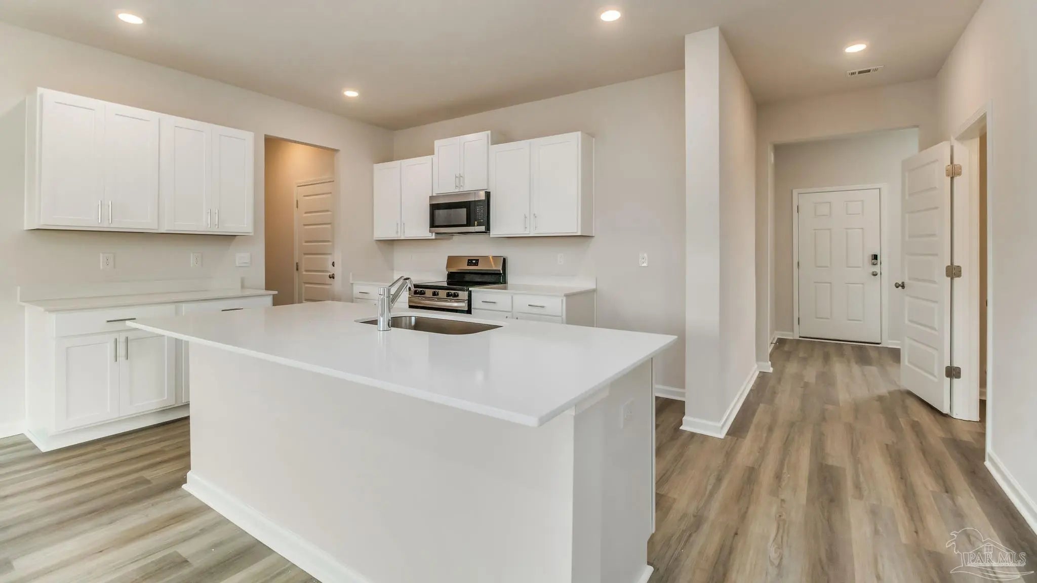 NOW SELLING! Welcome to Captains Cove in Navarre, FL. The stunning Belfort floor plan is a well-designed 2 story model. Bedroom 1 on the first floor offers a spacious walk-in closet, & adjoining bath has a double vanity, large shower, linen and water closet. Stunning Quartz countertops in kitchen and baths, all stainless-steel appliances, gorgeous EVP wood look flooring & plush carpet in the bedrooms. The Smart Home Connect System includes several Smart Home convenient devices. Upscale home with great curb appeal. Community Pickleball Court is an incredible amenity. Must see!