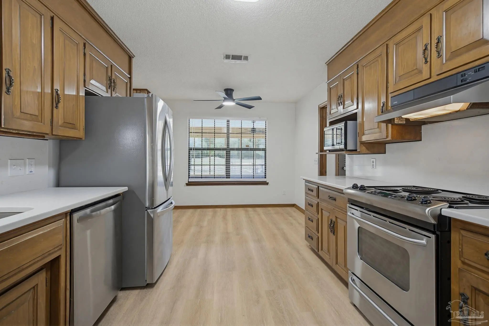 Wonderful property situated on over 2 acres in the heart of Milton, this property offers the perfect blend of space, privacy, and opportunity. No HOA! Whether you're looking for room to spread out, store your boat or RV, or build a shop, this acreage property delivers flexibility! This move-in ready home offers approximately 1,800 square feet of heated and cooled living space and features a brand-new roof and water heater, providing peace of mind for years to come. Inside, you’ll find new luxury vinyl plank flooring and fresh interior paint throughout. The layout is both functional and inviting, with a sitting room and formal dining area upon entry, leading into a spacious living room highlighted by a large brick wood-burning fireplace. The layout offers three bedrooms and two full bathrooms, providing comfortable living for family or guests. The kitchen features updated countertops and connects to a versatile bonus room that can be used as a home office, playroom, or additional living space. This area also provides access to the attached two-car garage and a screened-in porch—perfect for enjoying the peaceful surroundings. Outside, the possibilities are endless. With over 2 acres, there is ample room to add a pool, workshop, additional structures, or simply enjoy the privacy and quiet of your own land. There is an irrigation well and sprinkler system in the front and back yard. Properties with this much space and potential are hard to find—don’t miss your opportunity to make it your own.