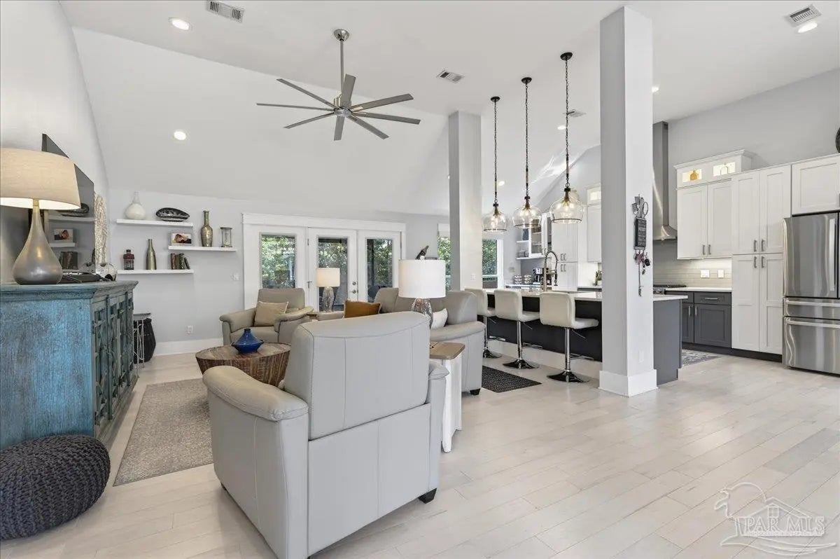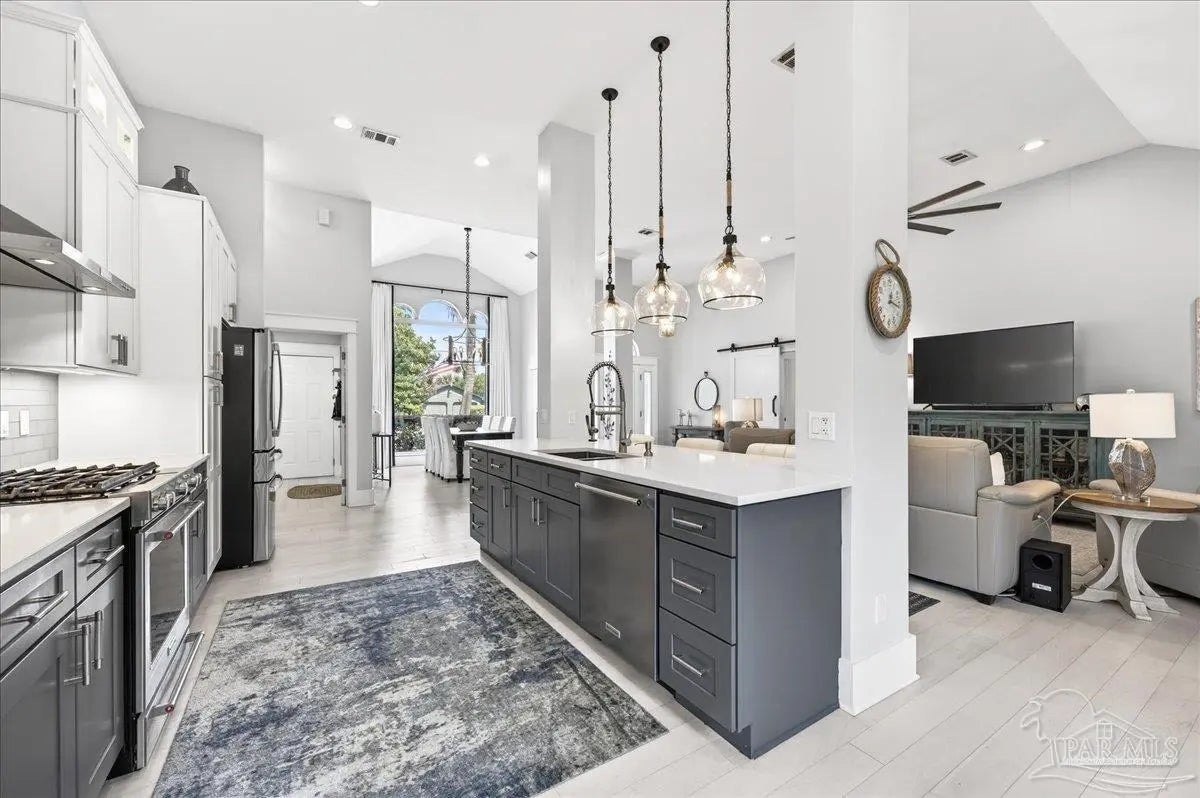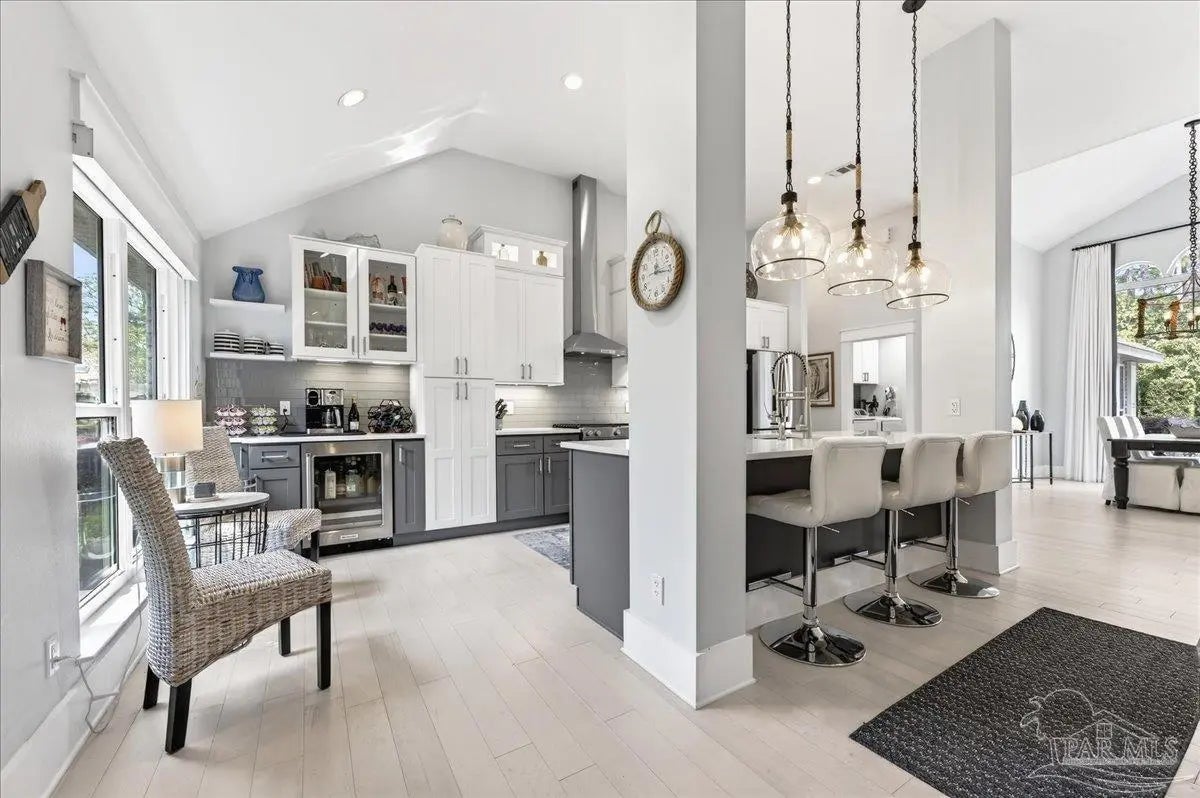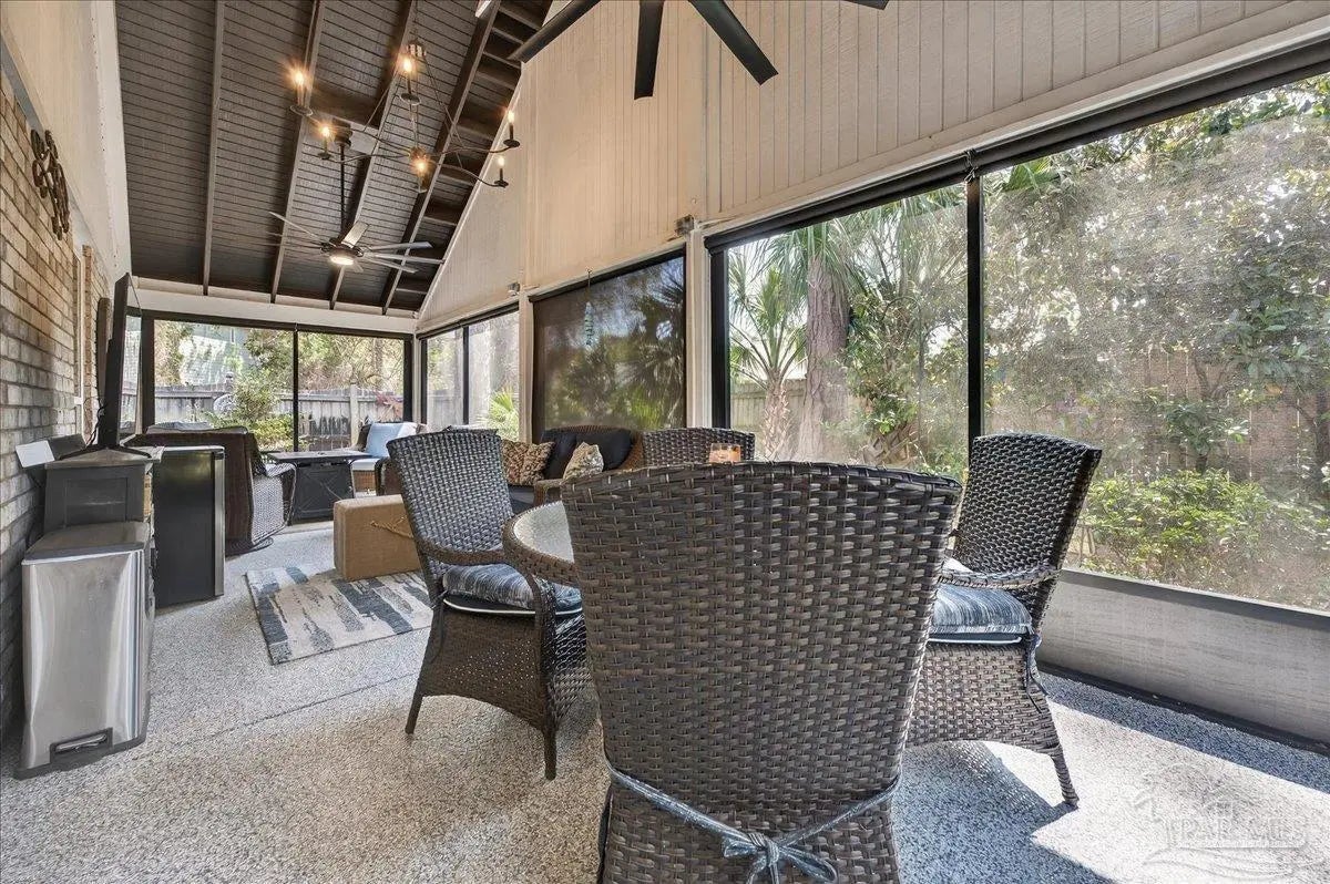 Welcome to this beautifully updated, completely renovated coastal home! Situated in the neighborhood of Bay Bridge Landing and steps away from the community pool and dock, this home is move-in ready (see the full list of updates in MLS docs). The property includes a whole-home gas generator, hurricane windows throughout, and the roof, HVAC, and tankless water heater were all updated and replaced in 2019. The property boasts meticulous curb appeal with Zoysia sod, mature landscaping, a well for irrigation, and a Ninja coated driveway. Inside, you’ll find a bright and airy living space with high ceilings and engineered hardwood flooring throughout. The dining room is a standout feature, highlighted by a stunning floor-to-ceiling picture window and custom drapery. The kitchen is stylish and functional, featuring stainless steel KitchenAid appliances, quartz countertops, a large island, a gas range, and coastal-inspired two-tone cabinetry. Just off the main living area is a spacious screened-in porch (28‘10“ x 10‘4“) with vaulted wood ceilings, solar screens, designer lighting, and Ninja coated flooring - creating the perfect outdoor living space! The split primary suite offers high ceilings and additional storage with hallway closets leading to the bedroom. The en-suite bathroom includes a large double vanity, an oversized tiled walk-in shower, a private water closet, and a walk-in closet with custom built-ins. Two additional bedrooms are tucked away on the opposite side of the home and share a full, updated bathroom with a tub/shower combo. The home also features a 2 car garage with hurricane grade doors and an extended driveway for extra parking on the side of the house. Located directly across from Seascape Golf Course, this home is centrally located in Miramar Beach and offers a rare combination of quality updates, thoughtful design, and effortless livability, making it truly ready for its next owner to enjoy from day one!