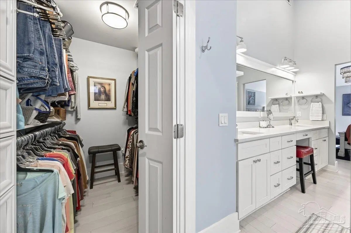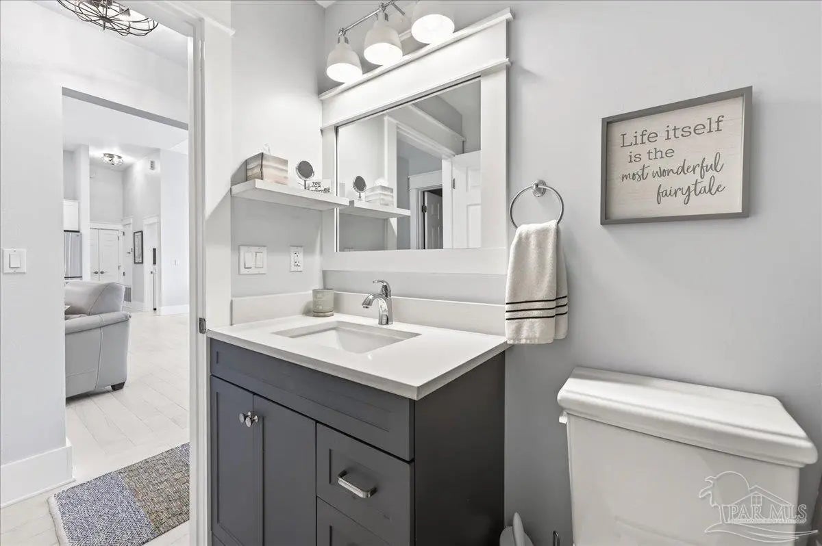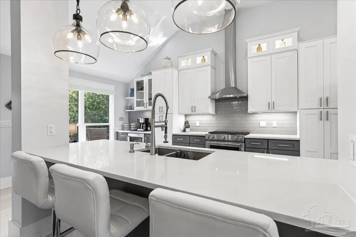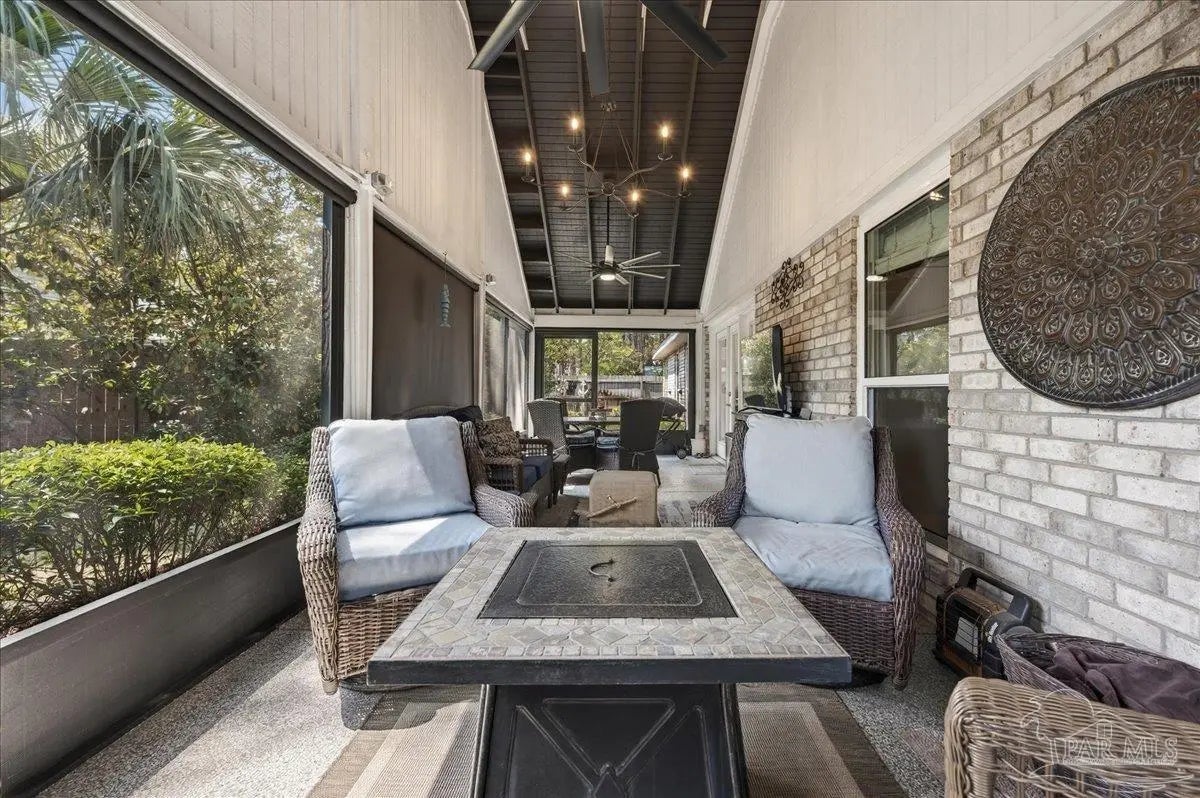 Welcome to this beautifully updated, completely renovated coastal home! Situated in the neighborhood of Bay Bridge Landing and steps away from the community pool and dock, this home is move-in ready (see the full list of updates in MLS docs). The property includes a whole-home gas generator, hurricane windows throughout, and the roof, HVAC, and tankless water heater were all updated and replaced in 2019. The property boasts meticulous curb appeal with Zoysia sod, mature landscaping, a well for irrigation, and a Ninja coated driveway. Inside, you’ll find a bright and airy living space with high ceilings and engineered hardwood flooring throughout. The dining room is a standout feature, highlighted by a stunning floor-to-ceiling picture window and custom drapery. The kitchen is stylish and functional, featuring stainless steel KitchenAid appliances, quartz countertops, a large island, a gas range, and coastal-inspired two-tone cabinetry. Just off the main living area is a spacious screened-in porch (28‘10“ x 10‘4“) with vaulted wood ceilings, solar screens, designer lighting, and Ninja coated flooring - creating the perfect outdoor living space! The split primary suite offers high ceilings and additional storage with hallway closets leading to the bedroom. The en-suite bathroom includes a large double vanity, an oversized tiled walk-in shower, a private water closet, and a walk-in closet with custom built-ins. Two additional bedrooms are tucked away on the opposite side of the home and share a full, updated bathroom with a tub/shower combo. The home also features a 2 car garage with hurricane grade doors and an extended driveway for extra parking on the side of the house. Located directly across from Seascape Golf Course, this home is centrally located in Miramar Beach and offers a rare combination of quality updates, thoughtful design, and effortless livability, making it truly ready for its next owner to enjoy from day one!