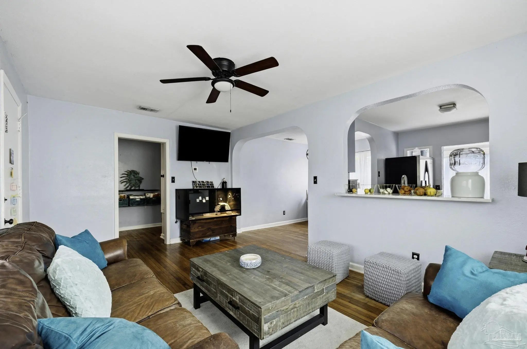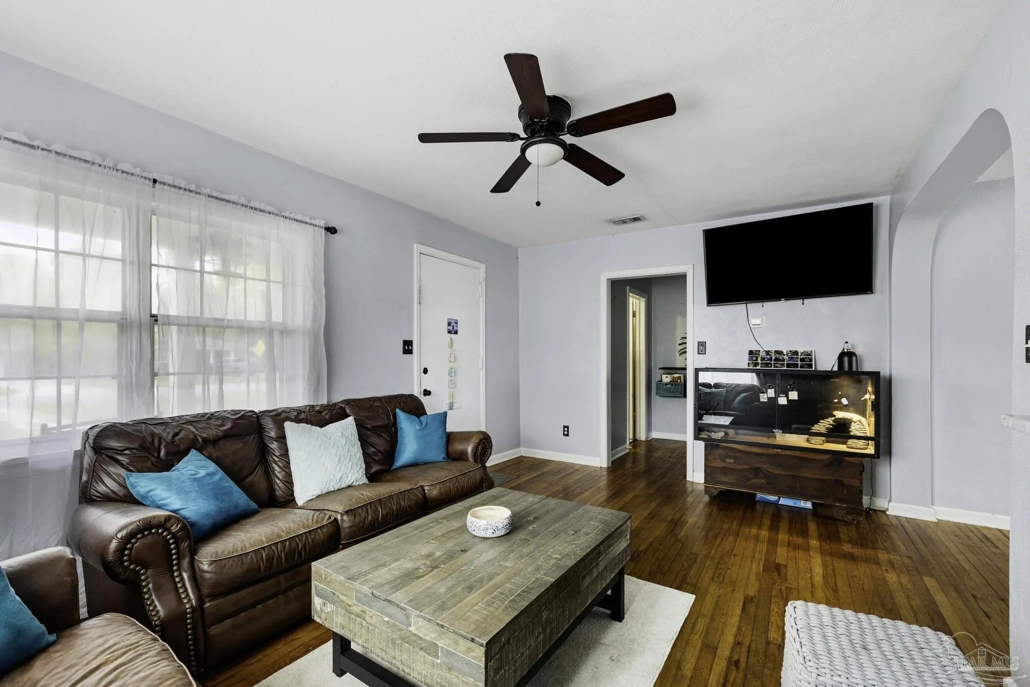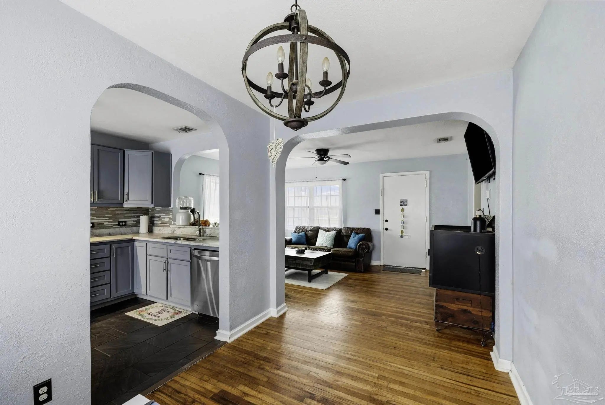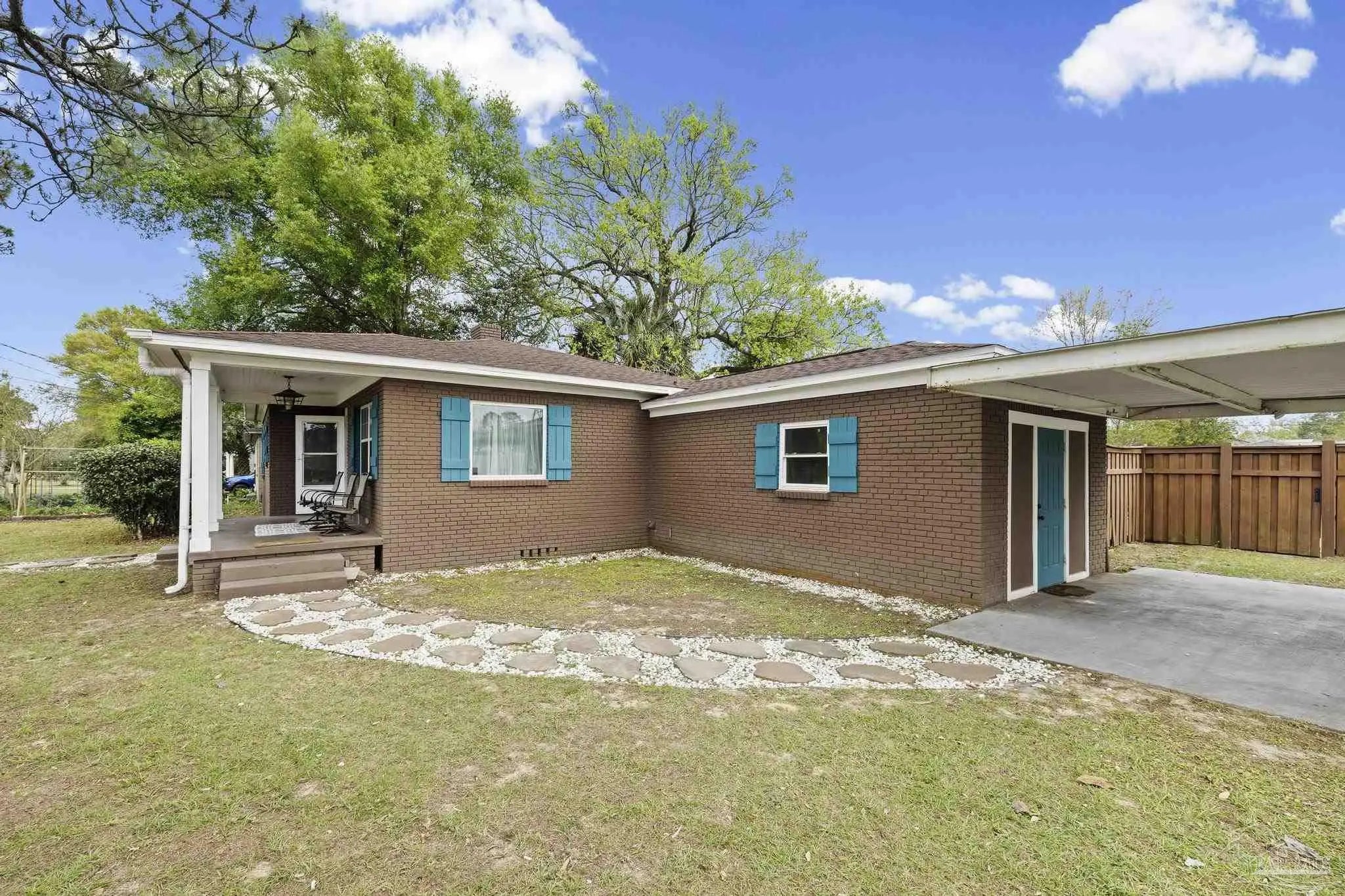 Welcome to this well-maintained brick home in Pensacola, offering the perfect blend of charm, updates, and affordability, ideal for a first-time home buyer or savvy investor. With 4 bedrooms, 1 bathroom, and 1,270 square feet, this home sits on a spacious 0.25-acre corner lot with no rent restrictions, providing flexibility for long-term living or rental income potential. Inside, you’ll find an open living and dining area filled with natural light, enhanced by stylish updated fixtures and architectural arches that define the space while maintaining an airy feel. Wood flooring runs through the main living areas and most bedrooms, while tile flooring adds durability in the kitchen and bathroom. The remodeled kitchen features granite countertops, stainless steel appliances, and a gas stove, making it both functional and attractive. The updated bathroom includes a modern marble-look tile shower for a clean, contemporary finish. The fourth bedroom offers flexibility. While it doesn't have a closet, it does include a window, making it ideal as a large bonus room, office, or flex space to fit your needs. Major systems have been thoughtfully updated for peace of mind, including a roof less than one year old, HVAC only 4 years old, and water heater just 6 years old. Outside you can enjoy a large, fully fenced backyard, perfect for pets, entertaining, or future additions. A covered front porch adds curb appeal and a welcoming touch, while the carport provides convenient parking. Additional highlights include ample closet space and an indoor laundry area. If you’re searching for an affordable home in Pensacola with modern updates, outdoor space, and investment potential, this one checks all the boxes.