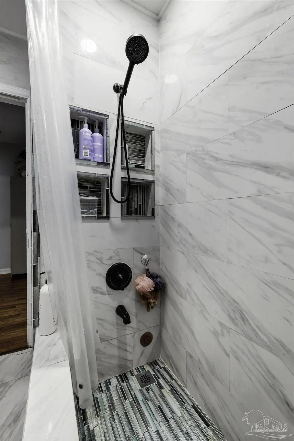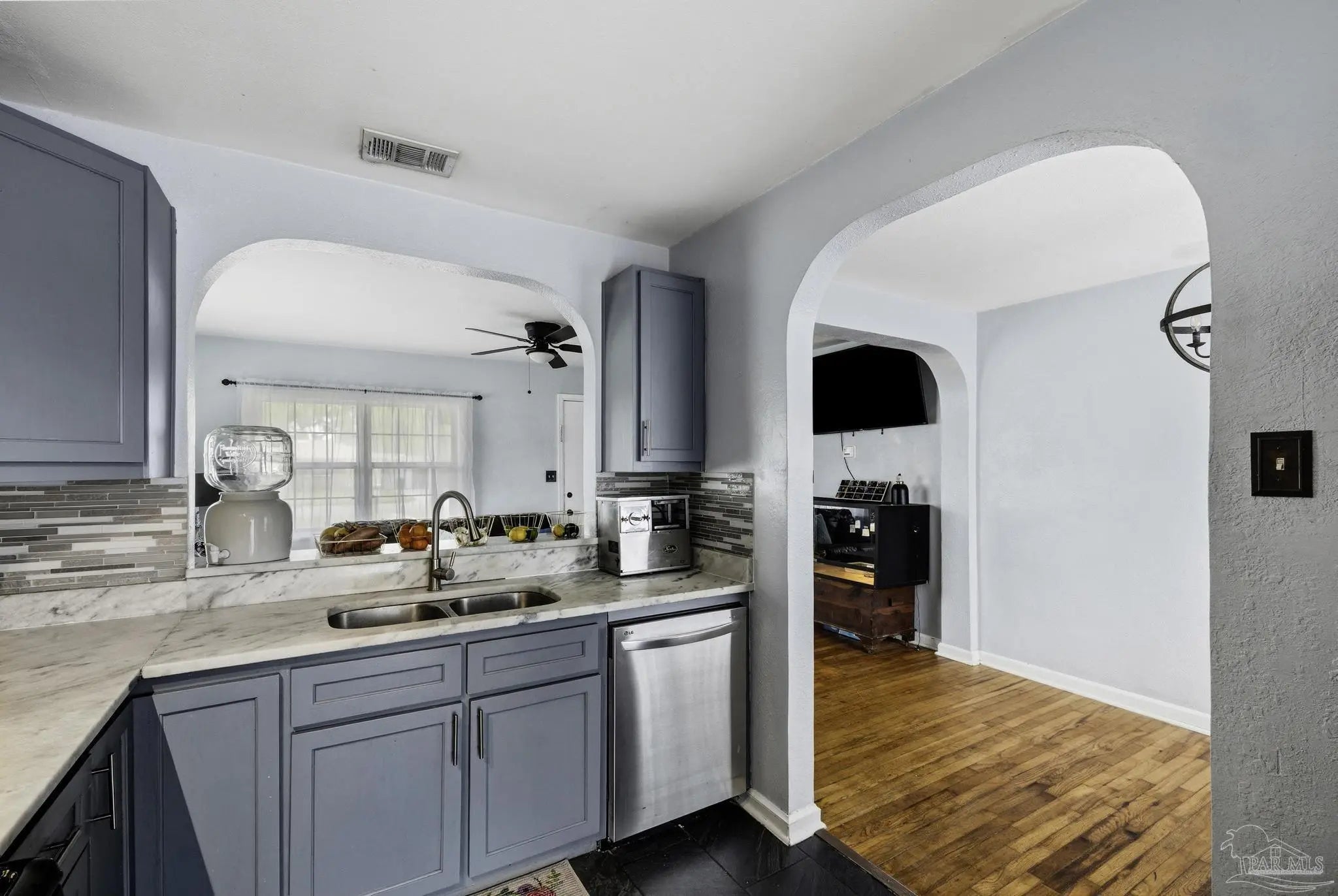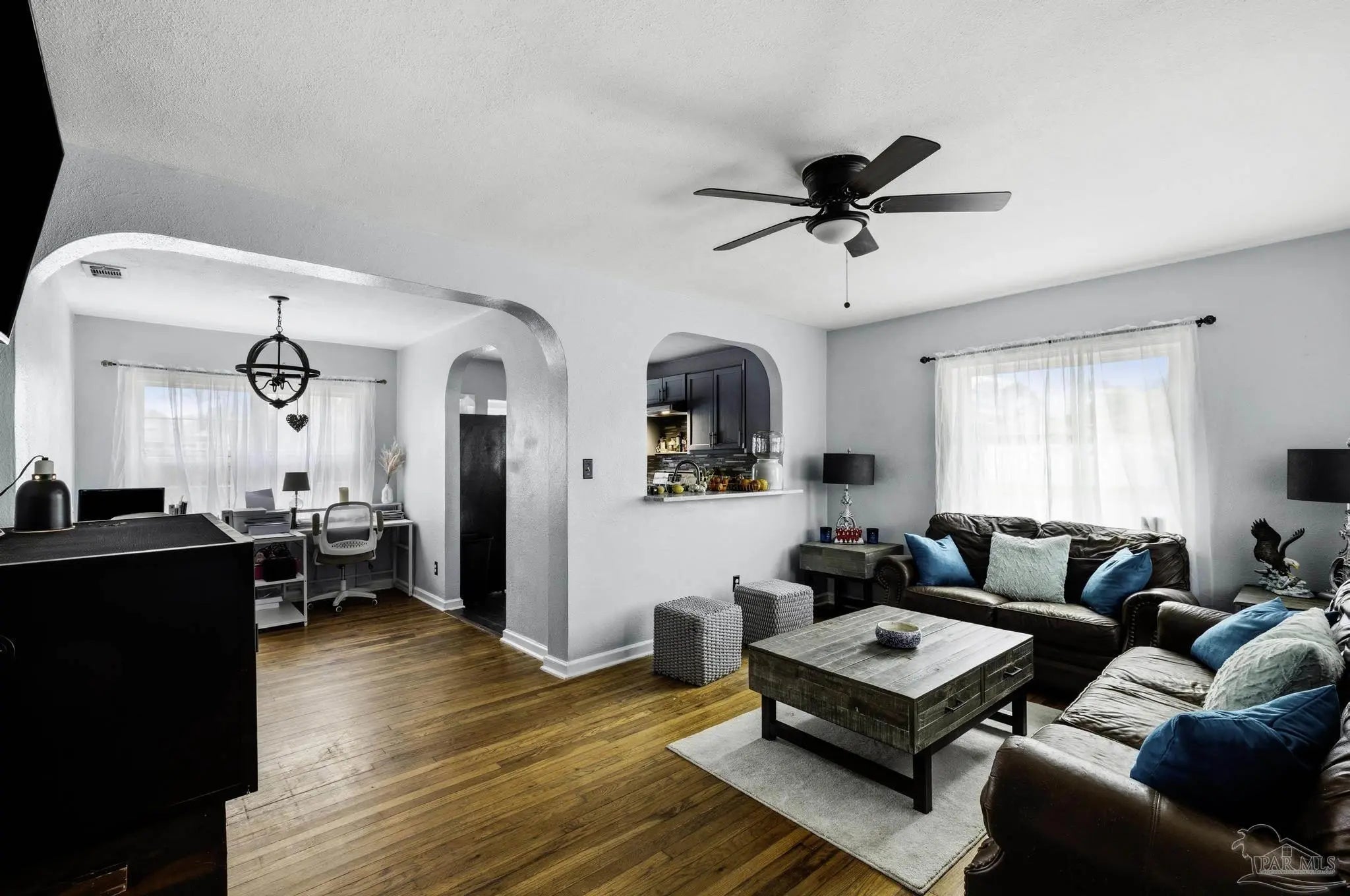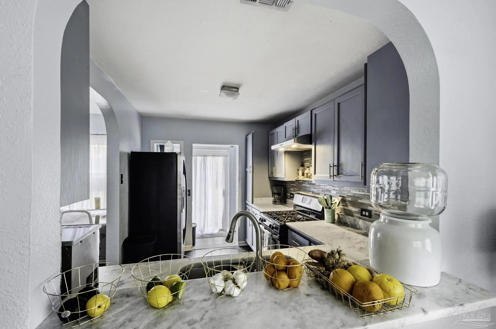 Welcome to this well-maintained brick home in Pensacola, offering the perfect blend of charm, updates, and affordability, ideal for a first-time home buyer or savvy investor. With 4 bedrooms, 1 bathroom, and 1,270 square feet, this home sits on a spacious 0.25-acre corner lot with no rent restrictions, providing flexibility for long-term living or rental income potential. Inside, you’ll find an open living and dining area filled with natural light, enhanced by stylish updated fixtures and architectural arches that define the space while maintaining an airy feel. Wood flooring runs through the main living areas and most bedrooms, while tile flooring adds durability in the kitchen and bathroom. The remodeled kitchen features granite countertops, stainless steel appliances, and a gas stove, making it both functional and attractive. The updated bathroom includes a modern marble-look tile shower for a clean, contemporary finish. The fourth bedroom offers flexibility. While it doesn't have a closet, it does include a window, making it ideal as a large bonus room, office, or flex space to fit your needs. Major systems have been thoughtfully updated for peace of mind, including a roof less than one year old, HVAC only 4 years old, and water heater just 6 years old. Outside you can enjoy a large, fully fenced backyard, perfect for pets, entertaining, or future additions. A covered front porch adds curb appeal and a welcoming touch, while the carport provides convenient parking. Additional highlights include ample closet space and an indoor laundry area. If you’re searching for an affordable home in Pensacola with modern updates, outdoor space, and investment potential, this one checks all the boxes.