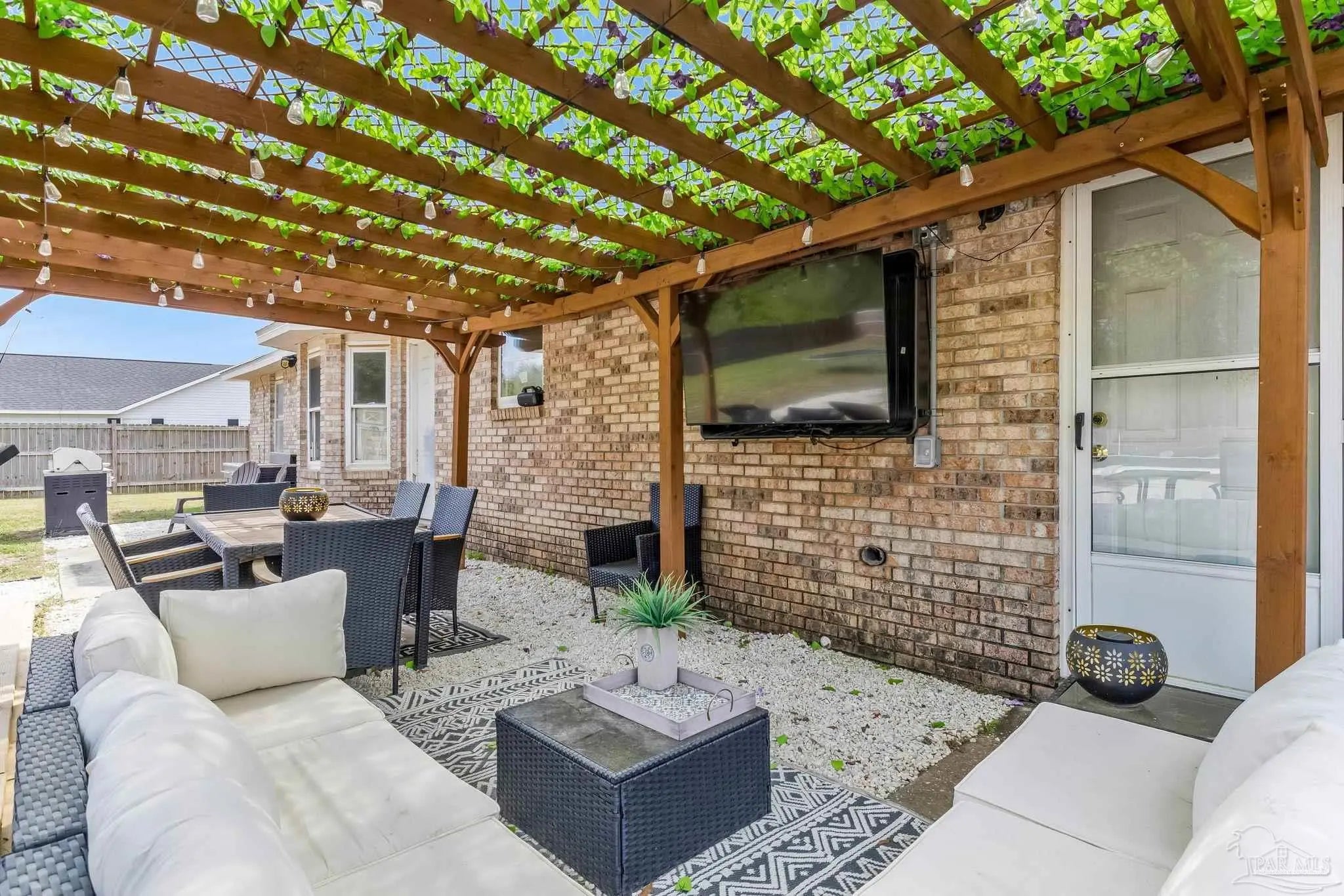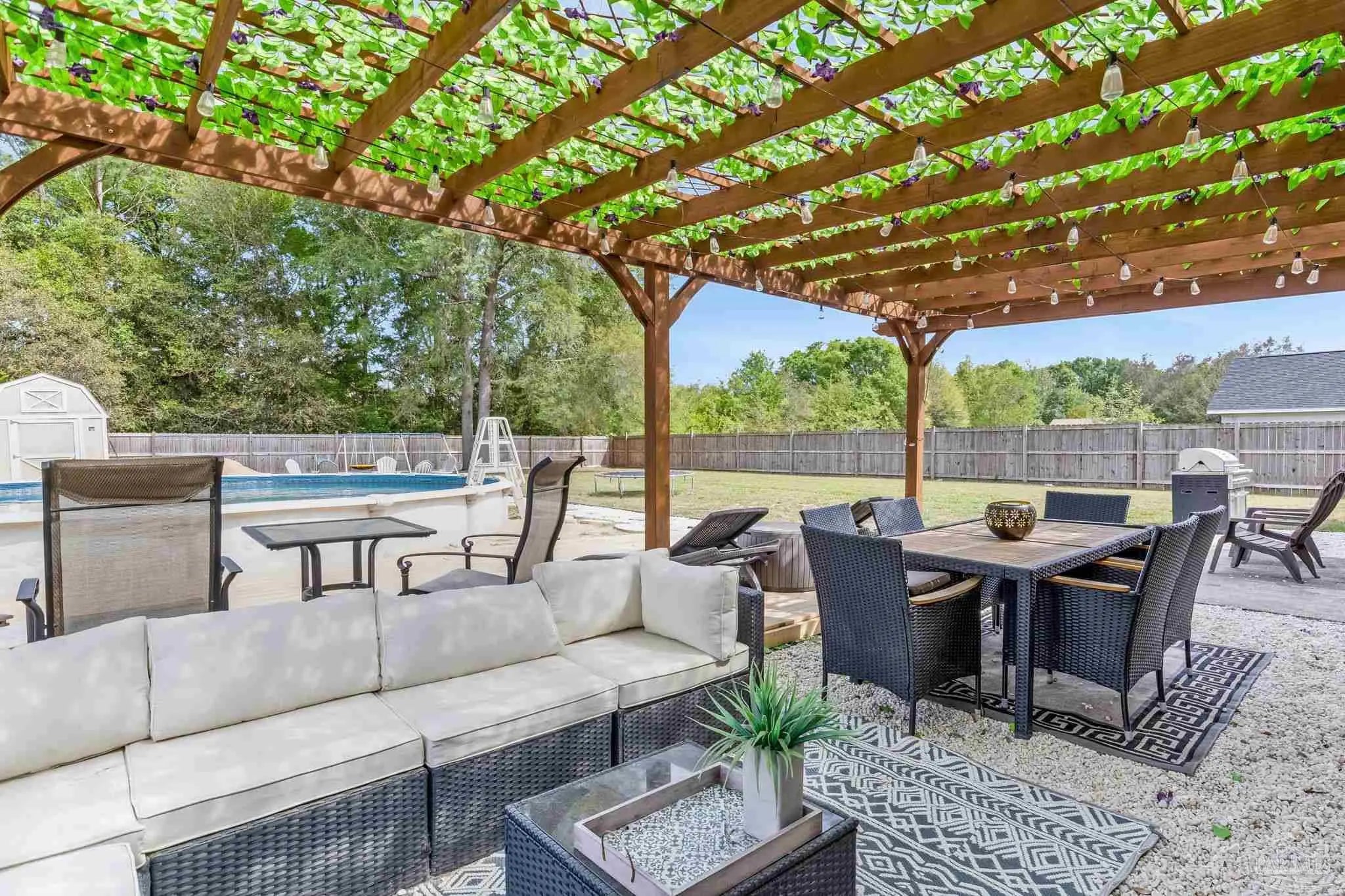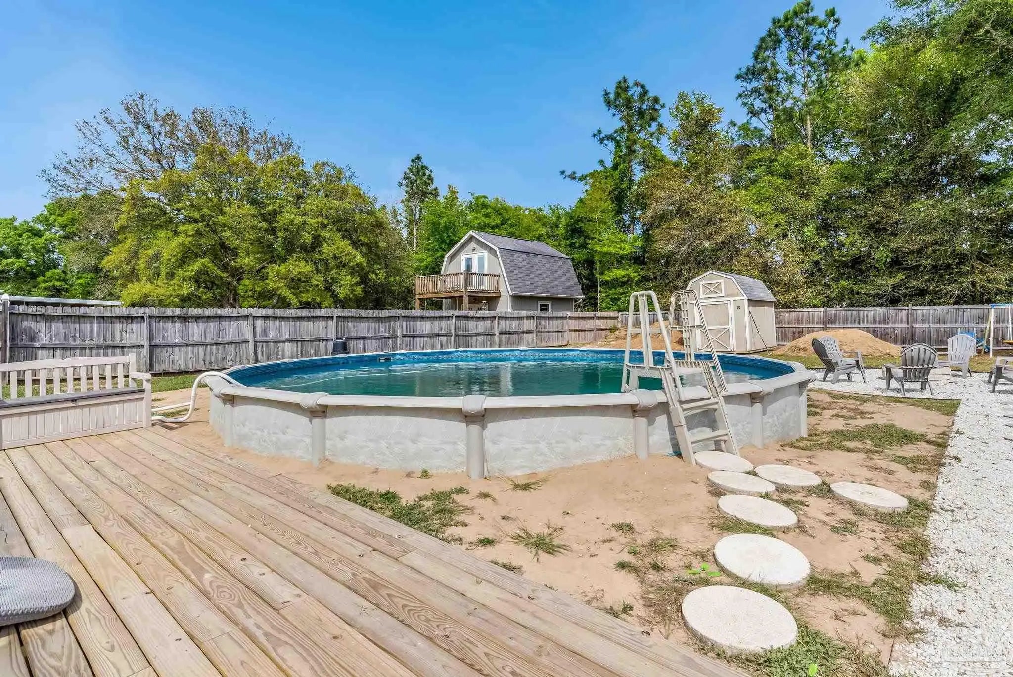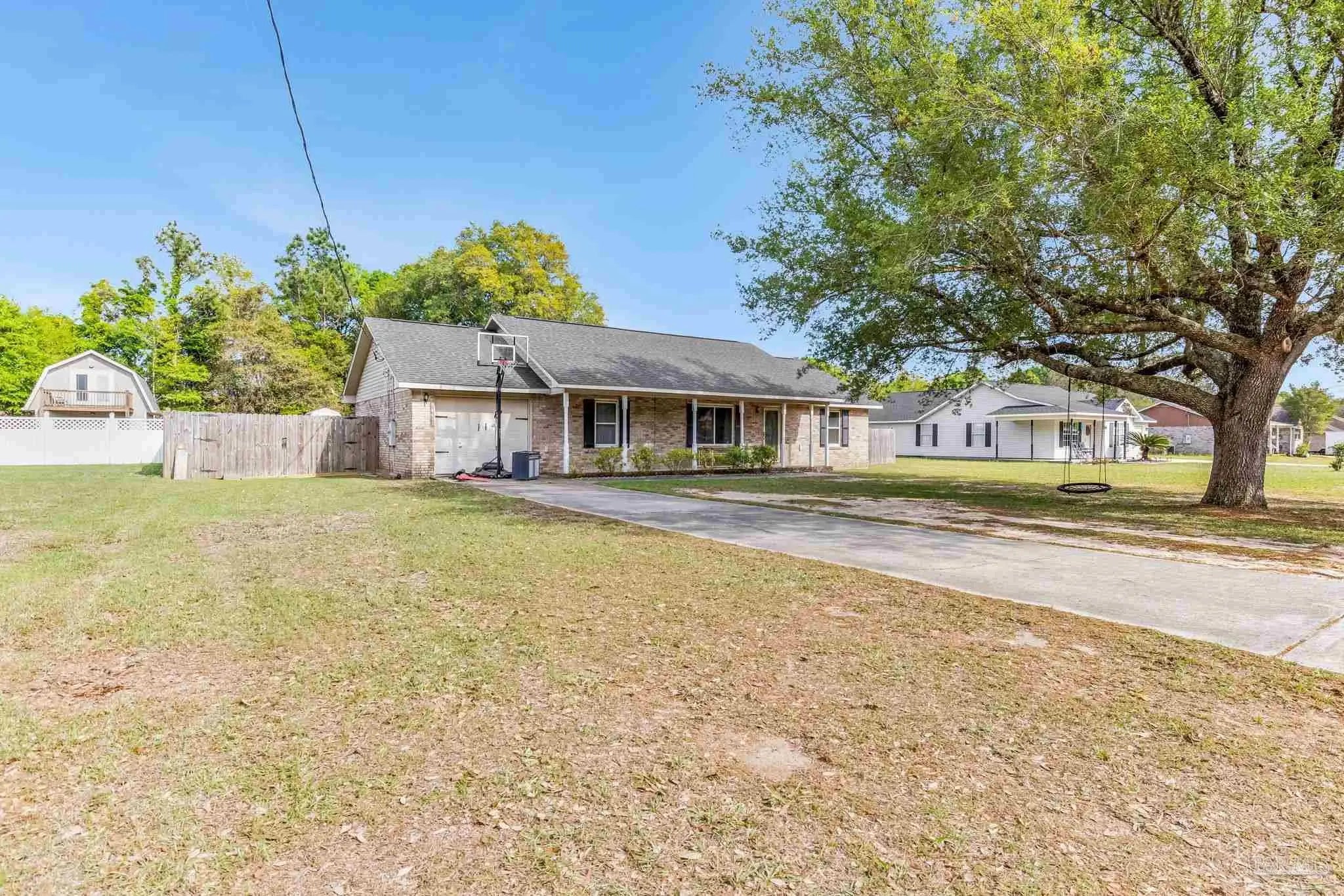Welcome to this 3-bedroom, 2-bath home offering 1,356 square feet of comfortable living space on a fully fenced 0.489-acre lot in the Milton/Pace area. Built in 1993, this home features vinyl flooring throughout, a functional layout, and a roof replaced approximately 4 years ago. The true highlight of this property is the backyard, designed for both relaxation and entertaining, featuring a pergola, outdoor kitchenette, and an above-ground pool set partially in-ground to create the look of an in-ground pool. A rocked pathway leads to the outdoor fireplace, and the outdoor TV setup creates the perfect space for hosting or unwinding. Tucked away on a quiet road just off Willard Norris Rd, this property offers privacy while still being conveniently located.