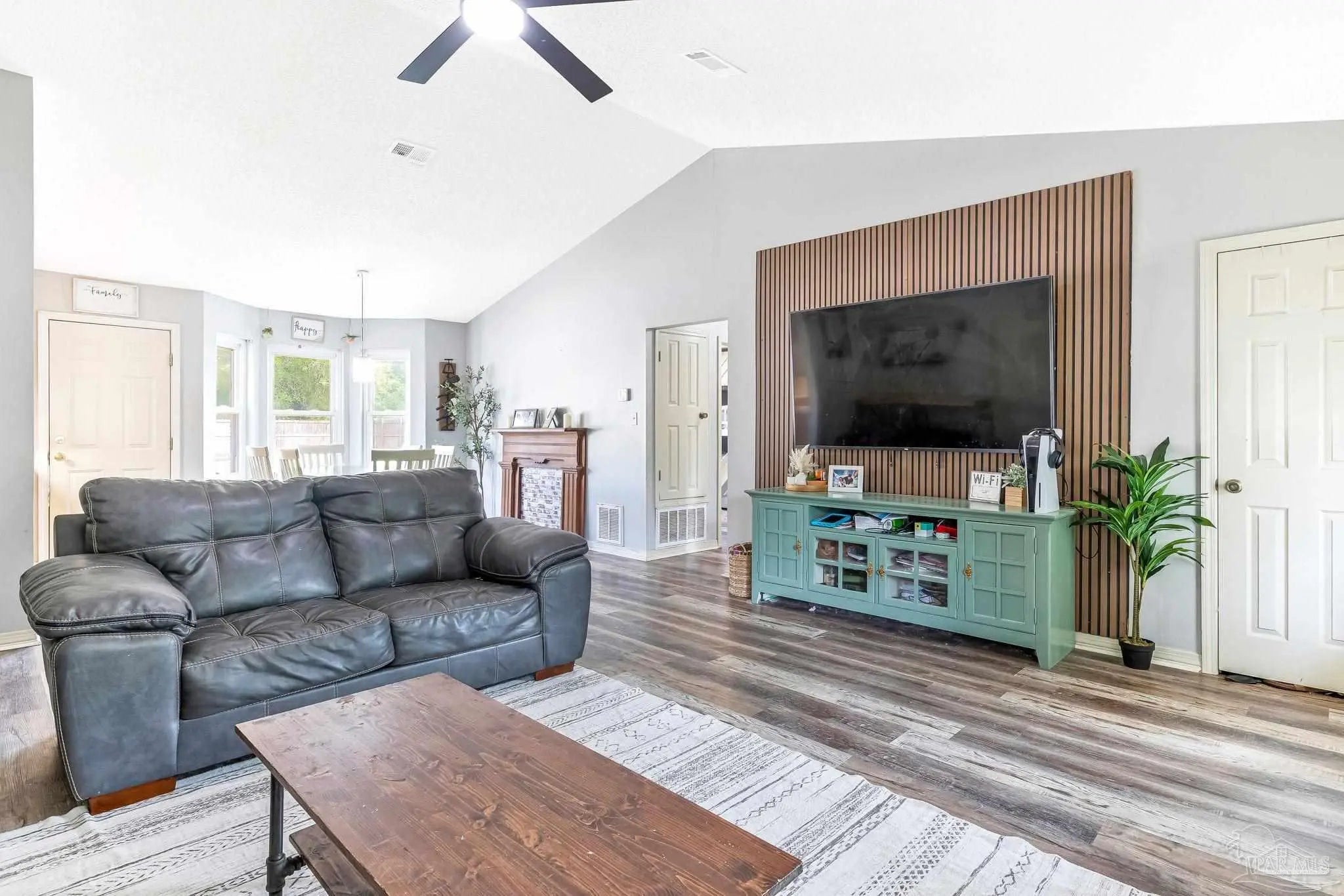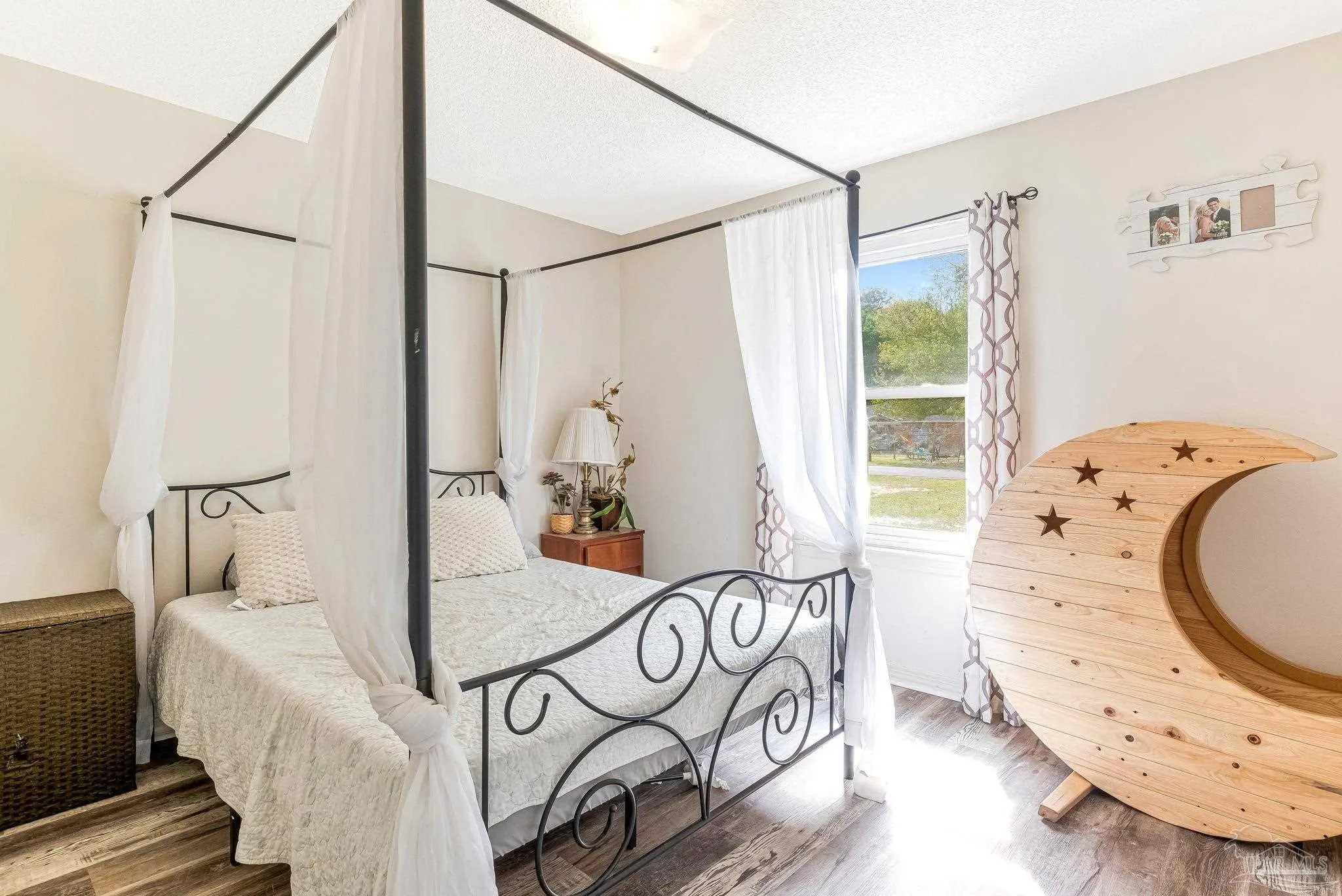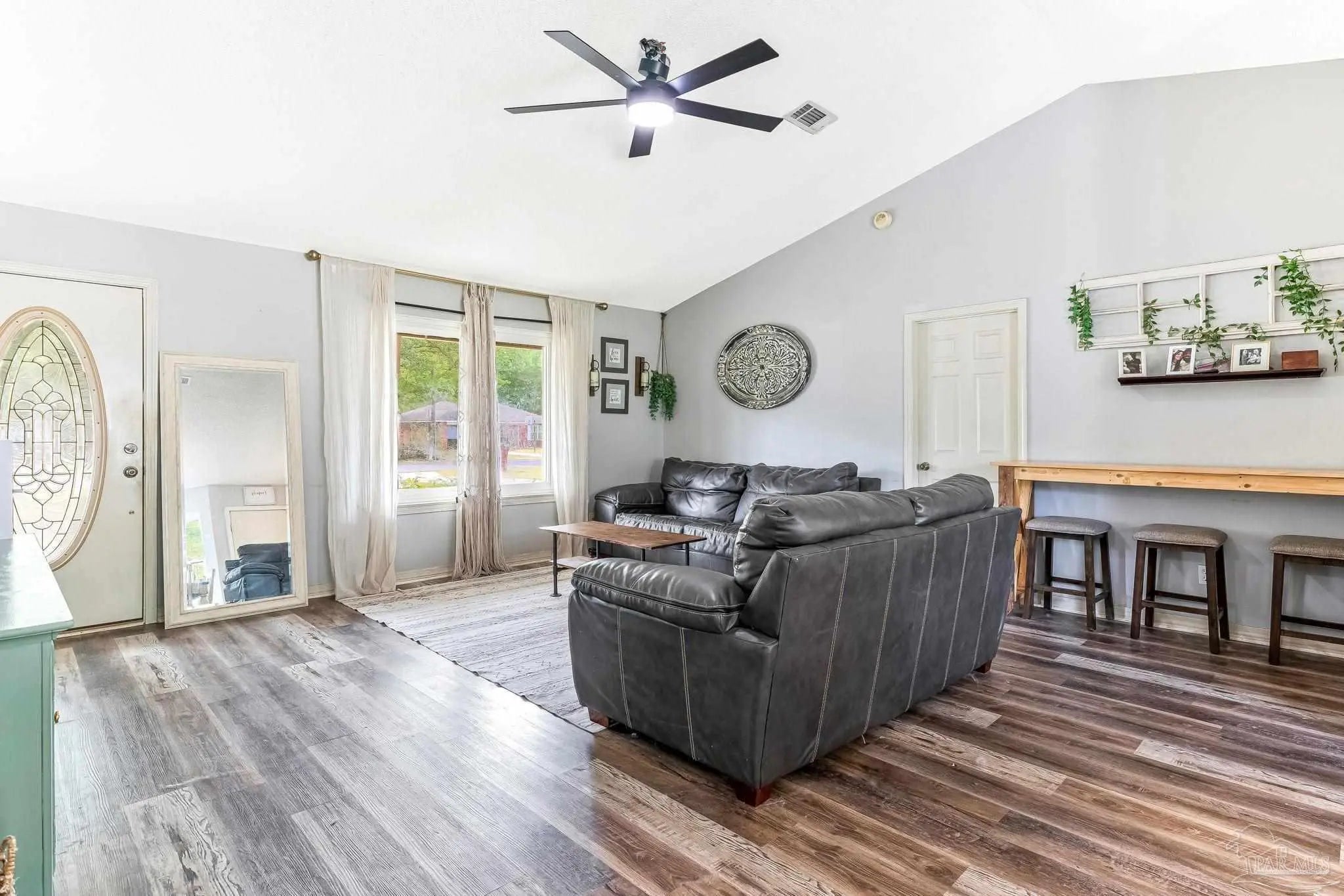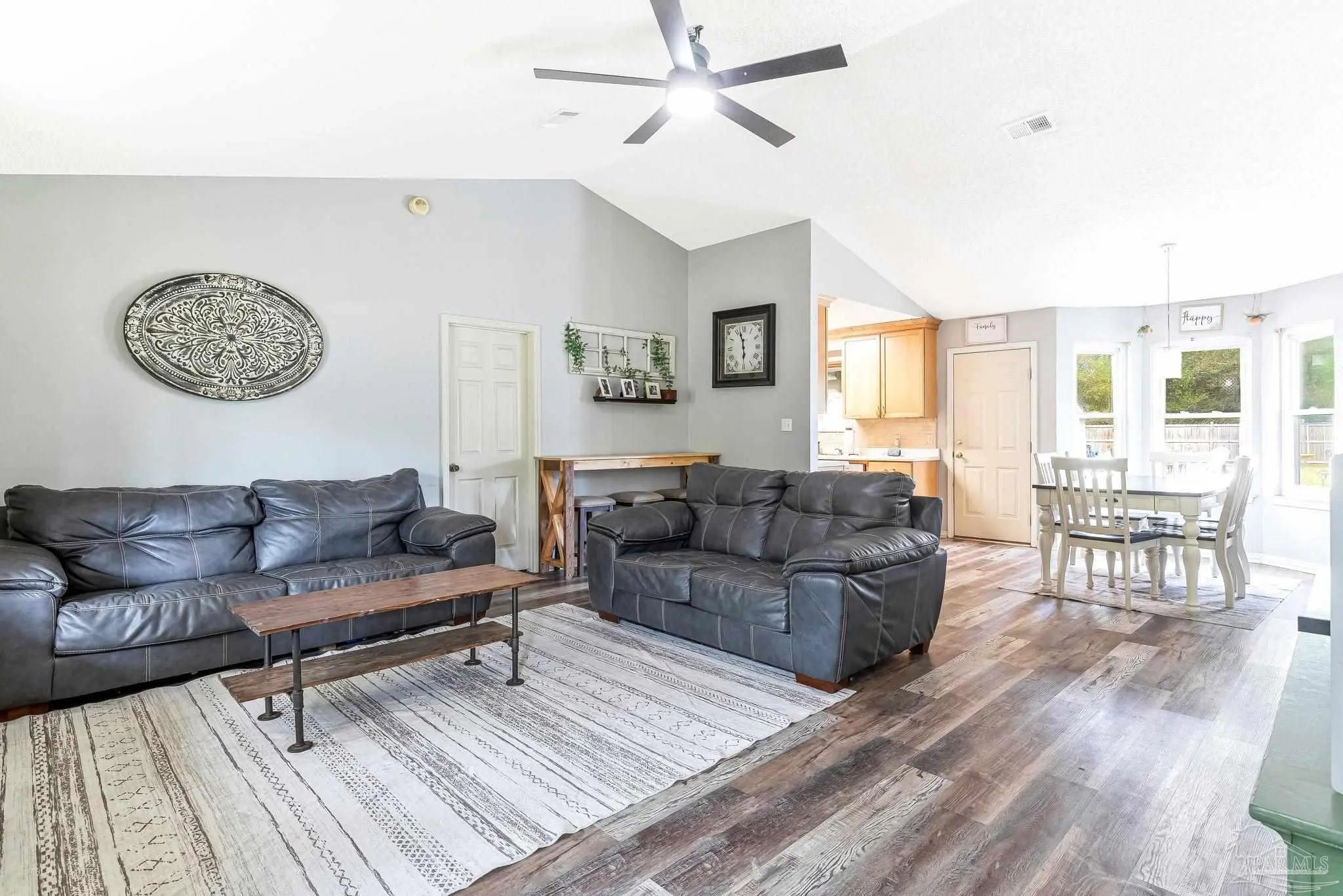 Welcome to this 3-bedroom, 2-bath home offering 1,356 square feet of comfortable living space on a fully fenced 0.489-acre lot in the Milton/Pace area. Built in 1993, this home features vinyl flooring throughout, a functional layout, and a roof replaced approximately 4 years ago. The true highlight of this property is the backyard, designed for both relaxation and entertaining, featuring a pergola, outdoor kitchenette, and an above-ground pool set partially in-ground to create the look of an in-ground pool. A rocked pathway leads to the outdoor fireplace, and the outdoor TV setup creates the perfect space for hosting or unwinding. Tucked away on a quiet road just off Willard Norris Rd, this property offers privacy while still being conveniently located.