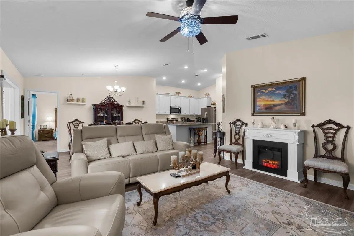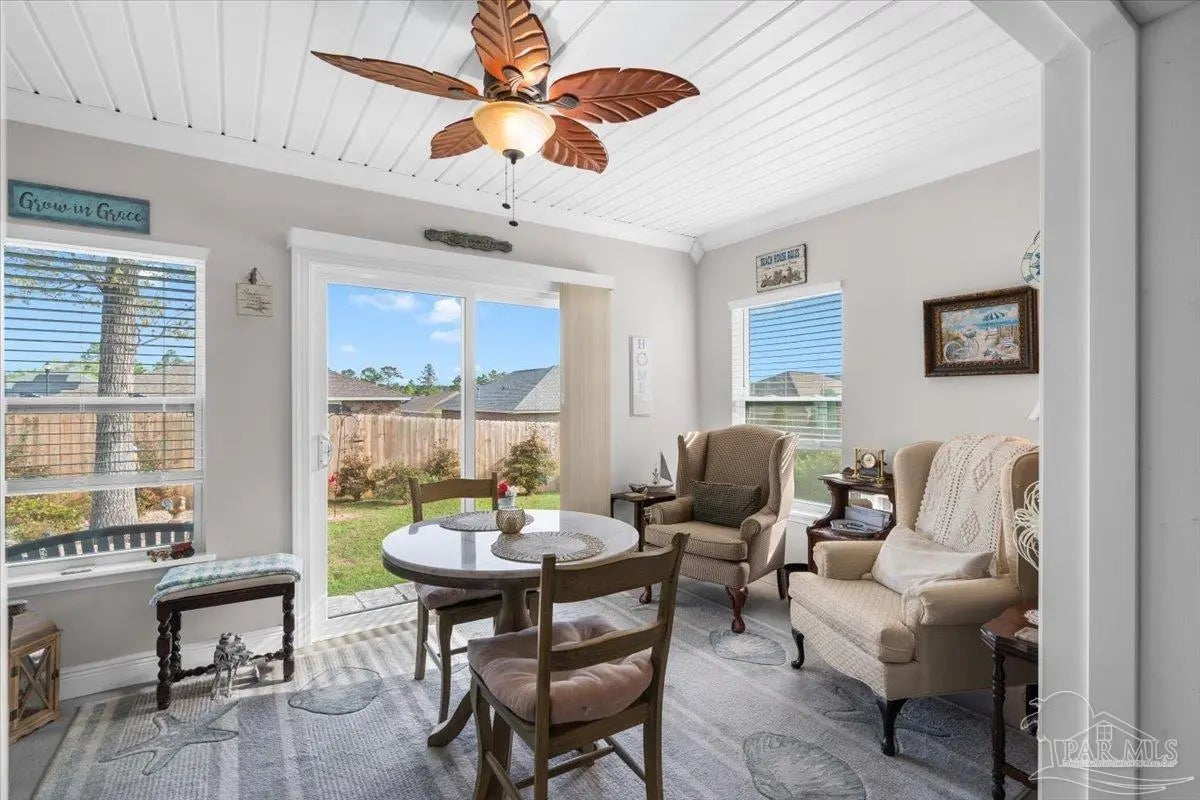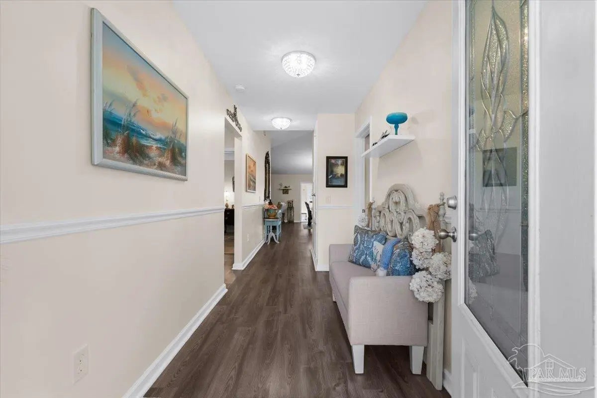 Open House Sunday, April 12th, 1-3 pm. Welcome to 3582 Conley Dr. in Cantonment, FL— a meticulously maintained, one-owner home built in 2020, offering modern upgrades, strong construction, and true peace of mind. Constructed with three-sided brick and an elegant Hardie board front elevation, this home delivers both curb appeal and long-term durability. Step inside to an inviting, light-filled entryway through the ¾-lite front door, opening to 9-foot ceilings with vaulted ceilings in the main living area, creating a bright, open, and functional layout. The interior features luxury vinyl plank flooring, updated light fixtures throughout, and a spacious living area designed for both everyday comfort and entertaining. The kitchen is built to impress with granite countertops, a large center island, and 42-inch cabinetry, offering ample storage and workspace while maintaining a clean, modern aesthetic. The 9x15 heated and cooled sunroom offers the perfect blend of comfort and natural light, creating a bright and relaxing extension of the home. The paneled ceiling adds character, while the ceiling fan with decorative leaf-style blades enhances both style and comfort. Ideal for morning coffee, reading or entertaining guest this versatile space easily functions as a sitting area, breakfast nook or peaceful retreat. The primary suite offers a well-appointed retreat with an upgraded bathroom featuring a tiled walk-in shower and quartz countertops. Each bedroom includes ceiling fans, enhancing comfort and energy efficiency throughout the home. Additional highlights include gutters and a transferable termite bond, adding another layer of protection and long-term value. The neighborhood features sidewalks, contributing to a clean, walkable community feel. This is a move-in-ready opportunity that combines modern finishes, structural integrity, and overall value in a highly desirable Cantonment location.