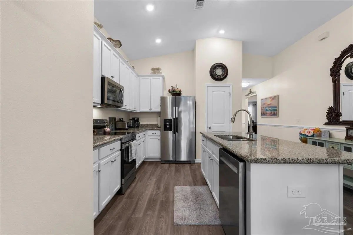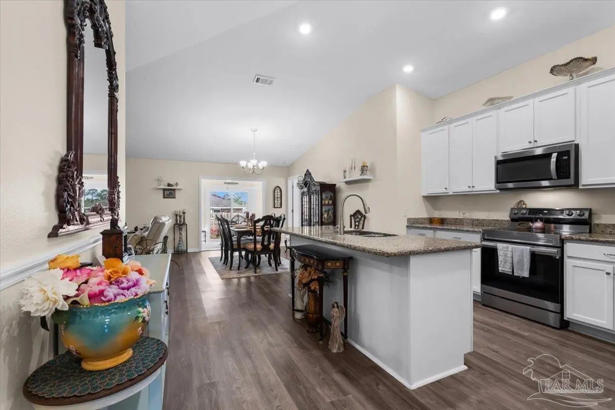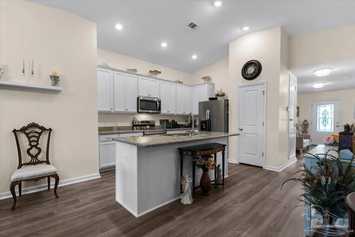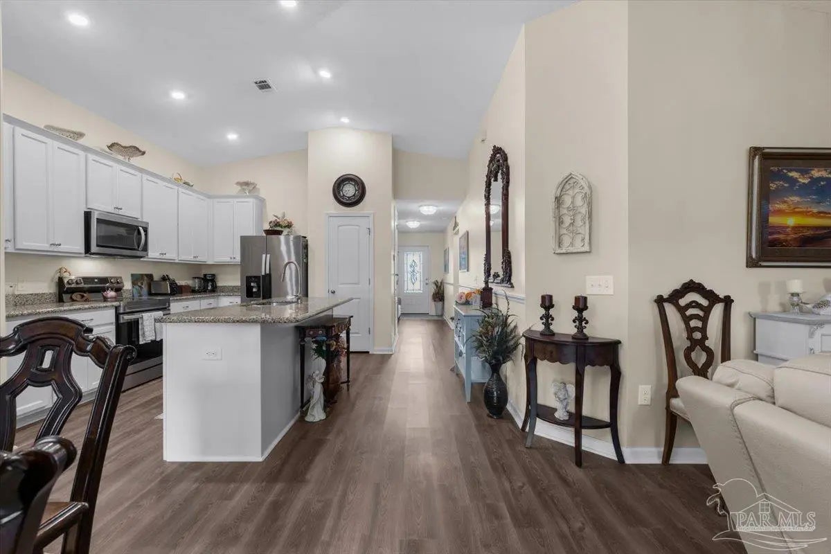 Open House Sunday, April 12th, 1-3 pm. Welcome to 3582 Conley Dr. in Cantonment, FL— a meticulously maintained, one-owner home built in 2020, offering modern upgrades, strong construction, and true peace of mind. Constructed with three-sided brick and an elegant Hardie board front elevation, this home delivers both curb appeal and long-term durability. Step inside to an inviting, light-filled entryway through the ¾-lite front door, opening to 9-foot ceilings with vaulted ceilings in the main living area, creating a bright, open, and functional layout. The interior features luxury vinyl plank flooring, updated light fixtures throughout, and a spacious living area designed for both everyday comfort and entertaining. The kitchen is built to impress with granite countertops, a large center island, and 42-inch cabinetry, offering ample storage and workspace while maintaining a clean, modern aesthetic. The 9x15 heated and cooled sunroom offers the perfect blend of comfort and natural light, creating a bright and relaxing extension of the home. The paneled ceiling adds character, while the ceiling fan with decorative leaf-style blades enhances both style and comfort. Ideal for morning coffee, reading or entertaining guest this versatile space easily functions as a sitting area, breakfast nook or peaceful retreat. The primary suite offers a well-appointed retreat with an upgraded bathroom featuring a tiled walk-in shower and quartz countertops. Each bedroom includes ceiling fans, enhancing comfort and energy efficiency throughout the home. Additional highlights include gutters and a transferable termite bond, adding another layer of protection and long-term value. The neighborhood features sidewalks, contributing to a clean, walkable community feel. This is a move-in-ready opportunity that combines modern finishes, structural integrity, and overall value in a highly desirable Cantonment location.