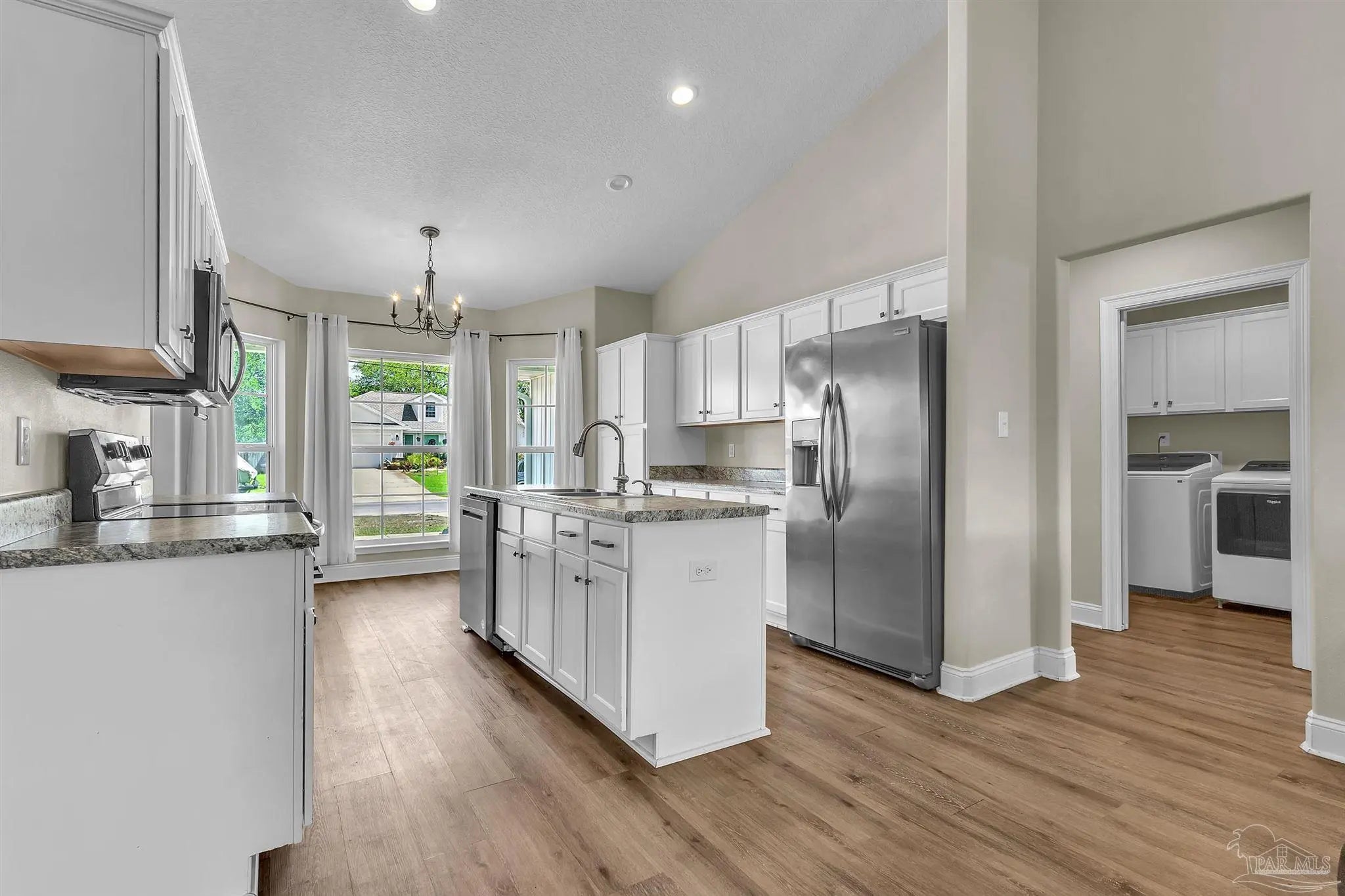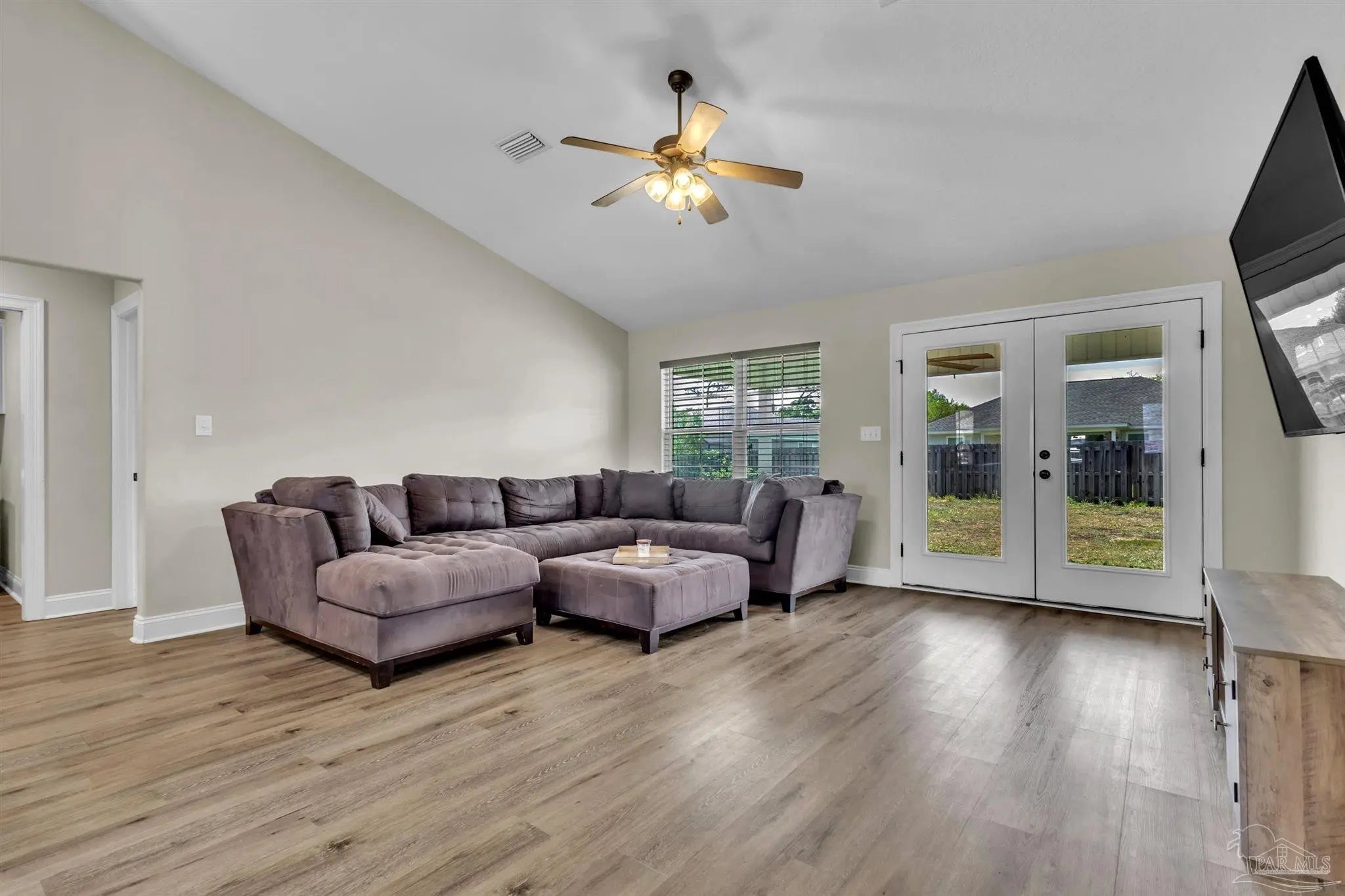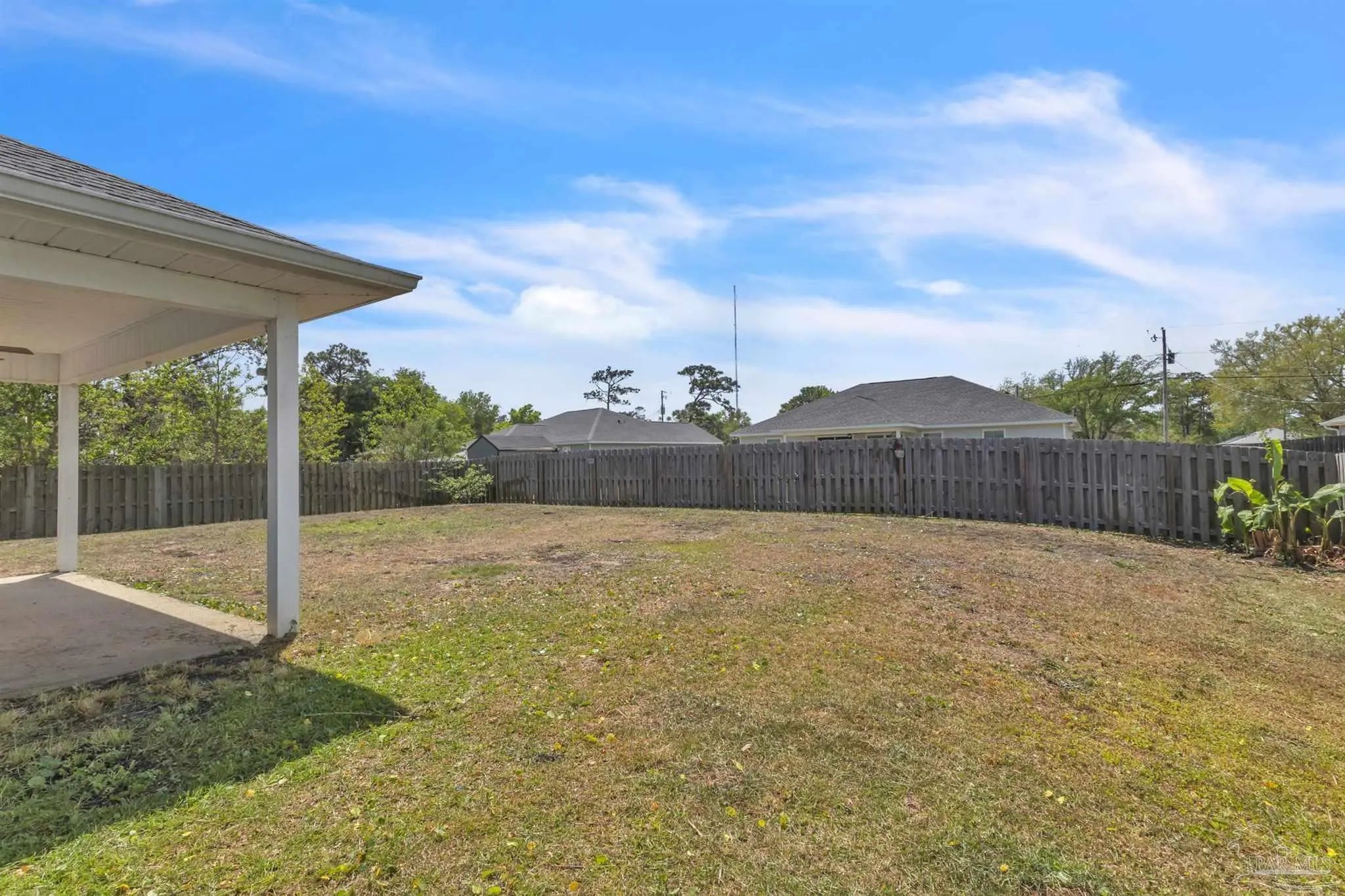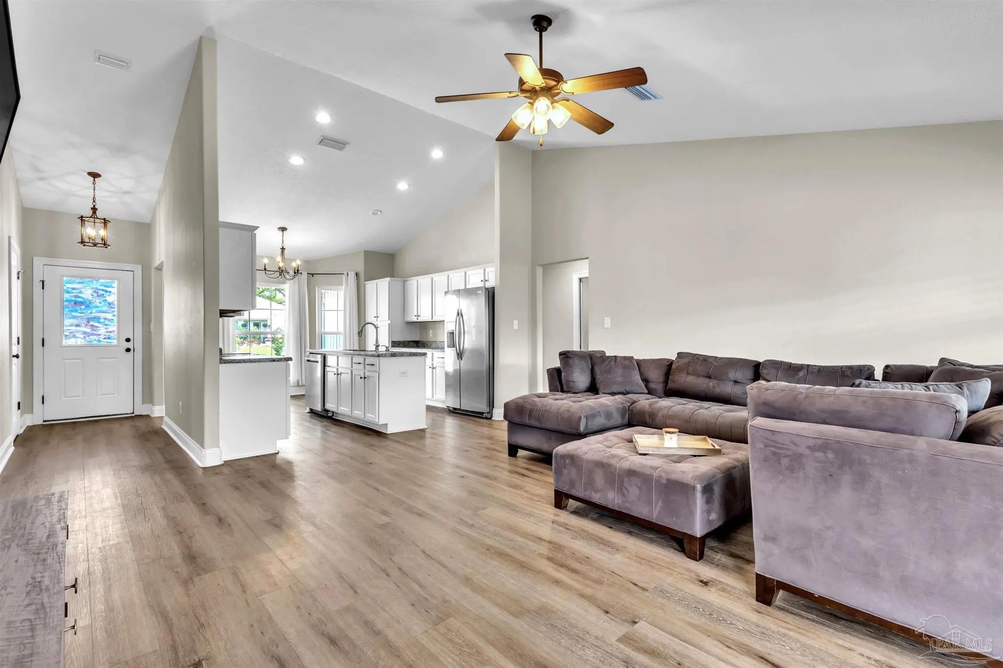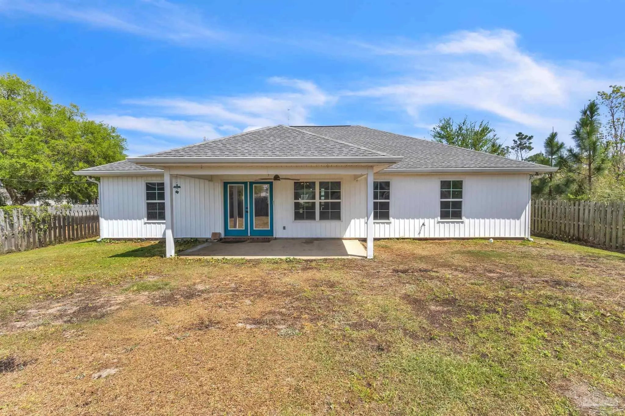 Discover modern comfort and coastal convenience in sought-after Gulf Breeze. Built in 2020, this beautifully maintained 3-bedroom, 2-bath home offers 1,428 square feet of open-concept living with stylish finishes and a functional split floor plan. The spacious living room features soaring vaulted ceiling, creating a light and airy atmosphere. The main living areas are finished with luxury vinyl plank flooring. The kitchen opens seamlessly to the living and dining spaces and offers modern cabinetry, stainless steel appliances and ample counter space. The private primary suite includes a walk-in closet and ensuite bath, while two additional bedrooms provide flexibility for guests, a home office, or growing families. Step outside to enjoy the large covered patio and large backyard, offering plenty of room for outdoor entertainment, pets, or future additions. No HOA. Conveniently located near shopping, dining, stunning Gulf Coast beaches, and zoned for the brand new Southside High School, this home delivers the ideal blend of location, comfort, and value.