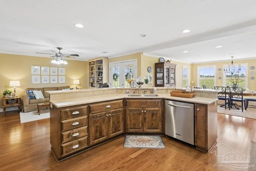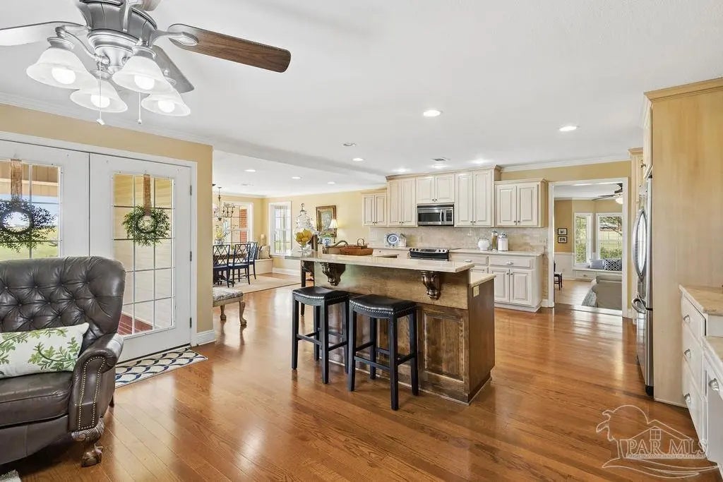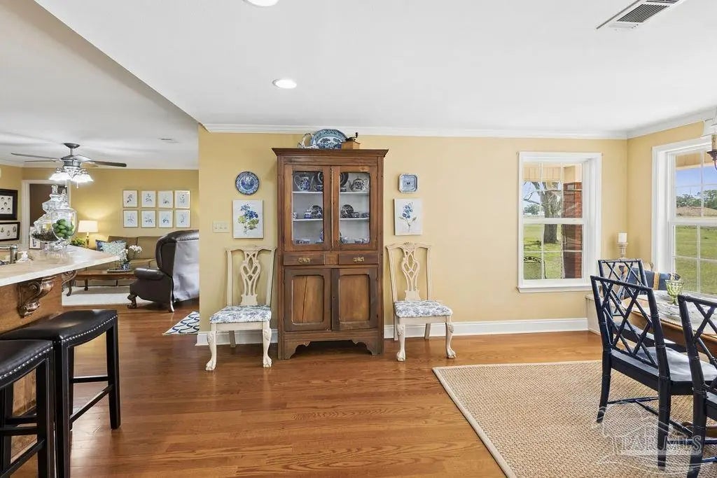 Welcome to your private 5-acre estate, where space, comfort, & versatility come together in a truly unique setting. This property features two homes & large shop—offering a rare opportunity for multi-generational living, hobbies, or business use. The main residence spans 3,259 square feet with 3 bed & 2.5 baths, designed with a warm, inviting layout that balances everyday living & entertaining. Just off the foyer, a front flex room offers the perfect space for a study or home office, along with a spacious primary suite featuring a large walk-in closet that doubles as a dressing room & a private en-suite bath with a charming, cozy feel. The home features a split floorplan with an incredibly warm, homey feel—something you don’t often find at this size. Inside, you’ll find engineered hardwood & tile flooring, formal dining, & a cozy keeping room just off the kitchen. The kitchen serves as the heart of the home, featuring custom solid wood cabinetry, travertine countertops, a center island, tile backsplash, & built-in seating with storage in the breakfast nook, & opens into an additional spacious living area—creating a seamless kitchen & living space ideal for gathering and entertaining. Two additional bedrooms feature large walk-in closets & are connected by a Jack-and-Jill bath, w one offering a built-in vanity. The laundry is tucked away in a private nook and is truly a must-see. A convenient half bath is located for guests, & a large upstairs unfinished space provides excellent potential for storage or future expansion. The guest home offers 1,260 square feet w 2 beds & 1.5 baths, full kitchen, private septic system, & its own 2-car garage—ideal for extended family or guests while maintaining privacy. Outside, the property is equipped for both function & lifestyle, featuring one expansive shop with two roll-up doors, a 14x14 RV door, RV hookup, and a 1/2 bath. Additional features include: natural gas, whole house generator (runs both homes) & 2020 roof
