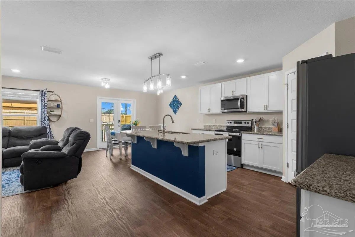 Welcome to this beautifully designed 5-bedroom, 3-bath home built in 2021, offering the perfect blend of space, functionality, and modern upgrades. With a versatile layout that includes two additional flex spaces—ideal for a home office, playroom, or second living area—this home adapts to fit your lifestyle. The open-concept floor plan creates a seamless flow for everyday living and entertaining, featuring a spacious eat-in kitchen with granite countertops, pullout cabinet drawers, and a large pantry for added convenience. A bedroom and full bath on the main floor provide the perfect setup for guests or multi-generational living. Thoughtful upgrades include custom wainscoting in the foyer and one bedroom. Upstairs, the primary suite is a true retreat with two custom-built closets, a large main bathroom with double sinks, while the additional bedrooms offer plenty of space for family or visitors. Step outside to enjoy the large, fully fenced backyard (2023) and extended patio with gazebo (2023)—perfect for relaxing evenings or weekend gatherings. Additional highlights include smart lighting technology, an available ADT security system, a 2-car garage with driveway parking, and sidewalks throughout the neighborhood. Ideally located just 3 miles from the interstate, this home offers easy access for commuting while being conveniently situated next to two schools. The neighborhood is also planning a future playground and park area, adding even more value to this already desirable community. Move-in ready and thoughtfully upgraded—this is one you don’t want to miss. Sellers have a VA Assumable loan.