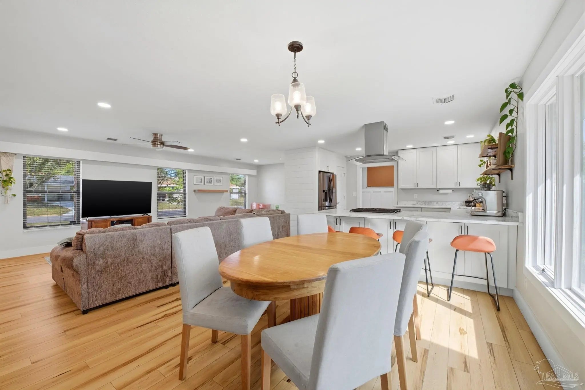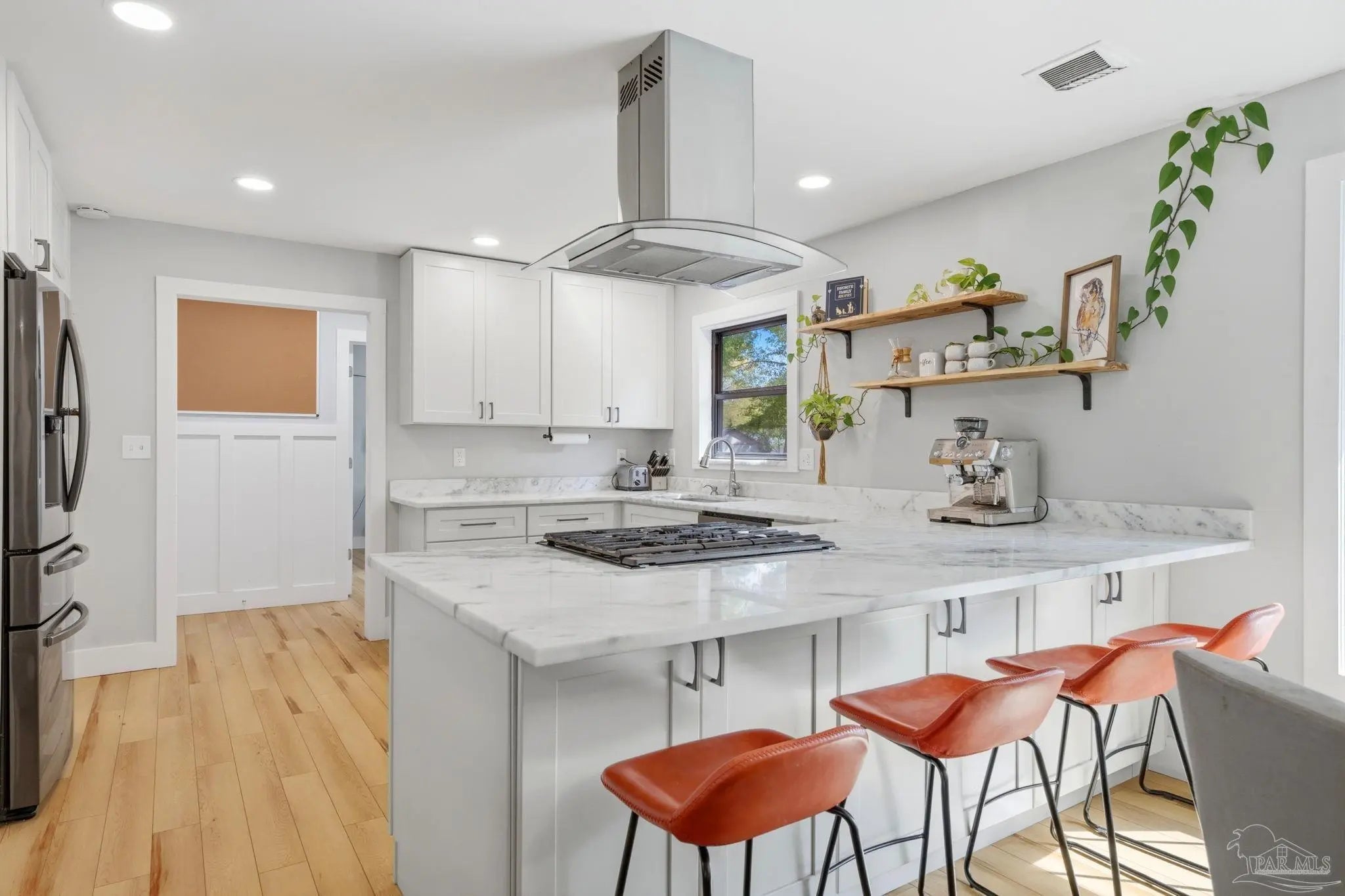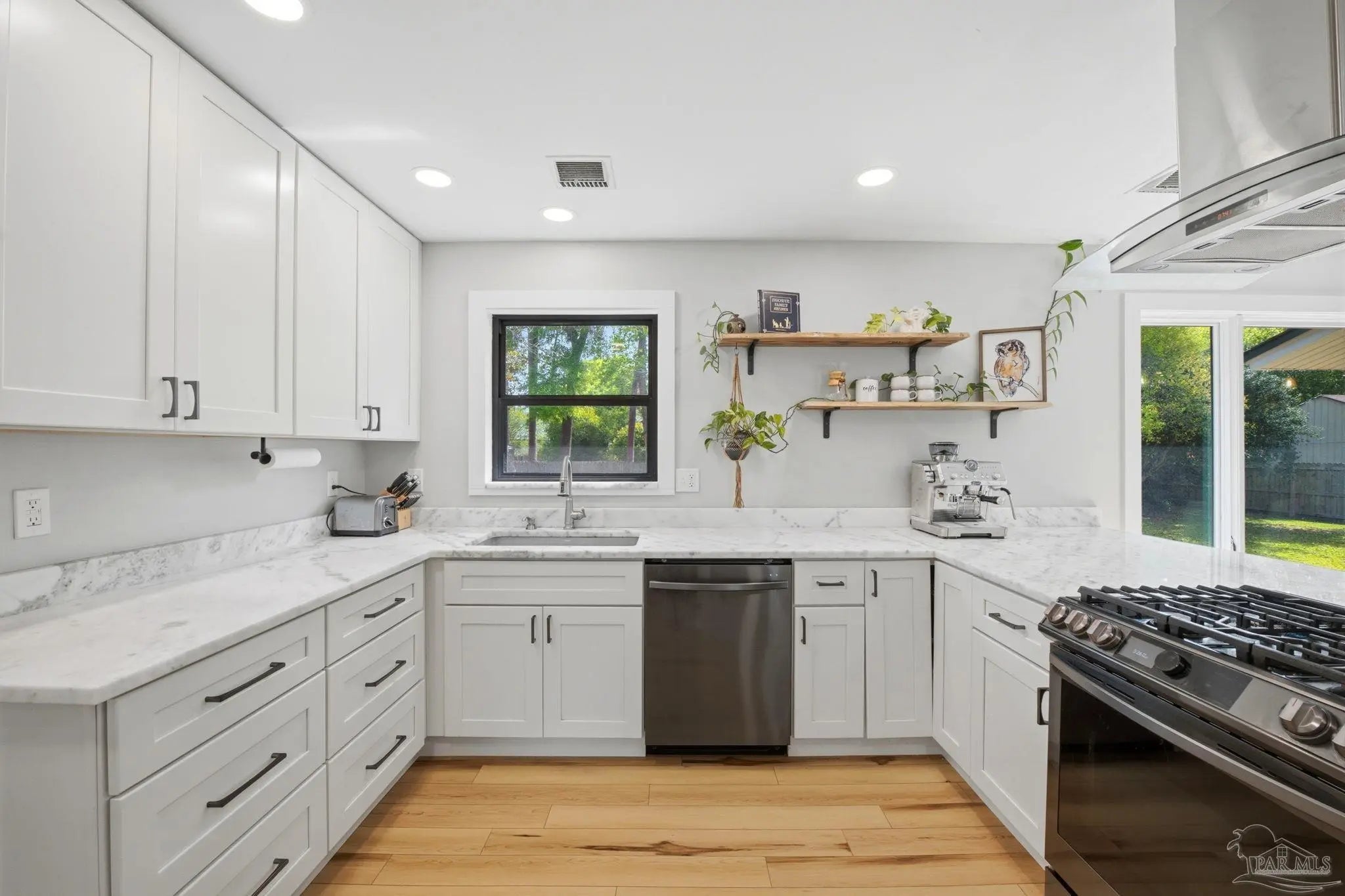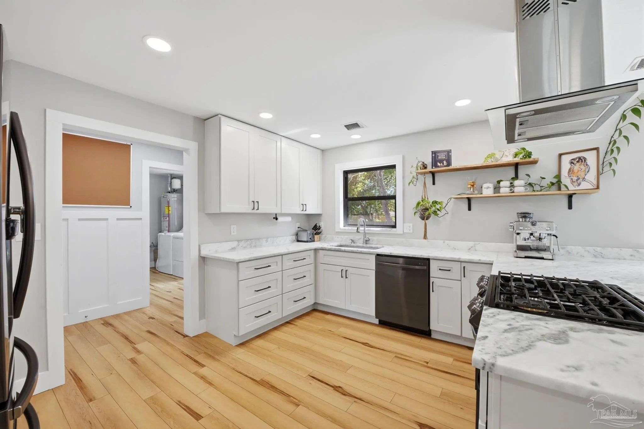 Beautiful all-brick home in the heart of Pensacola, the Cordova Park neighborhood. With modern updates and thoughtful touches throughout, this home is a must see! The spacious Great Room features built-in corner shelves and a cozy nook, and flows directly into the kitchen in an open concept layout. The kitchen is fully modernized with shaker-style cabinetry, stainless steel appliances including a five-burner gas range, and quartzite countertops. The laundry room doubles as a half bath and includes a utility sink for convenience. A stylish dry bar features live oak counters, pendant lighting, built-in wine fridge, and plenty of extra cabinet space. Windows throughout flood the main living areas with natural light. A gorgeous three-panel picture window completes the space, overlooking the patio & back yard. The Primary Suite has dual closets, recessed lighting, and an ensuite with a custom tile shower. A one-car garage offers flexible space for parking, storage, or a home gym. Resting on more than a quarter acre lot, the privacy fenced back yard boasts an oversized patio perfect for grilling and get-togethers! Cordova Park is in high demand for its charm, convenience, and proximity to amenities. Just a short walk to multiple parks and trails; Bayou Texar is one street over, and the Roger Scott Athletic Complex, Cordova Mall, Pensacola International Airport, East Hill, and downtown Pensacola are all just minutes by car. This home is right next to everything Pensacola has to offer! **** Please verify all features, dimensions, measurements, acreage etc that may be important to you.
