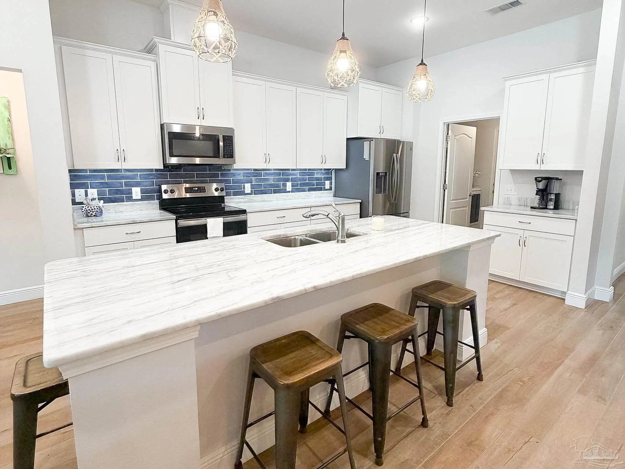 Welcome to this beautifully designed 5-bedroom, 3-bathroom home offering 2,601 square feet of stylish and functional living space. Situated on a spacious 0.27-acre lot, this property combines quality craftsmanship with standout custom features both inside and out. Step inside to discover custom finishes throughout, including ceramic tile flooring with a rich honey wood look that flows seamlessly through the main living areas. The hall bathroom features striking black slate flooring, while the other bathrooms carry the same tile as the rest of the home. Adding a modern and upscale touch. Custom lighting enhances each space, creating a warm and polished atmosphere. Professional tile work throughout including two custom showers. The kitchen and bathrooms are outfitted with beautiful dolomite countertops, offering both durability and elegance. With five spacious bedrooms and three full bathrooms, this home provides flexibility for families, guests, or a home office setup. The exterior showcases a timeless blend of brick and Hardie plank siding, complemented by a large covered front porch that creates a warm and inviting first impression. Out back, you’ll find an equally impressive covered porch overlooking a private backyard retreat—perfect for relaxing or entertaining. Outdoors is where this property truly shines. The fiberglass saltwater pool serves as the centerpiece of a thoughtfully designed entertaining area, making it the perfect place to host gatherings or unwind in your own private oasis. This home offers the perfect blend of comfort, style, and functionality—inside and out.