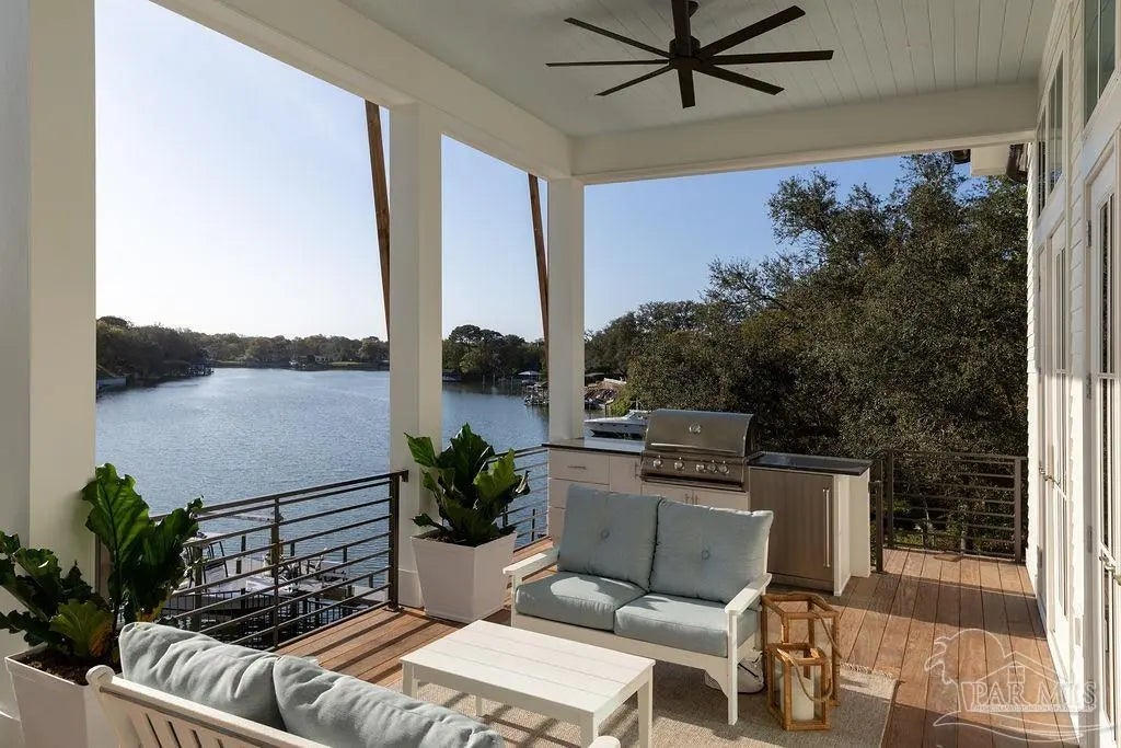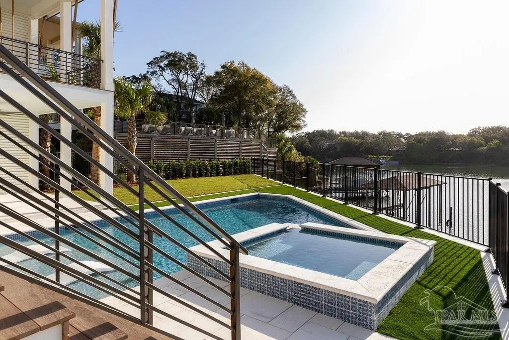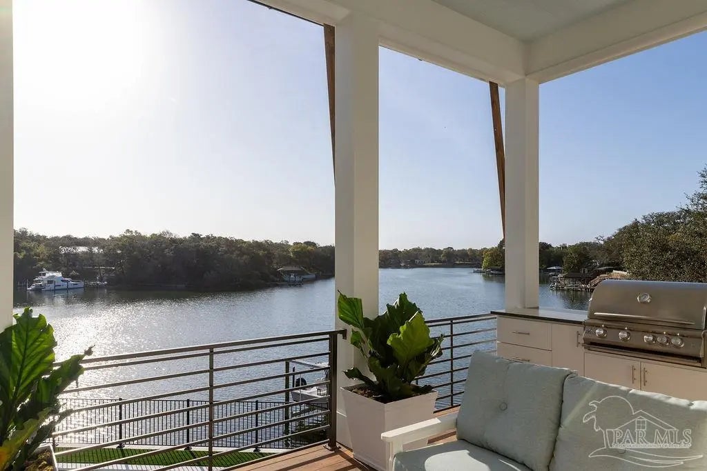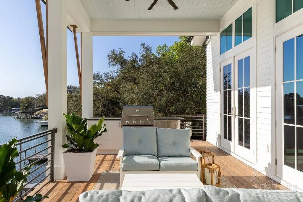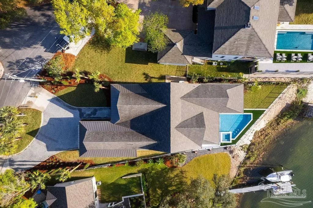 Golden Opportunity: Fully Custom Waterfront Home on the Bayou in Gulf Breeze Proper. Discover an extraordinary opportunity to own a meticulously crafted, fully custom home on Woodlawn Bayou without the delays, stress, or added costs of new construction. This turnkey residence offers immediate enjoyment and an exceptional waterfront lifestyle on one of the community’s most desirable streets. Perched on a hill well above sea level, the home provides peace of mind along with beautiful water views from the main living areas, bedrooms, and spacious porches. Outdoor living shines with a landscaped turf yard, sparkling pool overlooking the bayou, and a fully equipped outdoor kitchen ideal for entertaining. Inside, sophisticated modern finishes and custom millwork complement soaring 12-foot ceilings to create a bright, elegant atmosphere. The gourmet kitchen is anchored by Wolf and Sub-Zero appliances and flows seamlessly into the main living spaces, perfect for both everyday living and hosting. Offering 4 bedrooms and 4.5 bathrooms, the layout provides privacy and flexibility for family and guests. Enjoy resort-style living just minutes from the area’s beautiful beaches and within walking distance to A-rated schools, parks, trails, and premier recreational amenities. Additional highlights include a brand-new dock and boat lift with easy bayou access, energy-efficient construction with a closed geothermal system, an exceptionally low insurance premium of approximately $4,200 annually through an A-rated carrier, and a low-speed vehicle included with the sale. Experience true waterfront living with comfort, efficiency, and convenience in one exceptional property.