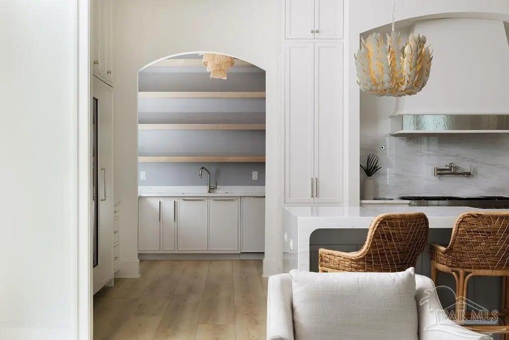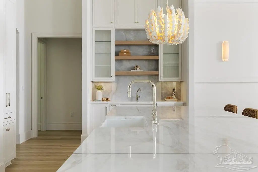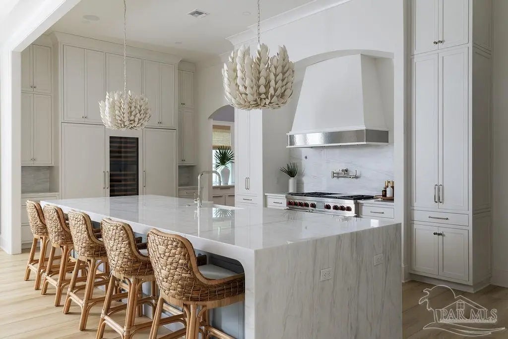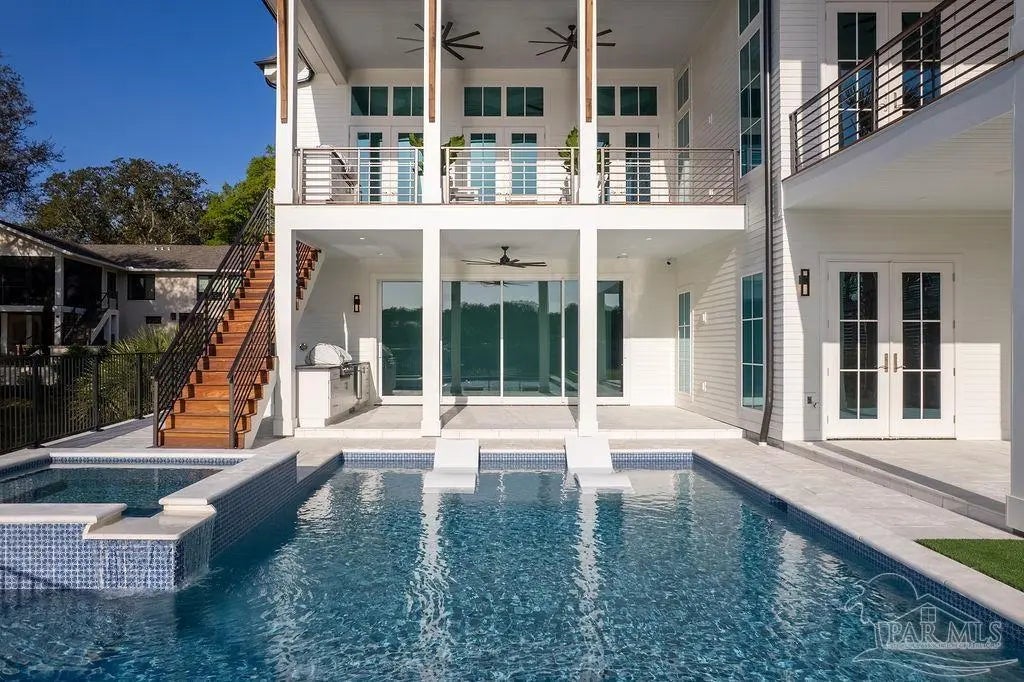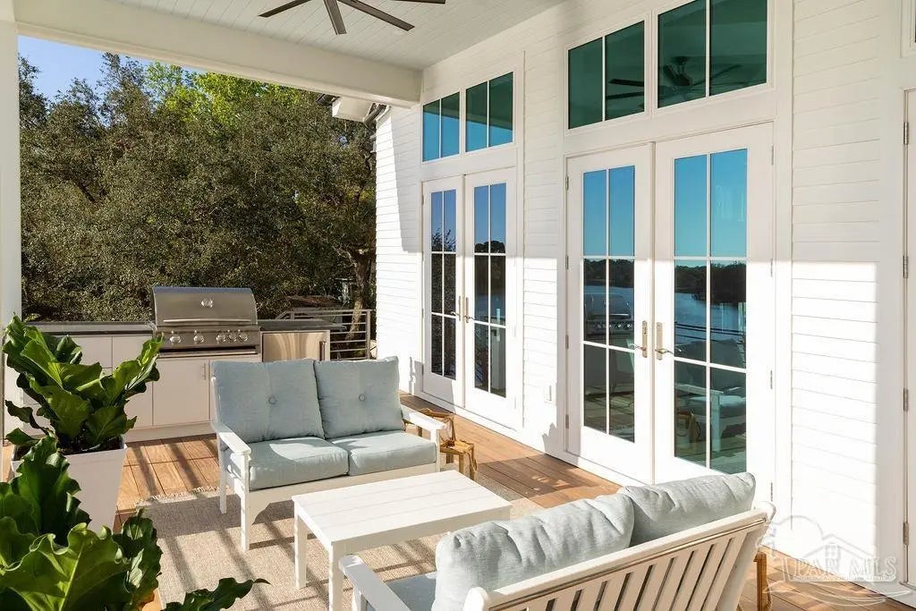 Golden Opportunity: Fully Custom Waterfront Home on the Bayou in Gulf Breeze Proper. Discover an extraordinary opportunity to own a meticulously crafted, fully custom home on Woodlawn Bayou without the delays, stress, or added costs of new construction. This turnkey residence offers immediate enjoyment and an exceptional waterfront lifestyle on one of the community’s most desirable streets. Perched on a hill well above sea level, the home provides peace of mind along with beautiful water views from the main living areas, bedrooms, and spacious porches. Outdoor living shines with a landscaped turf yard, sparkling pool overlooking the bayou, and a fully equipped outdoor kitchen ideal for entertaining. Inside, sophisticated modern finishes and custom millwork complement soaring 12-foot ceilings to create a bright, elegant atmosphere. The gourmet kitchen is anchored by Wolf and Sub-Zero appliances and flows seamlessly into the main living spaces, perfect for both everyday living and hosting. Offering 4 bedrooms and 4.5 bathrooms, the layout provides privacy and flexibility for family and guests. Enjoy resort-style living just minutes from the area’s beautiful beaches and within walking distance to A-rated schools, parks, trails, and premier recreational amenities. Additional highlights include a brand-new dock and boat lift with easy bayou access, energy-efficient construction with a closed geothermal system, an exceptionally low insurance premium of approximately $4,200 annually through an A-rated carrier, and a low-speed vehicle included with the sale. Experience true waterfront living with comfort, efficiency, and convenience in one exceptional property.