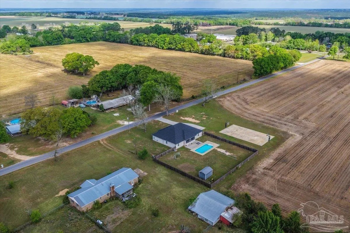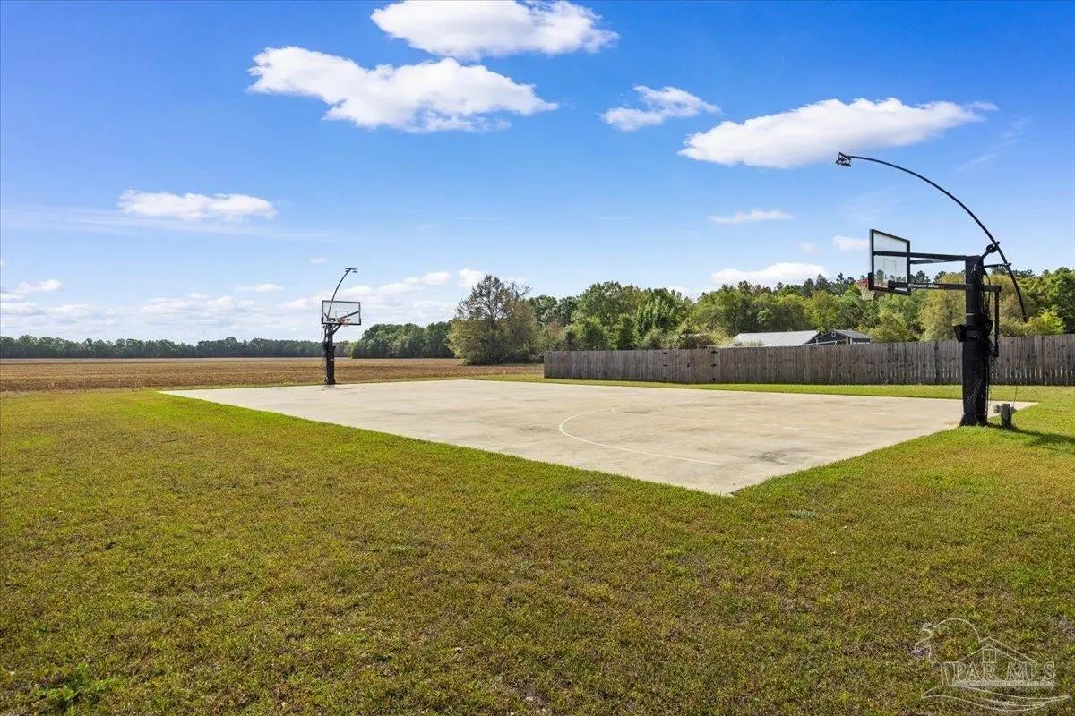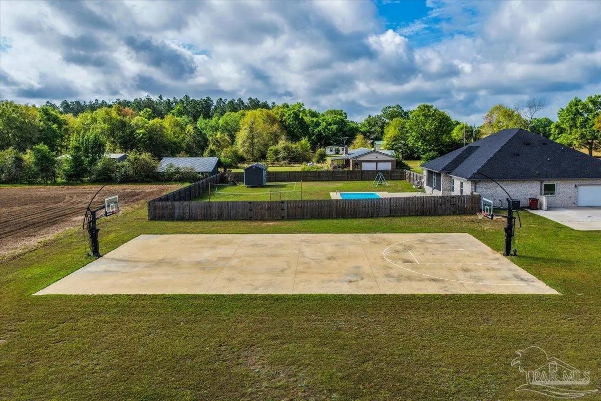 5 bed//3 full bath custom residence on perfectly squared acre! 3949 SQFT under roof - Builder paid close attention to detail through entire process. Open cell foam insulation in roof deck & walls. Beautiful masonry work on full exterior, rear patio wall, 3 front porch arches, interior foyer arch, & center island. Kitchen: 42” Shaker style cabinets w/stainless pulls, subway tile backsplash, stainless steel appliances, & walk-in pantry w/custom shelving. Master: overhead rain can & double head shower w/full tile, free-standing tub, & 2 vanities. Both guest baths also have tile hop-ups & full tile showers. 2 of additional 4 bedrooms have walk-in closets & Jack+Jill bathroom, w/double vanity & jetted tub. Spacious laundry room contains built-in cabinetry, plenty of counter space, & hanging rods. 2-car garage has insulated door & Wi-Fi w/camera opener, plumbing for ice maker, & 400amp for electric vehicle. There’s also 200amp for future shop. Exterior Features: professional landscaping, extended 60x32 driveway, 45-year shingles, 16x12 outbuilding, 6” wrap-around seamless gutters w/downspouts on sides of home, & 6’ backyard privacy fence w/2 double gates & walk-in gate. Enjoy playing basketball on a 90x50 full regulation court, boasting 72” Gorilla goals w/40K Luminus lights & netted yard guards (also serves as full monolithic slab for future building!). Jump in a 32x16 saltwater pool w/3 deck jets, umbrella holder, & LED lights. Take an outdoor shower! Relax on screened-in back porch, equipped w/built-in doggy door & TV hookups. Entertain family/friends around outdoor kitchen. AT&T Fiber Optic & cable outlets in all rooms, generator hook up, Ring doorbell, pool camera, communication panel, & recessed/LED lighting both indoor/outdoor. 5¼ baseboards, crown molding, & 4” deluxe trim on interior doors. Low-E windows, w/built-in blinds on French doors. Hurricane shields. 1 owner! Experience a country atmosphere, an abundance of custom upgrades, & outdoor living at its finest!