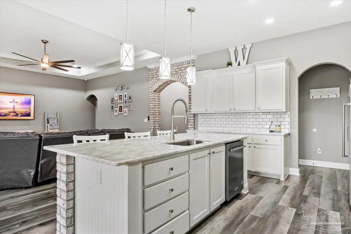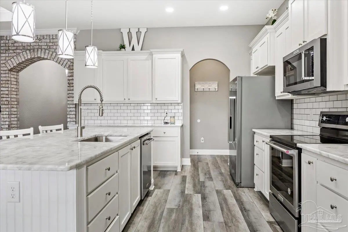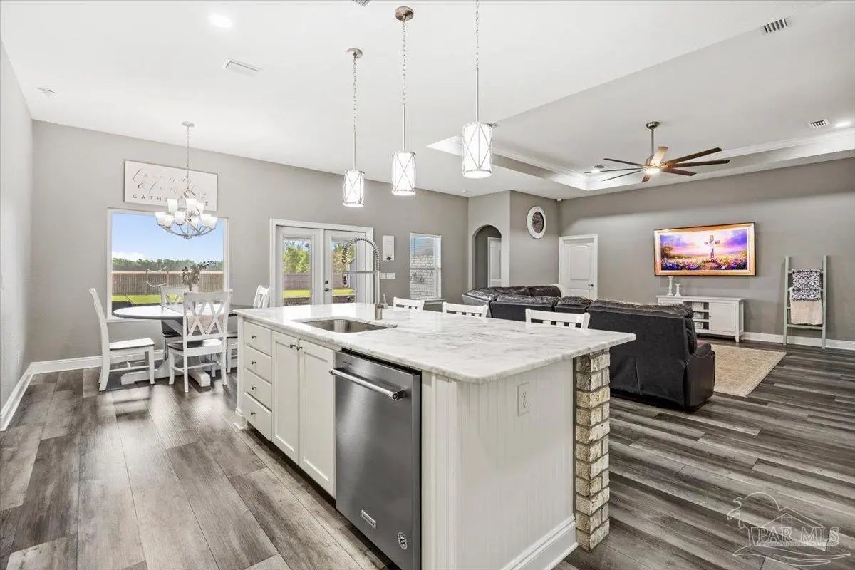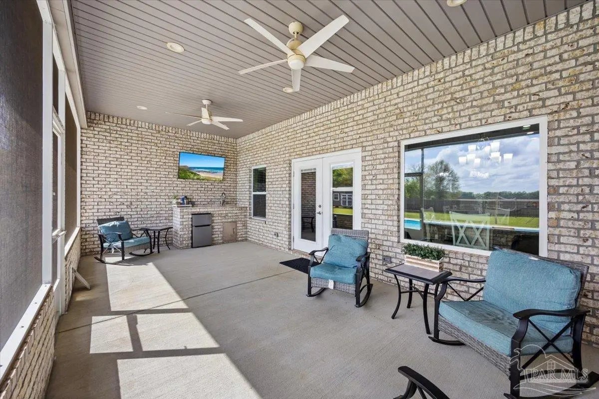 5 bed//3 full bath custom residence on perfectly squared acre! 3949 SQFT under roof - Builder paid close attention to detail through entire process. Open cell foam insulation in roof deck & walls. Beautiful masonry work on full exterior, rear patio wall, 3 front porch arches, interior foyer arch, & center island. Kitchen: 42” Shaker style cabinets w/stainless pulls, subway tile backsplash, stainless steel appliances, & walk-in pantry w/custom shelving. Master: overhead rain can & double head shower w/full tile, free-standing tub, & 2 vanities. Both guest baths also have tile hop-ups & full tile showers. 2 of additional 4 bedrooms have walk-in closets & Jack+Jill bathroom, w/double vanity & jetted tub. Spacious laundry room contains built-in cabinetry, plenty of counter space, & hanging rods. 2-car garage has insulated door & Wi-Fi w/camera opener, plumbing for ice maker, & 400amp for electric vehicle. There’s also 200amp for future shop. Exterior Features: professional landscaping, extended 60x32 driveway, 45-year shingles, 16x12 outbuilding, 6” wrap-around seamless gutters w/downspouts on sides of home, & 6’ backyard privacy fence w/2 double gates & walk-in gate. Enjoy playing basketball on a 90x50 full regulation court, boasting 72” Gorilla goals w/40K Luminus lights & netted yard guards (also serves as full monolithic slab for future building!). Jump in a 32x16 saltwater pool w/3 deck jets, umbrella holder, & LED lights. Take an outdoor shower! Relax on screened-in back porch, equipped w/built-in doggy door & TV hookups. Entertain family/friends around outdoor kitchen. AT&T Fiber Optic & cable outlets in all rooms, generator hook up, Ring doorbell, pool camera, communication panel, & recessed/LED lighting both indoor/outdoor. 5¼ baseboards, crown molding, & 4” deluxe trim on interior doors. Low-E windows, w/built-in blinds on French doors. Hurricane shields. 1 owner! Experience a country atmosphere, an abundance of custom upgrades, & outdoor living at its finest!