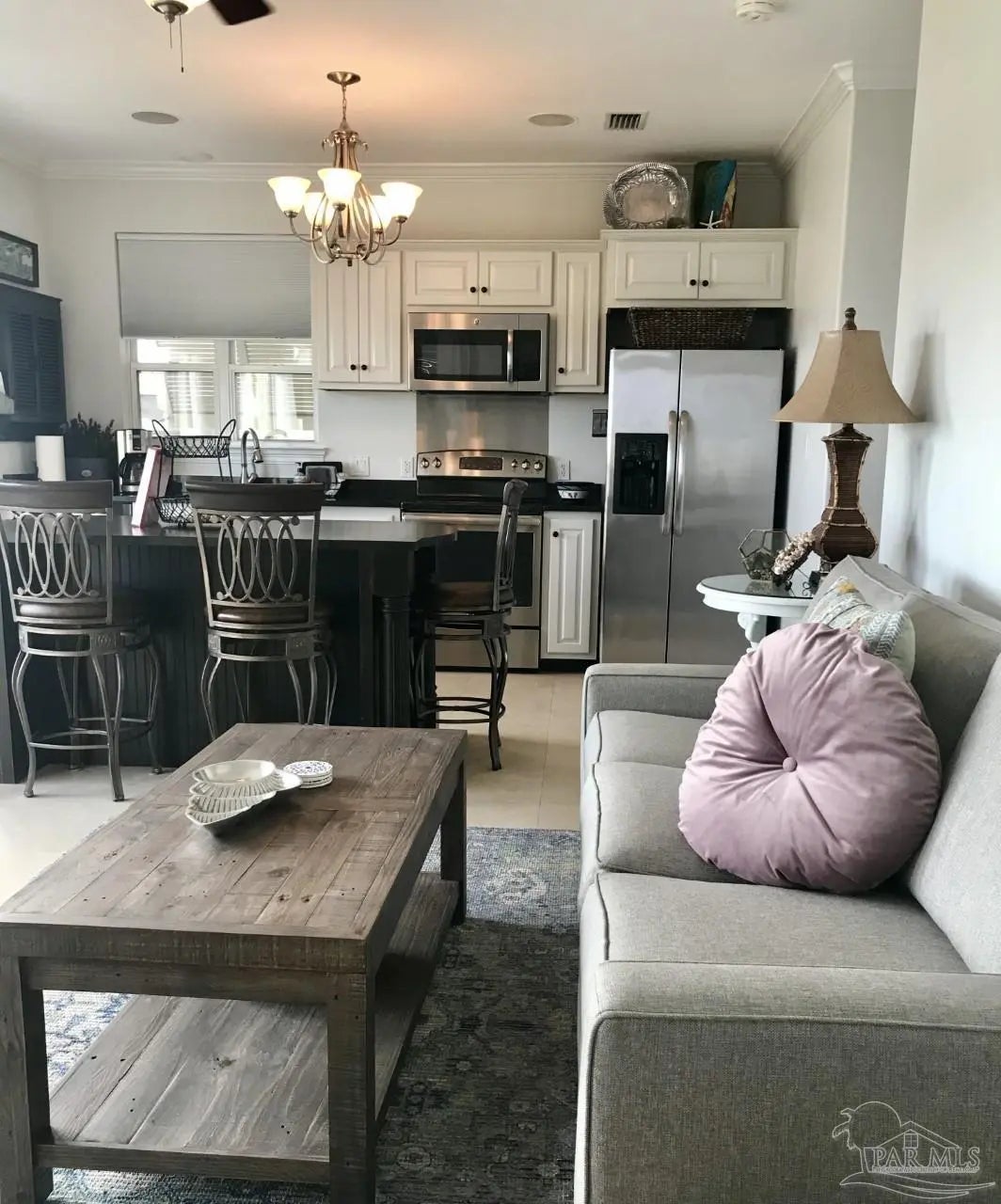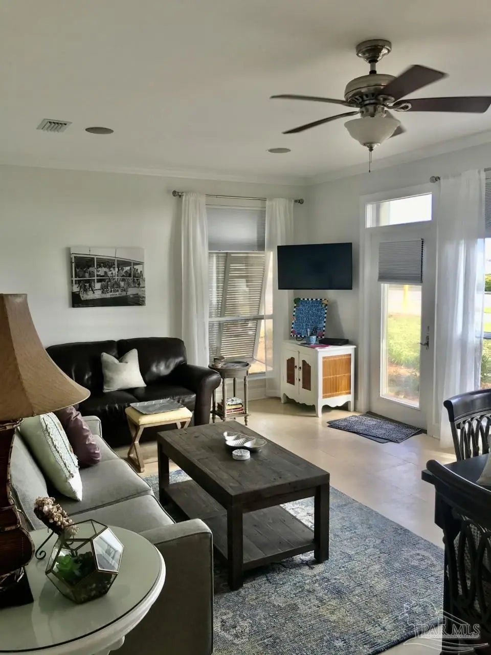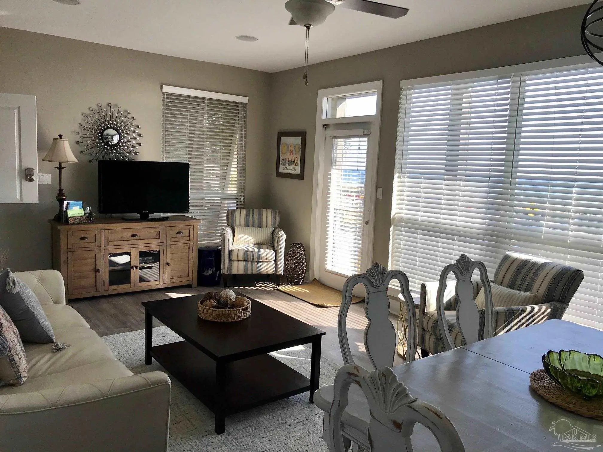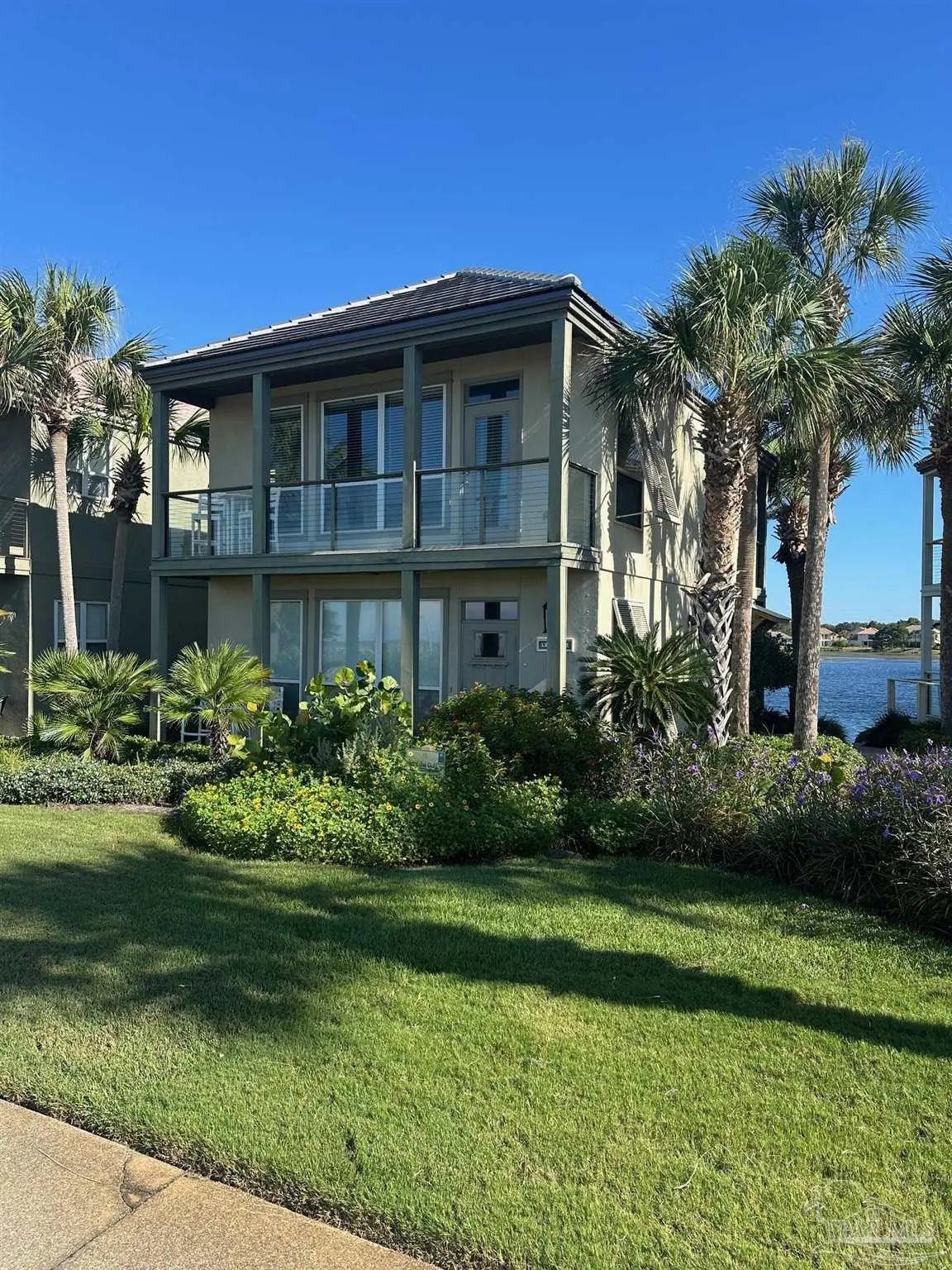 Unobstructed Gulf views set the tone for this beautifully maintained 2-story coastal home in Destiny Beach, located just 50 steps from the sand. Positioned on the desirable west end of this intimate 24-unit community, the property offers enhanced privacy, lush landscaping, and the rare benefit of a small yard in front without a parking lot. This home backs to a serene coastal lake teeming with fish, turtles, and birdlife, the setting is both peaceful and picturesque and truly a unique find along the Gulf. Designed with flexibility in mind, the home features two distinct living spaces connected by a lockout door—each complete with its own updated kitchen, bathrooms, and laundry. This layout presents an exceptional opportunity for an owner to occupy one level while renting the other, or to maximize rental income with two separate units. Interior highlights include designer furnishings, updated flooring, granite countertops, and stainless steel appliances throughout. With strong rental performance in the community some units report grossing over $135K annually. This property offers outstanding income potential. Destiny Beach remains one of the most unique and sought-after beachfront communities in Northwest Florida, combining charm, exclusivity, and unbeatable proximity to the Gulf.