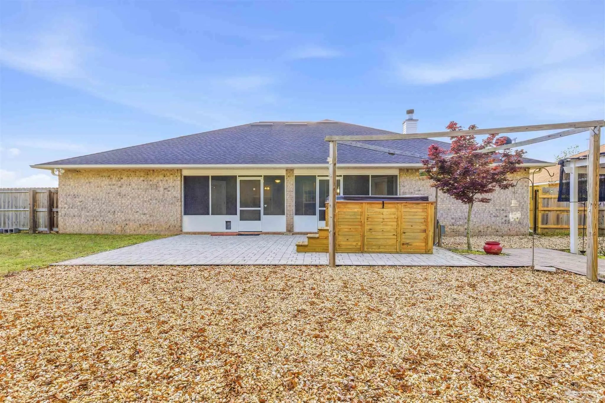 Welcome to this well-maintained all-brick 4-bedroom, 2-bath home located in the desirable Spencer Ridge West subdivision in Pace. Situated on a spacious corner lot, this home offers a functional split floor plan with a private primary suite and bath. The home features a large kitchen with an oversized pantry, providing ample space for cooking and storage. Solar tubes in the kitchen allow for abundant natural light during the day and a soft glow in the evening without the need for electricity. Enjoy a cozy living area with a fireplace and relax year-round on the screened-in patio. Step outside to the backyard where you will find a swim spa, perfect for both relaxation and exercise in the comfort of your own home. Additional features include a side-entry garage and a backyard storage room for added convenience. Recent upgrades include a brand-new HVAC system and a new roof currently being installed, offering peace of mind for the next owner. Conveniently located near Pace schools, shopping, dining, and everyday amenities, this home offers both comfort and accessibility.