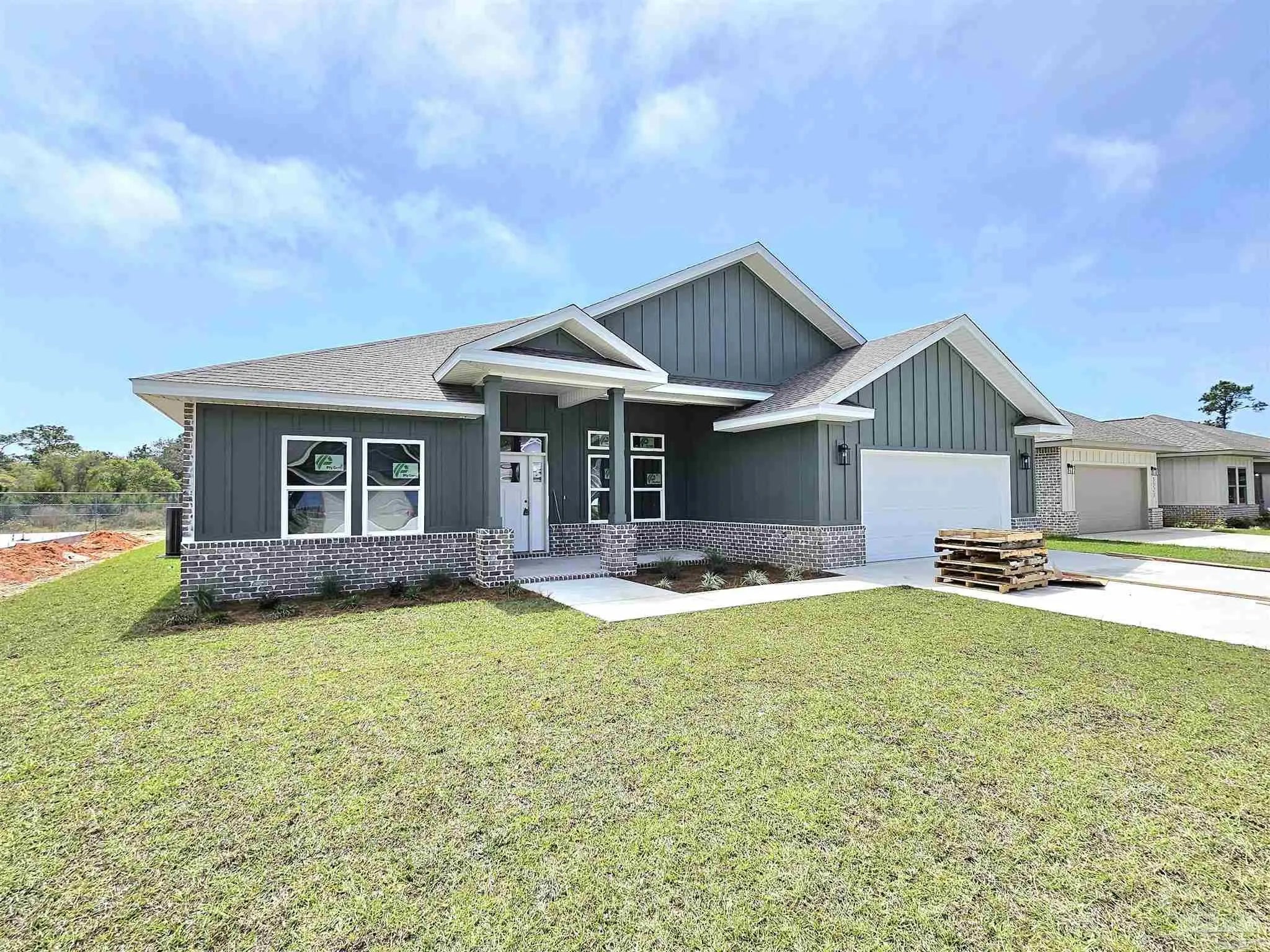 ***UNDER CONSTRUCTION - READY FOR OCCUPANCY MAY 2026*** Affordable luxury can be yours! Beautiful BRAND NEW 4 bedroom/3 bath modern craftsman style home in Gulf Breeze ready for occupancy now. Attractive brick & hardie-board exterior with covered front porch invites you inside to a wide open floor plan with high ceilings throughout & many upgraded features. Luxury vinyl plank flooring throughout the entire home - no carpet here! Spacious living room with French doors leading to the back porch and tons of natural light. Gorgeous and thoughtfully designed kitchen features white shaker cabinets, sparkling Quartz countertops, glass tile backsplash, center island with breakfast bar, pantry and stainless steel appliances including gas range and beverage cooler. Triple split-bedroom floor plan offers private guest suite with attached full bath that has access to back porch. At the rear of the home is the luxurious primary suite, with a spacious primary bedroom with sitting area, en-suite bath with double vanity, freestanding bathtub, and huge walk-in shower, and a walk-in closet which connects to the laundry room. Huge covered back porch and fully-fenced backyard create the ideal outdoor living space. All this, just 1 mile to Woodlawn Beach boat launch & new Soundside High School!