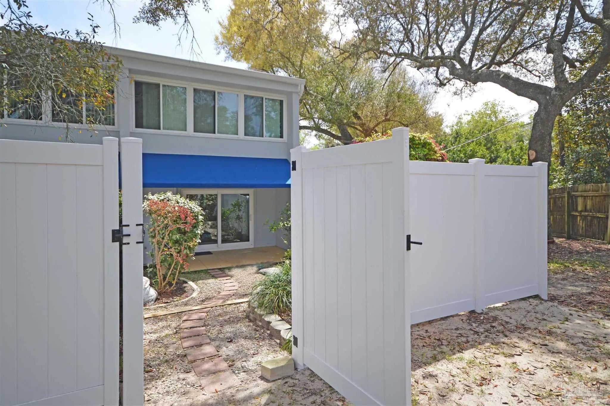 Welcome to this well-maintained 2-bedroom, 1.5-bathroom condo—an exceptional opportunity at a very attractive price in Bahama Bay Condominiums. Ideally located in Gulf Breeze Proper between the Three Mile Bridge to Downtown Pensacola and the Bob Sikes Bridge to Pensacola Beach, this prime corner unit offers easy access to both downtown entertainment, restaurants, and cultural events, as well as the white sandy beaches of the Gulf Coast. The location is also convenient to grocery shopping, top-rated schools, nature trails, golf cart paths, and the South Santa Rosa Recreation Center and Shoreline Park, which offer free public access to tennis and pickleball courts, a boat ramp, board walk, public relaxing fireplace, dog park and waterfront pavilions with parking privileges for Gulf Breeze residents. Natural light fills the spacious upstairs primary bedroom, featuring a full-size closet plus an additional half closet. The second generously sized bedroom also includes a full-size closet, and both rooms are equipped with ceiling fans and share the full bathroom. The layout provides comfort and functionality throughout, including under-stair storage and an exterior storage room. As a bonus, the convenient downstairs laundry area includes a stackable washer and dryer. Step outside to a privacy-fenced backyard with an awning-covered patio—perfect for relaxing or entertaining. The surrounding vegetation provides added shade and privacy while helping keep utility costs low. Residents enjoy access to desirable amenities including a pool, sauna, clubhouse, gym, and boat/RV parking. Recent updates add peace of mind, including a new backyard fence, fresh exterior paint on all buildings, hurricane-impact windows and a 2022 roof. Whether you're seeking a full-time residence, vacation getaway, or investment property, this condo checks all the boxes.