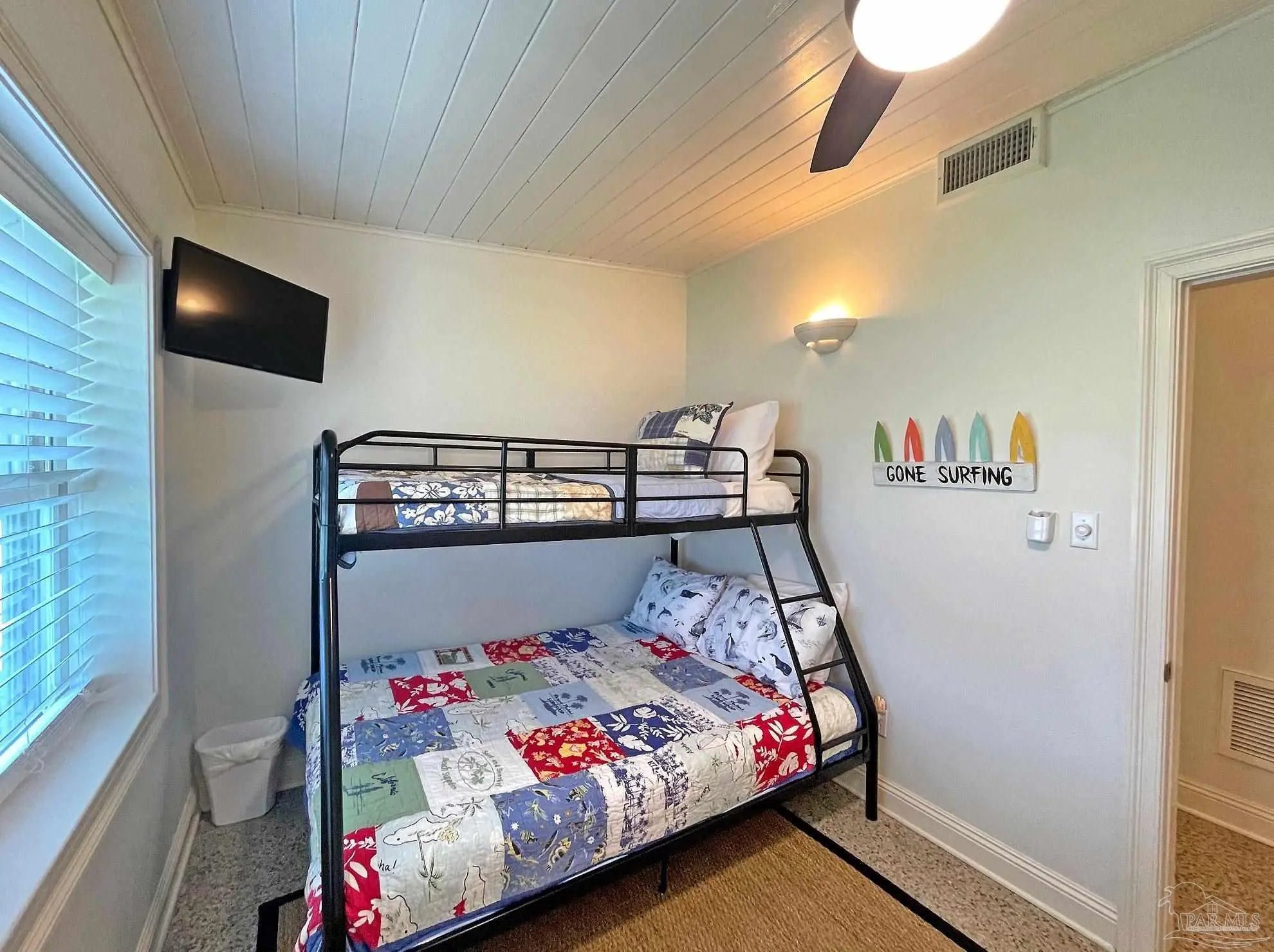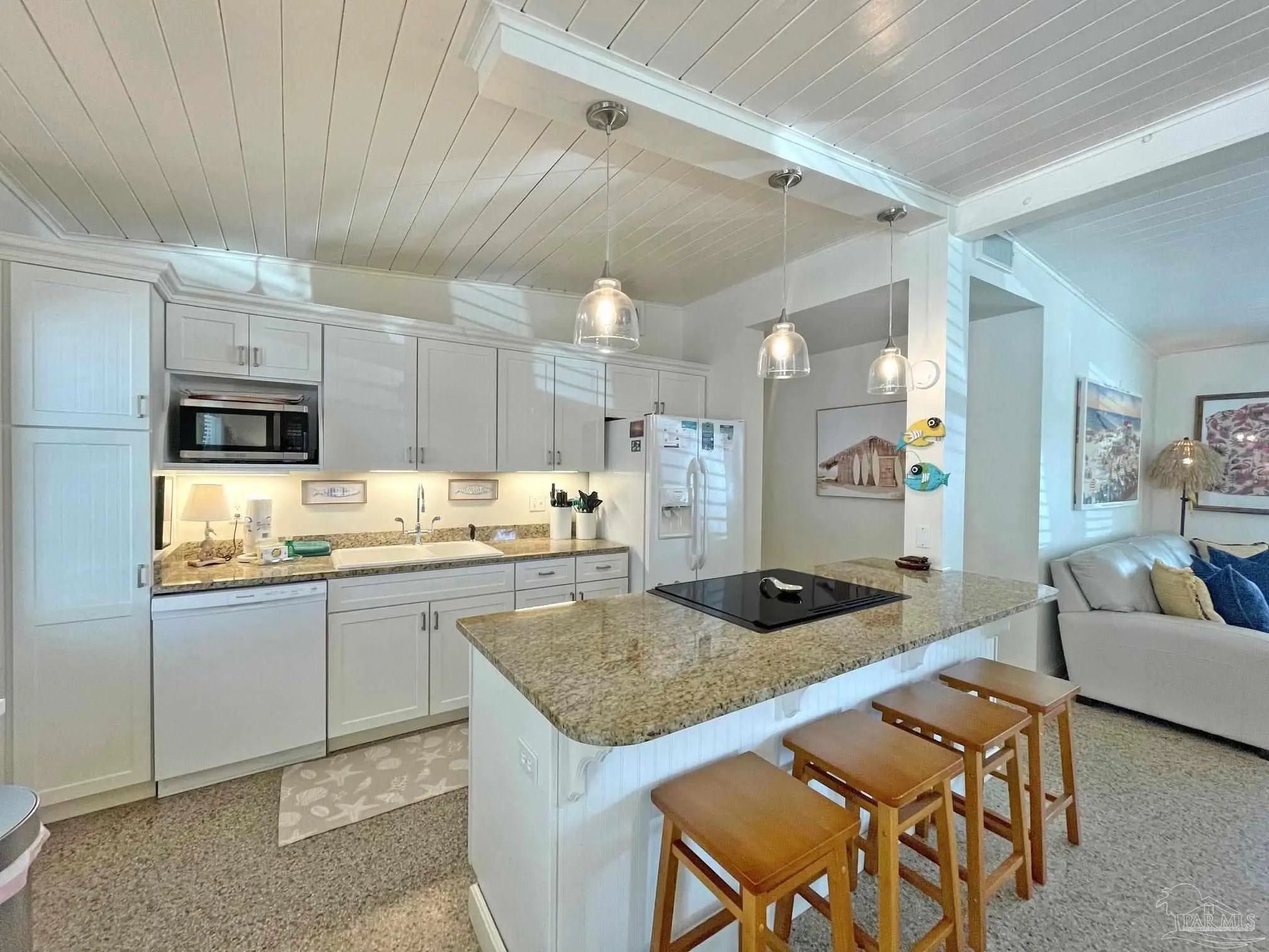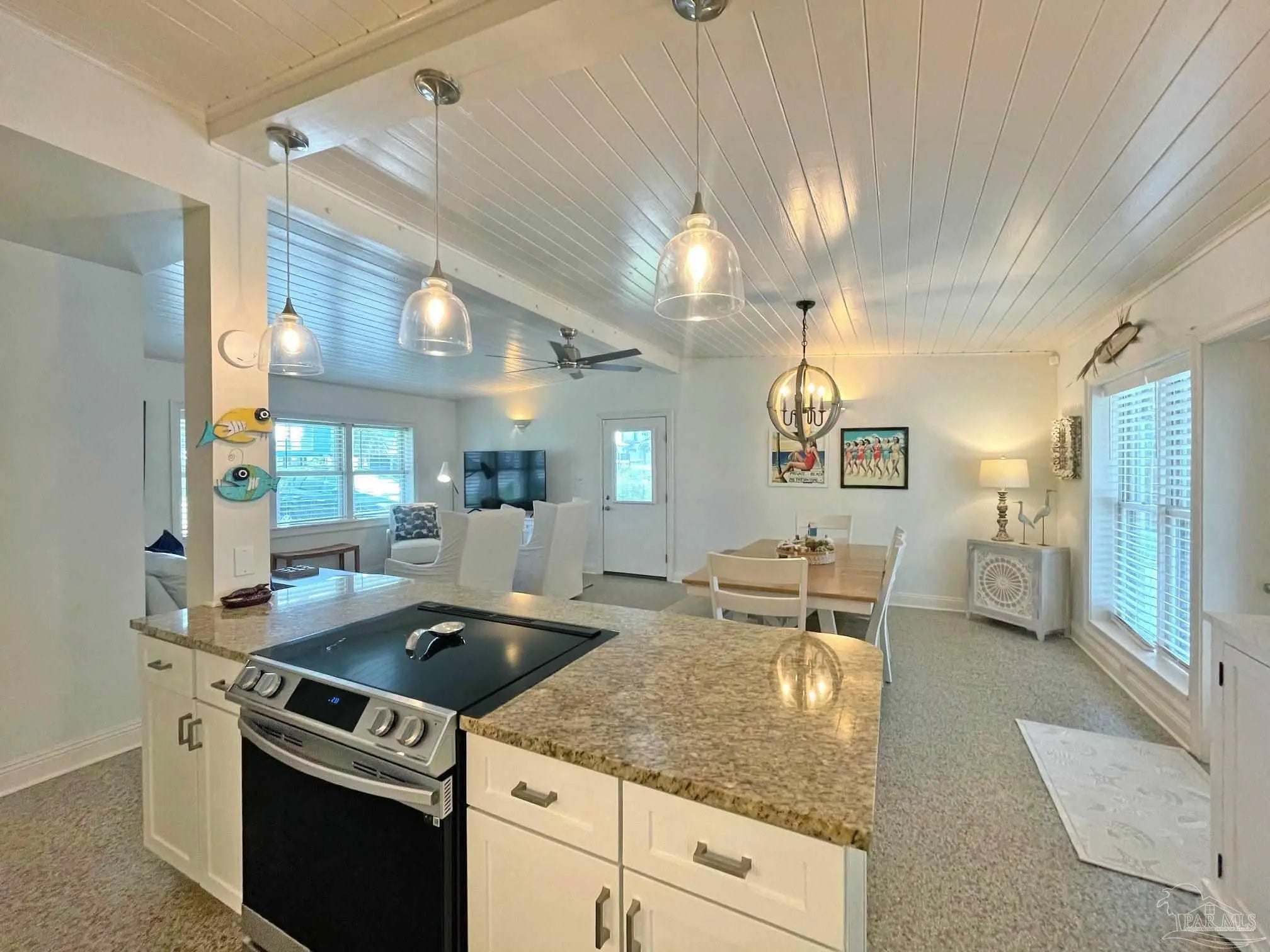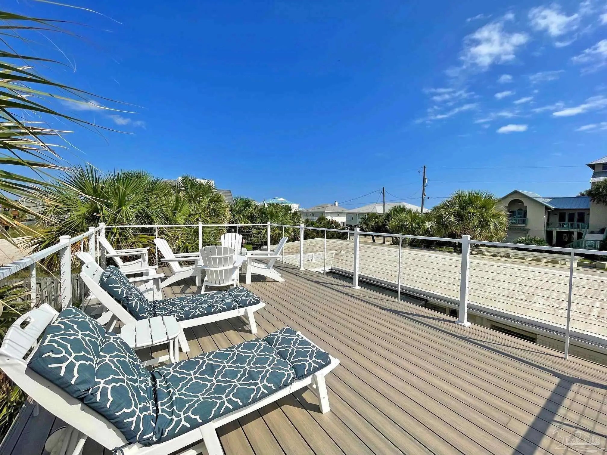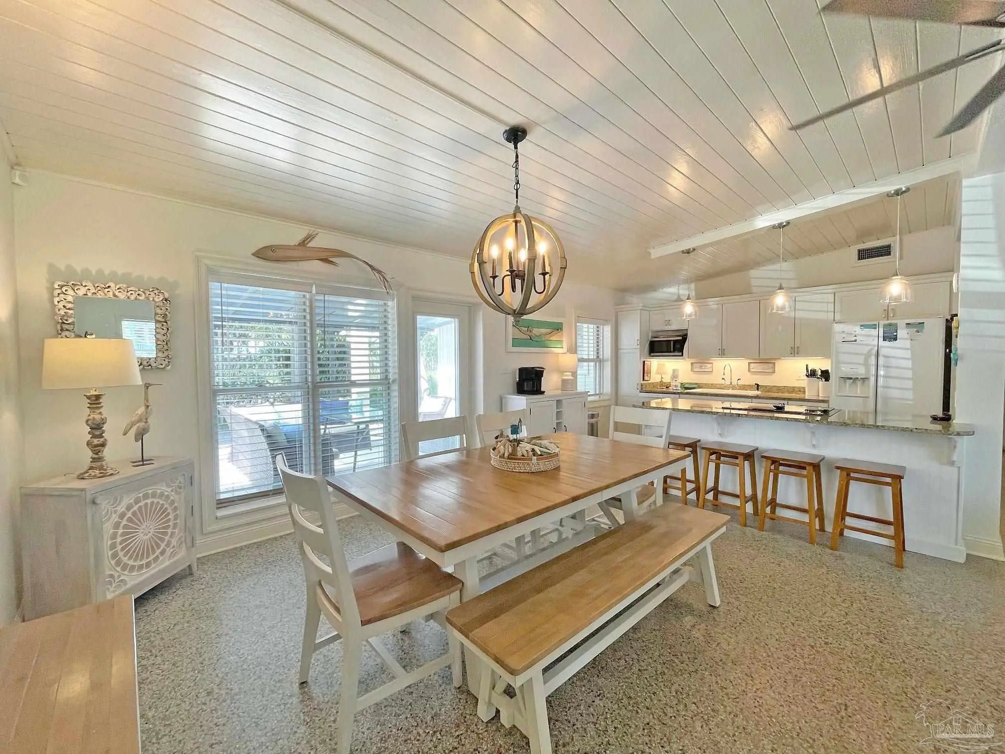 Floridays — A True Old Florida Beach Cottage on Pensacola Beach. Some beach properties are built to look the part. Floridays is the real thing. This rare ground-level Old Florida-style cottage sits just steps from the Gulf of Mexico, and the moment you walk through the door, you'll feel the difference. Authentic Terrazzo floors — a hallmark of classic Florida beach architecture — run throughout, while vaulted tongue-and-groove ceilings draw your eye upward and fill the space with warmth and character that no new construction can replicate. The open-concept layout breathes easy, the way a proper beach cottage should, putting you squarely on "Island Time" from the moment you arrive. Three bedrooms and two well-appointed baths sleep a crowd comfortably: a king in the primary suite with its own private patio, a queen in the second bedroom, and a twin-over-full bunk in the third — perfect for kids or extra guests. An outdoor hot-and-cold shower handles the post-beach rinse, and a covered patio plus a spacious viewing deck give you every reason to stay outside from sunrise to stargazing. The beach is literally across the street, with public dune walkovers both east and west. Beyond its charm, Floridays is a proven performer — fully furnished, completely turn-key, and generating an impressive average of $92,500 in annual rental income. A new roof, hot water heater, and exterior paint in 2023/2024 mean the hard work is already done. Authentic cottages like this on Pensacola Beach don't come along often. When they do, they don't last. Buyer to verify all information and dimensions.