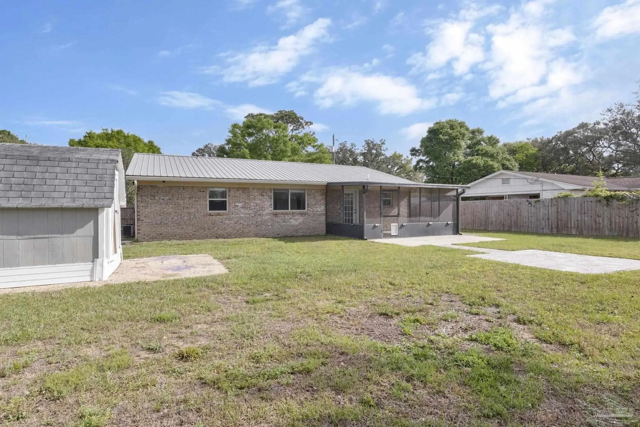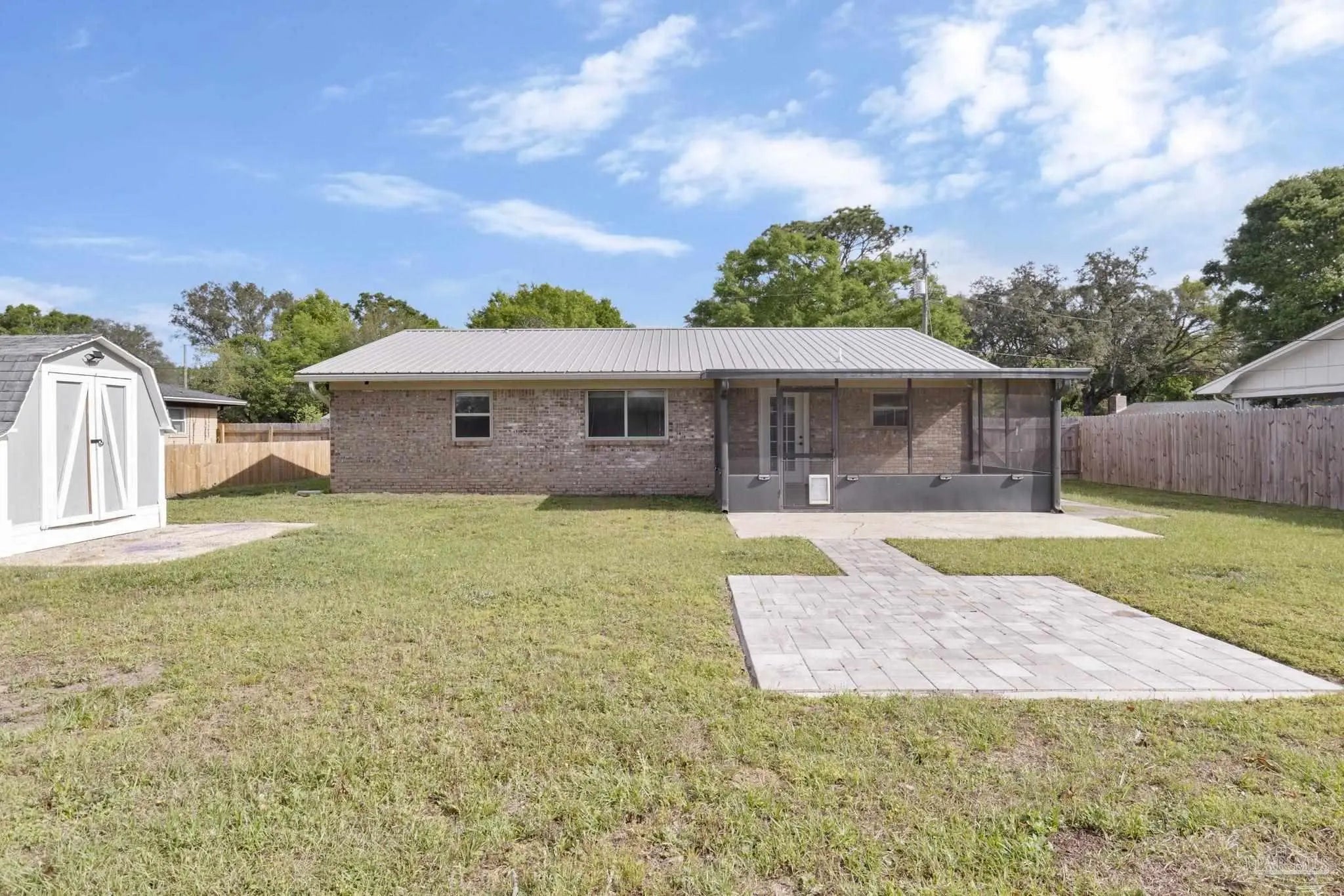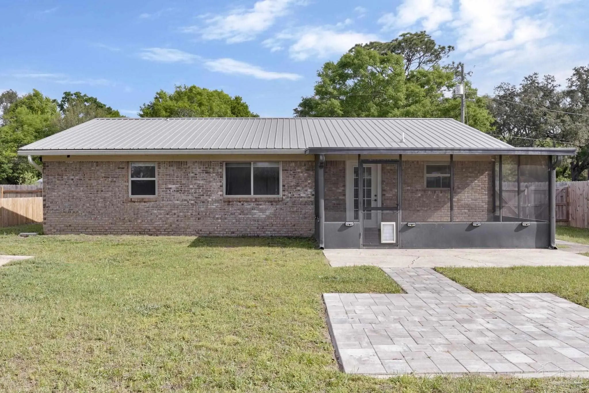 Welcome to this well-maintained 3-bedroom, 2-bath charming brick home offering 1,485 square feet of comfortable living space. With a durable metal roof (just 4 years old) and a newer HVAC system, key updates are already in place for peace of mind. Inside, you’ll find an updated kitchen featuring white cabinetry, modern countertops, and a tiled backsplash, along with laminate wood and tile flooring throughout the main living areas. The layout offers flexibility for everyday living, with a spacious living area and a separate family room that could easily function as a home office or optional fourth bedroom. Step outside to enjoy the screened back porch - perfect for relaxing or entertaining - overlooking a fully usable yard. Located in an established neighborhood, this home offers a great combination of updates, functionality, and value. Schedule your private showing today!