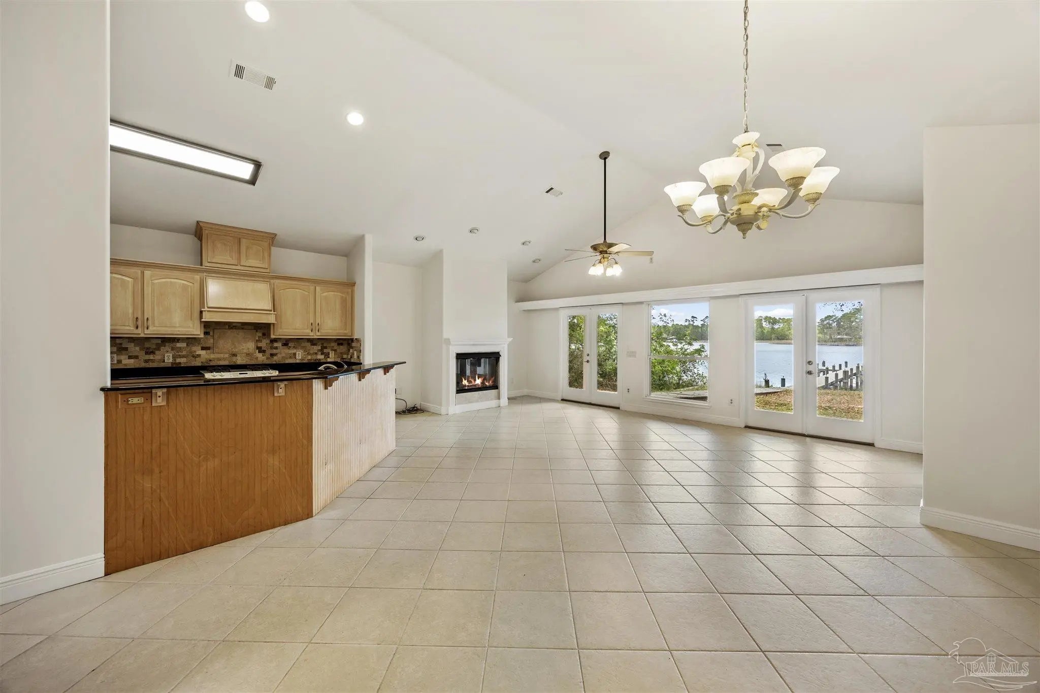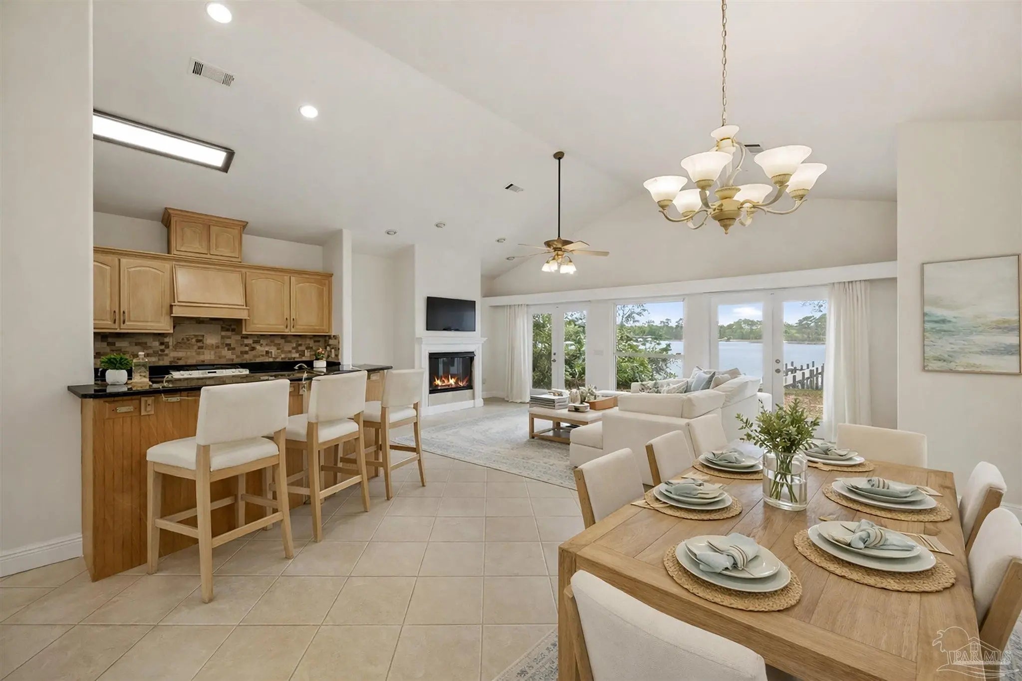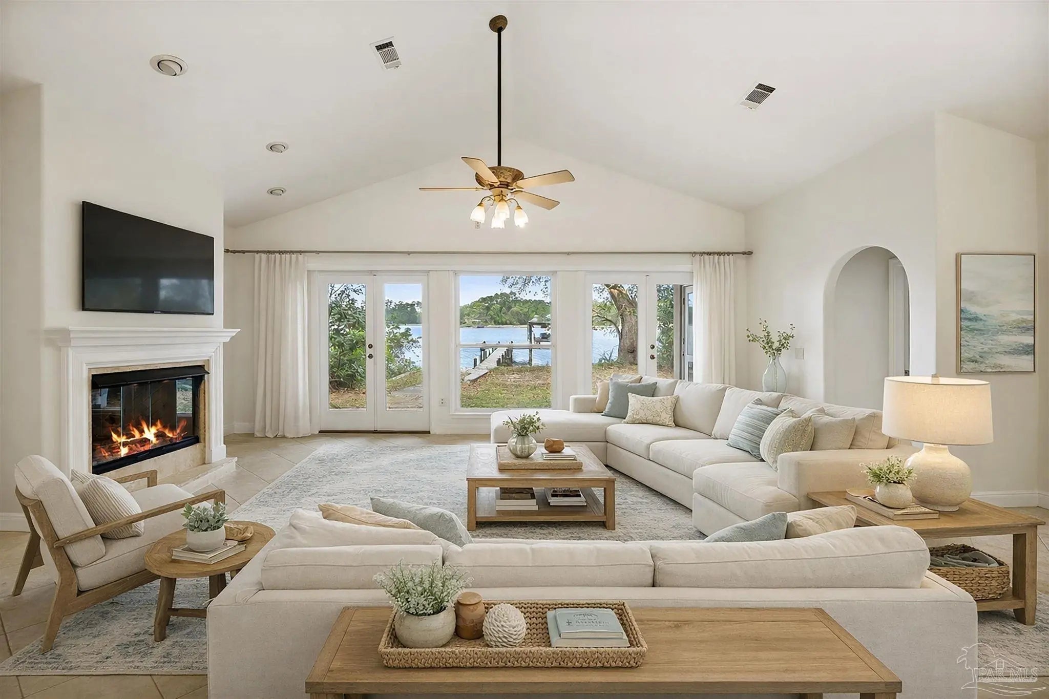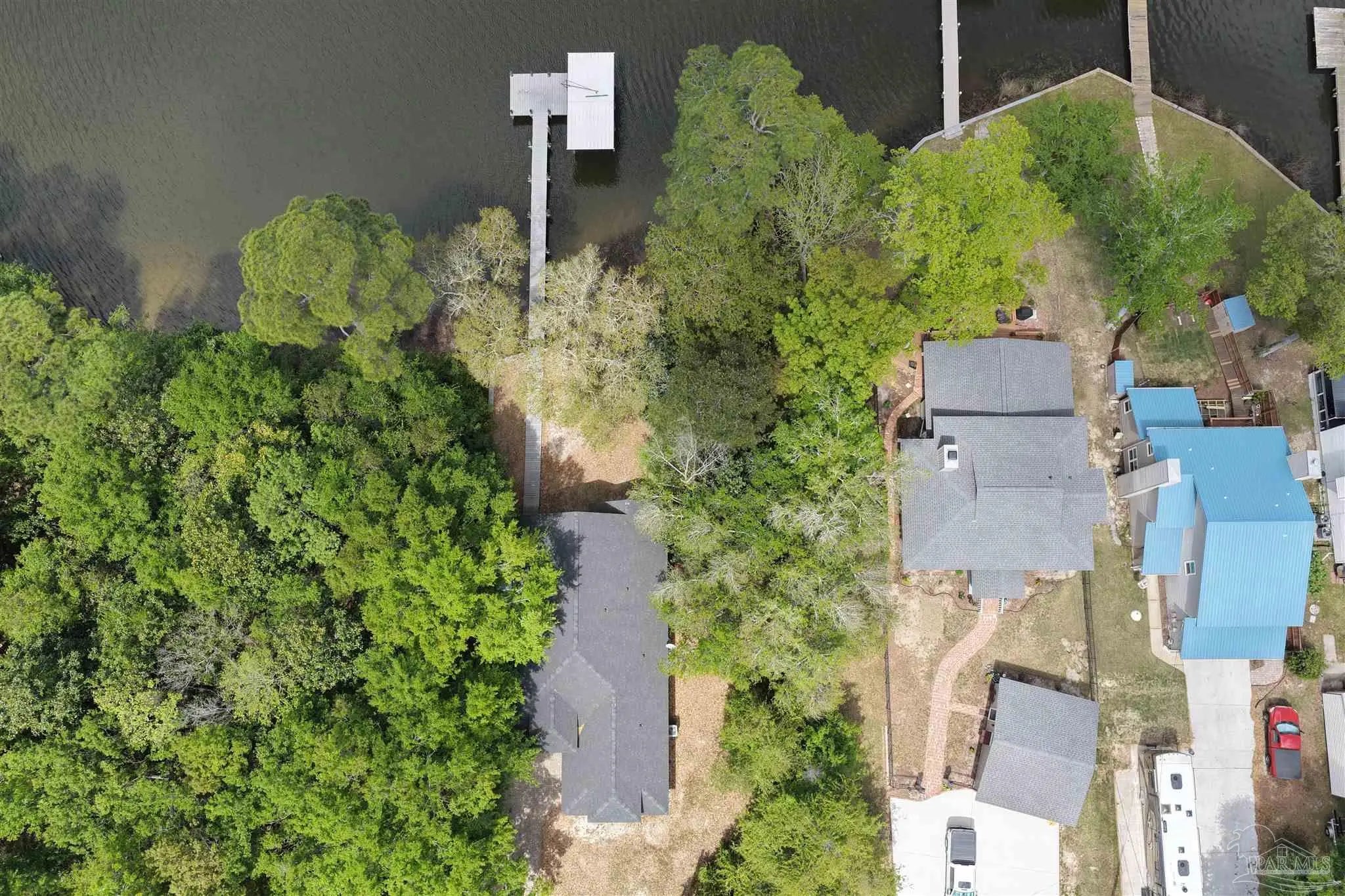 Waterfront living on Mulatto Bayou with direct access to Escambia Bay and beyond to Pensacola Beach, this 3 bedroom, 2 bath home offers 55 feet of waterfront complete with a private dock and boat lift, making it ideal for boating and enjoying coastal lifestyle living; inside, the home features an open layout with tiled flooring throughout the main living areas, a spacious living room with fireplace, and large windows that capture beautiful water views from both the living room and the primary bedroom; the kitchen is equipped with granite countertops, tiled backsplash, ample cabinetry, and functional workspace for everyday living or entertaining; the primary suite includes wood flooring, large closets, double vanities, a soaking tub, and a separate shower, creating a comfortable retreat; additional bedrooms provide flexibility for guests or office space; step outside to a covered back porch overlooking the bayou, offering a peaceful setting to relax or entertain while enjoying the natural surroundings; a paver driveway and mature landscaping add to the overall appeal of this well-positioned waterfront property combining comfort, functionality, and access to some of the area’s best boating waters. Roof replaced in 2020, Water Heater replaced in 2025.