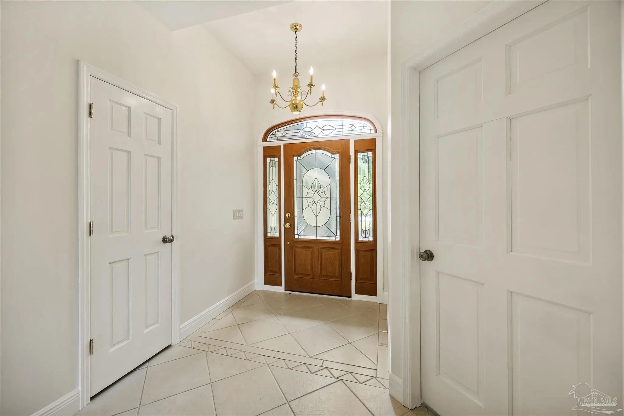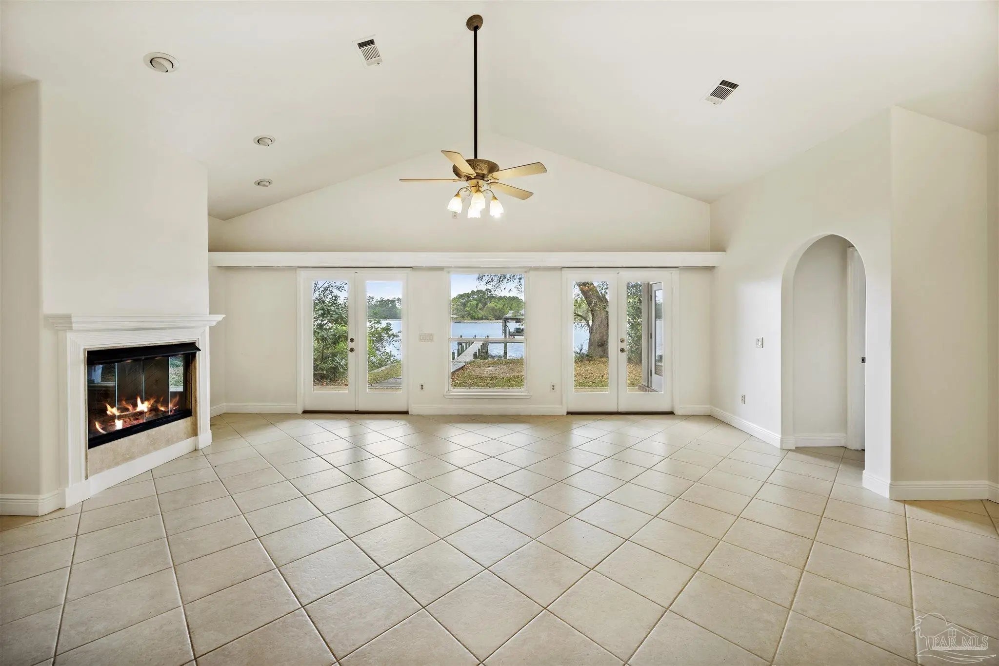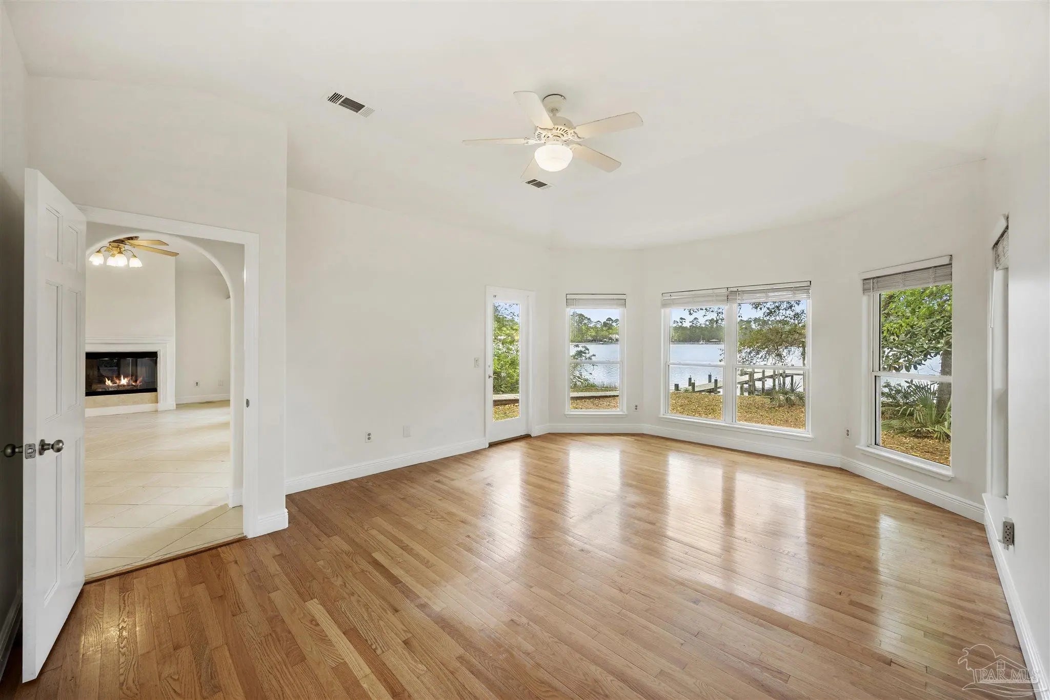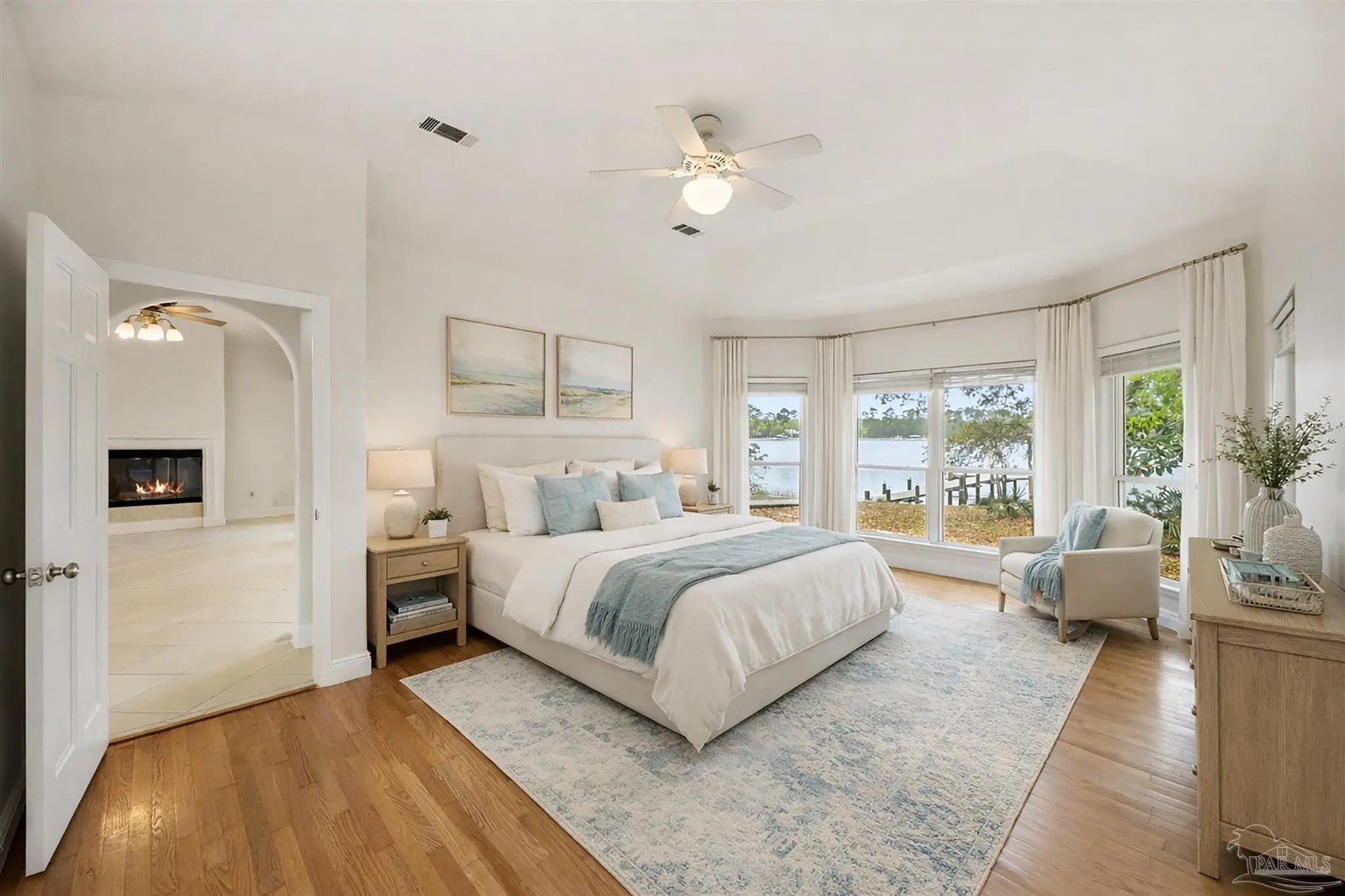 Waterfront living on Mulatto Bayou with direct access to Escambia Bay and beyond to Pensacola Beach, this 3 bedroom, 2 bath home offers 55 feet of waterfront complete with a private dock and boat lift, making it ideal for boating and enjoying coastal lifestyle living; inside, the home features an open layout with tiled flooring throughout the main living areas, a spacious living room with fireplace, and large windows that capture beautiful water views from both the living room and the primary bedroom; the kitchen is equipped with granite countertops, tiled backsplash, ample cabinetry, and functional workspace for everyday living or entertaining; the primary suite includes wood flooring, large closets, double vanities, a soaking tub, and a separate shower, creating a comfortable retreat; additional bedrooms provide flexibility for guests or office space; step outside to a covered back porch overlooking the bayou, offering a peaceful setting to relax or entertain while enjoying the natural surroundings; a paver driveway and mature landscaping add to the overall appeal of this well-positioned waterfront property combining comfort, functionality, and access to some of the area’s best boating waters. Roof replaced in 2020, Water Heater replaced in 2025.