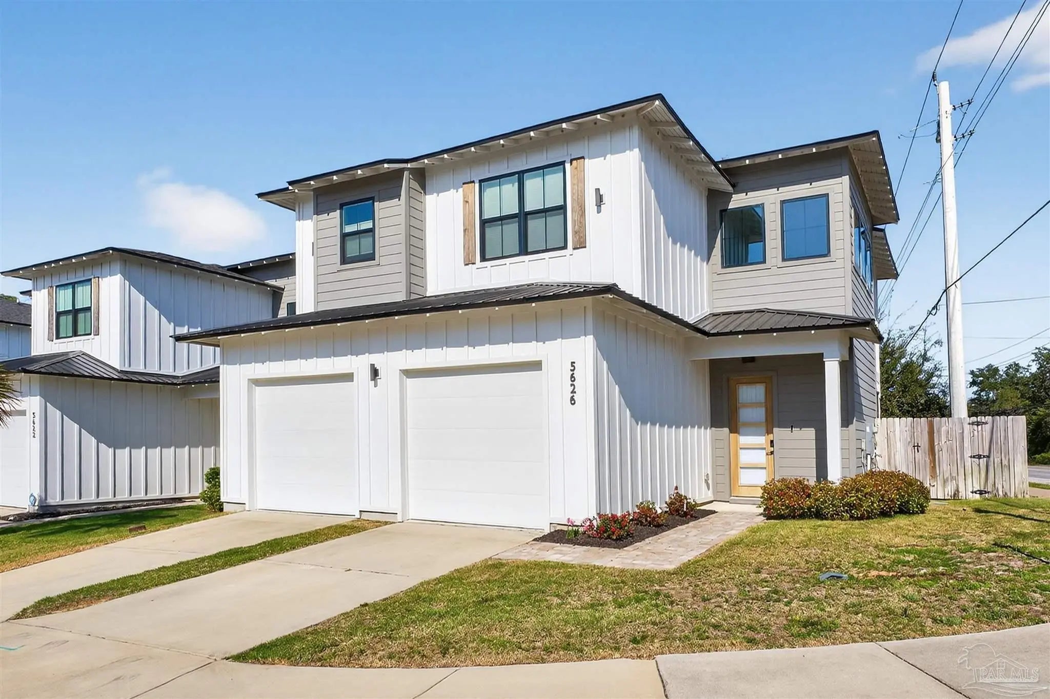 DEEDED BOAT SLIP (#25) conveys with the sale. This expectational property is in X500 flood zone, which is not considered a Special Flood Hazard Area (SFHA). This is a rare opportunity to enjoy waterfront living with added peace of mind. Designed with coastal craftsman style, this home blends timeless architecture with relaxed waterfront living. Exterior features include board and batten siding, metal roof accents, and exposed rafter details. Inside, a bright and inviting foyer with a custom staircase sets the tone for the thoughtfully designed interior. The open-concept layout offers seamless flow between the kitchen, dining, and living areas, filled with natural light and anchored by a stunning herringbone fireplace. With over 2,100 square feet, this home provides both functionality and comfort, including a spacious two-car garage and generously sized bedrooms upstairs that offer privacy and flexibility. DEEDED BOAT SLIP (#25), one of the most desirable in the marina. Ideally located next to an expanded finger deck, this slip is one of only two in the entire 48-slip marina offering additional space to set up chairs, enjoy sunset views, fish, or clean your catch after a day on the water. Even better, the marina is located at the end of your street, making it an easy walk back home. Redfish Harbor enhances the lifestyle with resort-style amenities, including a community dock, waterfront pool, outdoor lounge with fireplace, pickleball courts, bocce ball, and beautifully designed gathering spaces surrounded by natural coastal scenery. Located just minutes from the sugar-white beaches of Perdido Key and Orange Beach, this home also offers convenient access to restaurants, shopping, and daily essentials along Innerarity Point Road, including Publix, CVS, and Ace Hardware. Whether you are searching for a primary residence, vacation home, or investment property, this home delivers the perfect combination of location, lifestyle, and waterfront access.