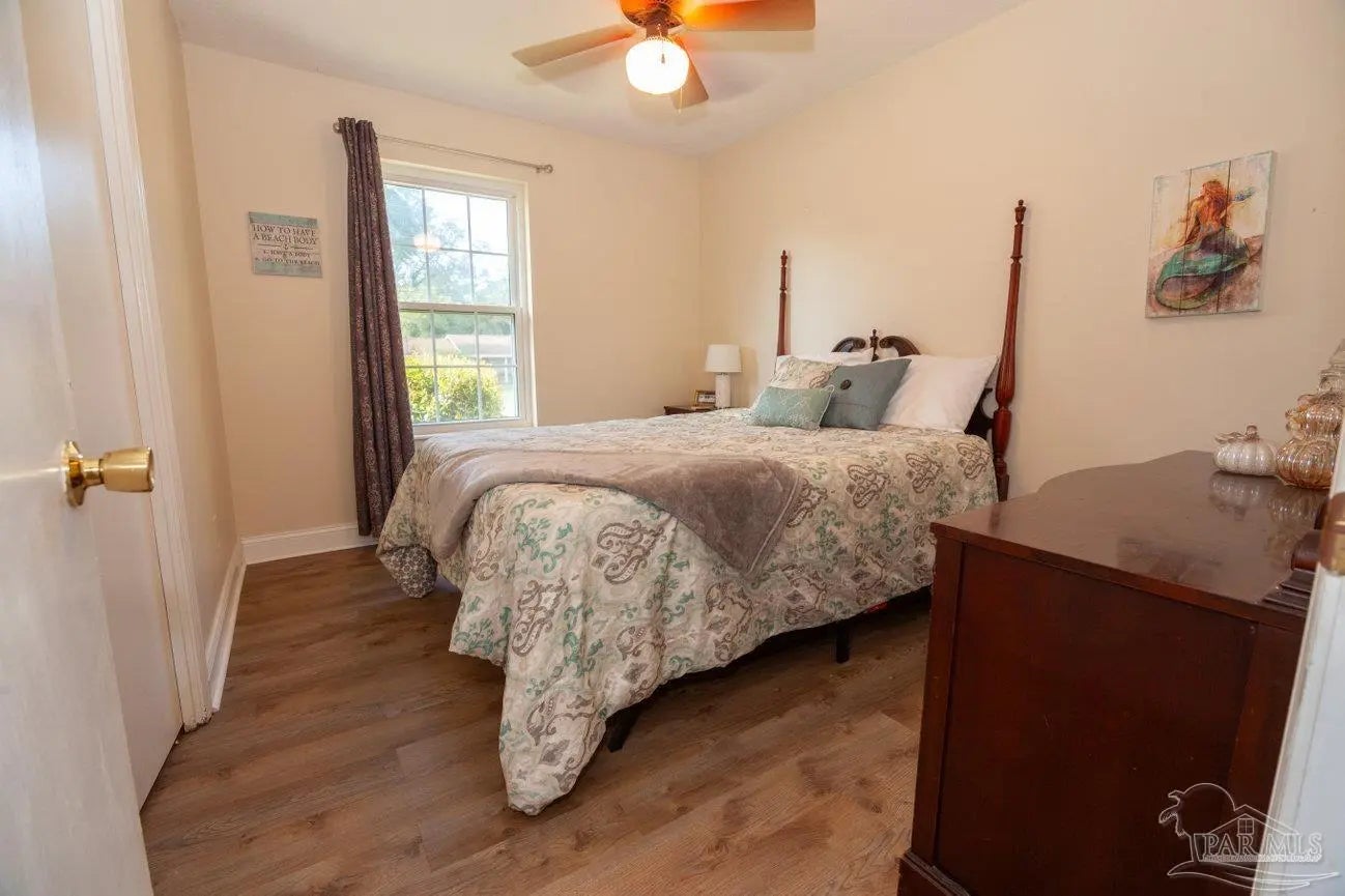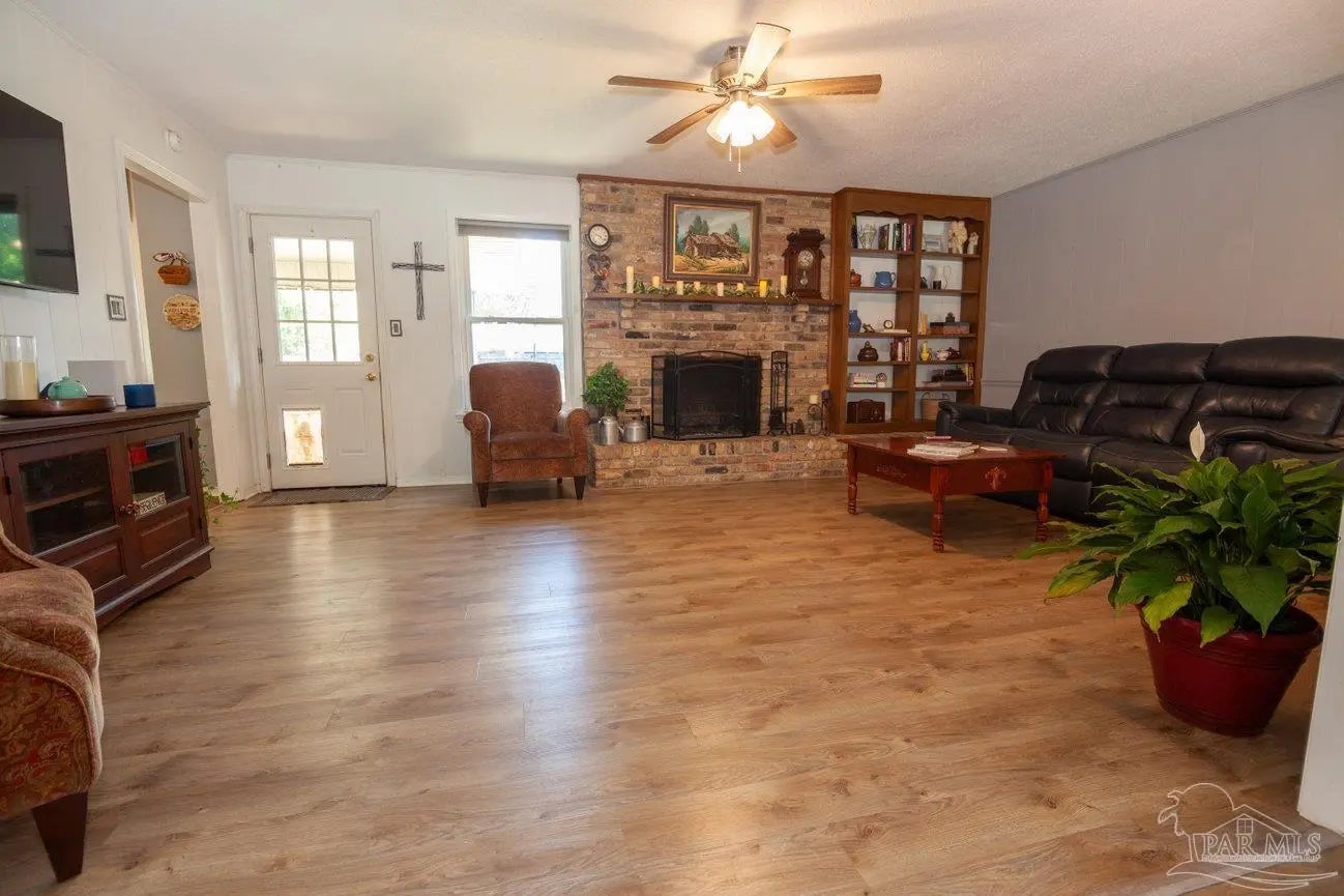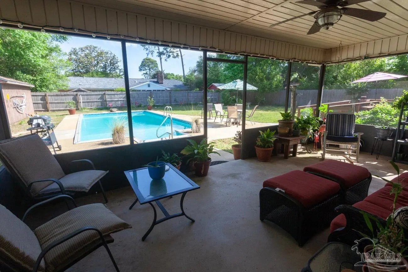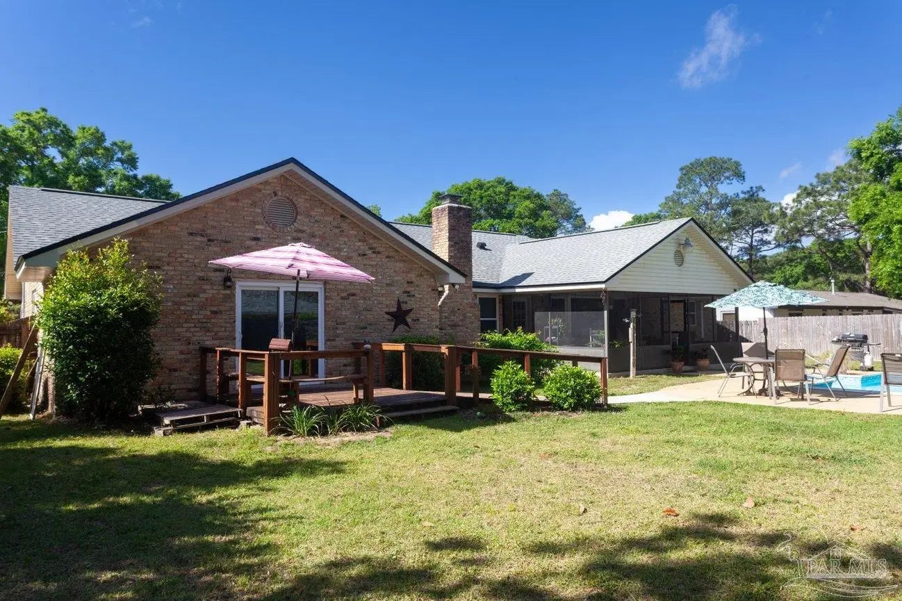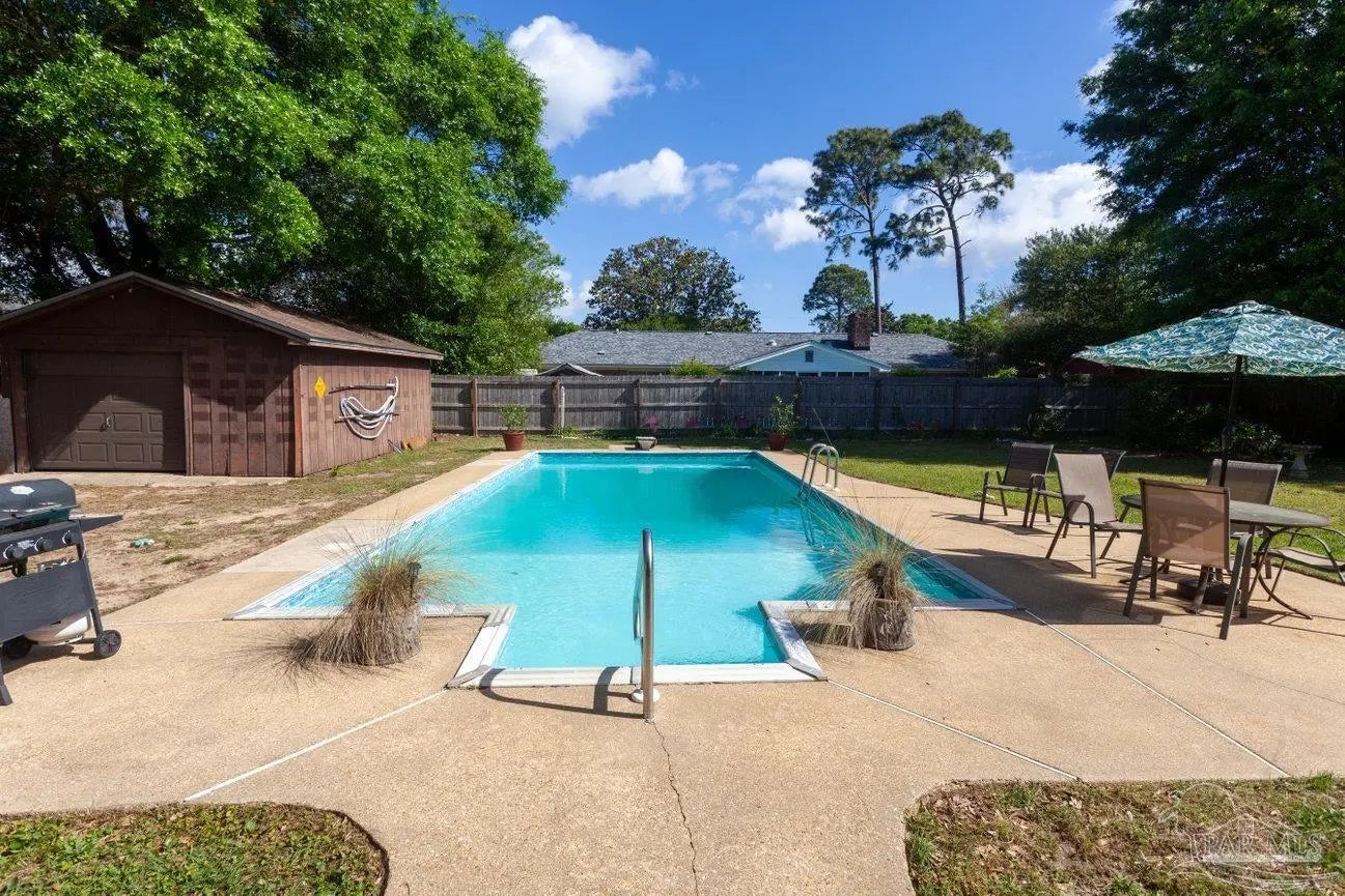 POOLSIDE LIVING MEETS EVERYDAY COMFORT in this beautifully maintained 5-bedroom home located in the desirable Camelot subdivision in Northeast Pensacola, offering over 2,100 square feet of space, flexibility, and standout features that are hard to find in one property. From the moment you walk in, you’re welcomed by warm natural light, updated flooring, and a spacious layout anchored by a classic brick fireplace—creating an inviting central gathering space that flows seamlessly into the a living and dining area. The kitchen is both functional and well-equipped with ample cabinetry and decorative tile backsplash, while the renovated primary bathroom with solid stone countertops adds a clean, modern touch where it counts most. Whether you need room to grow, host, or work from home, this layout adapts effortlessly to your lifestyle. —-Step outside and it only gets better. A screened-in porch opens to your private backyard retreat featuring an in-ground pool, expansive patio space, and multiple areas to relax or entertain year-round. The detached garage/workshop adds valuable flexibility for storage, hobbies, or projects, while the wide lot gives you the space and privacy you're looking for. With a newer roof, double-pane windows, indoor laundry, and a location convenient to UWF, hospitals, shopping, dining, and major roadways, this home delivers a rare blend of comfort, function, and lifestyle in one move-in ready package.